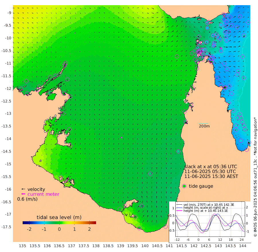 4cm/s 19T +3cm/s rms + 7cm/s -42T. ARA-GOC87 57m 24cm/s 12T +3cm/s rms + 2cm/s -2T. ARA-GOC87 60m 5cm/s 86T +2cm/s rms + 3cm/s 61T. ARA-GOC87 47m -133cm Daru -128cm Bobo Island -96cm Meer Island Barge -122cm Bramble Cay -138cm Unnamed Cay -128cm Pearce Cay -125cm Stephens Island -139cm Merrie England Shoals -140cm Mutacomal Reef -118cm Darnley Island Barge -108cm East Cay -121cm Yorke Island Barge -128cm Rennel Island -118cm Aureed Island -125cm Dungeness Reef -100cm Zagai Island -107cm Yam Island -86cm Dauan Island -81cm Saibai Island -119cm Phipi Reef -112cm Warrior Reef - West -65cm Mabuiag Island Barge -119cm Half Way Island -123cm Coconut Island -122cm Dugong Islet -108cm Poll Island -119cm Kirkcaldie Reef -102cm Suarji Island -106cm Sue Islet -75cm Hawkesbury Island -99cm Alert Patches -96cm Twin Island -73cm Badu Island -89cm St Pauls (Moa Island) -73cm Kubin (Moa Island) -80cm Ince Point -72cm Thursday Island -75cm Nardana Patches -77cm Turtle Head -77cm Round Island -65cm Goods Island -41cm Booby Island -46cm White Rocks Area 5cm Carpentaria -82cm Papou Point -61cm Bampfield Head -30cm Crab Island -38cm Red Wallis Island -71cm Packe Island -125cm Harrington Reef -76cm Herald Camp -22cm Sharp Point -74cm Red Island Point -85cm Possession Island -90cm Alpha Rock -109cm Frederick Point -130cm Wyborn Reef Light -125cm Tetley Island -90cm Triangle Reef -128cm Turtle Head Island -95cm Maclennan Cay -81cm Raine Island -120cm Mcsweeny Reef -120cm Collette Reef -98cm Shadwell Reef -132cm Hannibal Island -125cm Round Point -9cm Vrilya Point -114cm Cape Grenville -109cm Hicks Island -116cm Sir Charles Hardy Island -34cm Harvey Island -109cm Kay Reef -95cm Rocky Island -91cm Chapman Island -84cm Ham Reef -89cm Jubilee Reef -81cm Night Island -84cm Unnamed Reef No. 3 -96cm Morris Island -86cm 1st 3 Mile Opening -89cm Creech Reef -83cm Fife Island -104cm Eden Reef -97cm Stanley Island -104cm Normanby River -19cm Yabooma Island -39cm Hutchison River -14cm Elcho Island -13cm North West Crocodile Island -1cm Cape Wessel -15cm Stevens Island -37cm Guluwuru Island -17cm Hopeful Bay -7cm Auster Point -1cm Two Island Bay -29cm Cadell Strait -75cm Mallison Island -27cm Melville Bay (Gove Harbour) -23cm Truant Island -14cm Cape Arnhem -9cm Cape Grey -7cm Hawk Island 30cm Milner Bay (Groote Eylandt) 23cm Cape Beatrice 45cm West Island 44cm Centre Island -20cm Mornington Island -13cm West Wellesley Islands -47cm Bountiful Island -16cm Albert River Mouth -2cm Sweers Island -32cm Karumba -53cm Nassau River Offshore -69cm Christmas Creek -55cm Archer River -41cm Boyd Point -52cm Weipa (Humbug Point) -18cm Pennefather River -20cm Cullen Point