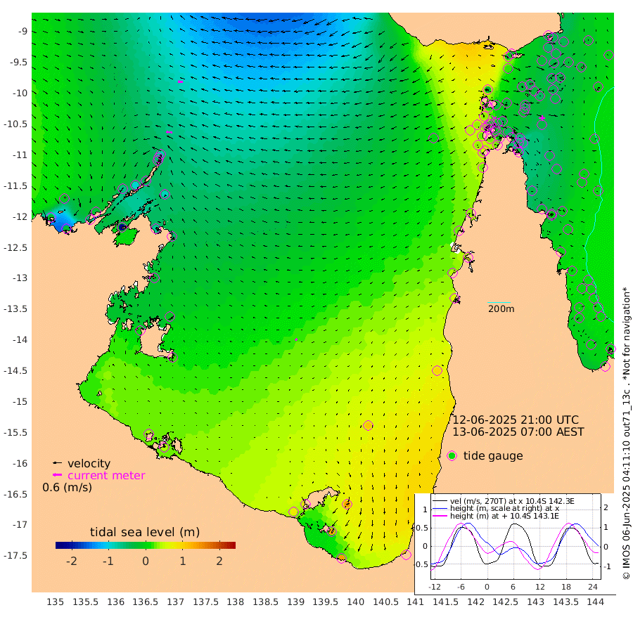 39cm/s -85T +3cm/s rms + 7cm/s -42T. ARA-GOC87 57m 15cm/s -124T +3cm/s rms + 2cm/s -2T. ARA-GOC87 60m 36cm/s -91T +2cm/s rms + 3cm/s 61T. ARA-GOC87 47m -40cm Daru -44cm Bobo Island -6cm Meer Island Barge -21cm Bramble Cay -36cm Unnamed Cay -35cm Pearce Cay -27cm Stephens Island -38cm Merrie England Shoals -48cm Mutacomal Reef -27cm Darnley Island Barge -2cm East Cay -36cm Yorke Island Barge -34cm Rennel Island -38cm Aureed Island -28cm Dungeness Reef -43cm Zagai Island -29cm Yam Island -8cm Dauan Island -21cm Saibai Island 16cm Phipi Reef -28cm Warrior Reef - West -16cm Mabuiag Island Barge -34cm Half Way Island -46cm Coconut Island -36cm Dugong Islet -41cm Poll Island -28cm Kirkcaldie Reef -30cm Suarji Island -43cm Sue Islet 32cm Hawkesbury Island -28cm Alert Patches -35cm Twin Island 19cm Badu Island -34cm St Pauls (Moa Island) 14cm Kubin (Moa Island) -17cm Ince Point -7cm Thursday Island -9cm Nardana Patches 15cm Turtle Head 25cm Round Island 34cm Goods Island 39cm Booby Island 31cm White Rocks Area 3cm Carpentaria -28cm Papou Point 26cm Bampfield Head 36cm Crab Island 31cm Red Wallis Island 24cm Packe Island -45cm Harrington Reef 57cm Herald Camp -11cm Sharp Point 24cm Red Island Point -4cm Possession Island -49cm Alpha Rock -41cm Frederick Point -59cm Wyborn Reef Light -60cm Tetley Island -14cm Triangle Reef -51cm Turtle Head Island -2cm Maclennan Cay 7cm Raine Island -35cm Mcsweeny Reef -29cm Collette Reef -10cm Shadwell Reef -32cm Hannibal Island -21cm Round Point 25cm Vrilya Point -13cm Cape Grenville -4cm Hicks Island -3cm Sir Charles Hardy Island -2cm Harvey Island -7cm Kay Reef 6cm Rocky Island 4cm Chapman Island 5cm Ham Reef 1cm Jubilee Reef 2cm Night Island 3cm Unnamed Reef No. 3 4cm Morris Island 7cm 1st 3 Mile Opening 5cm Creech Reef 0cm Fife Island 6cm Eden Reef 3cm Stanley Island 3cm Normanby River -16cm Yabooma Island -28cm Hutchison River -23cm Elcho Island -10cm North West Crocodile Island -77cm Cape Wessel -61cm Stevens Island -92cm Guluwuru Island -39cm Hopeful Bay -60cm Auster Point -55cm Two Island Bay -60cm Cadell Strait -222cm Mallison Island -71cm Melville Bay (Gove Harbour) -87cm Truant Island -59cm Cape Arnhem -28cm Cape Grey -13cm Hawk Island 1cm Milner Bay (Groote Eylandt) 18cm Cape Beatrice 40cm West Island 41cm Centre Island 93cm Mornington Island 82cm West Wellesley Islands 137cm Bountiful Island 137cm Albert River Mouth 134cm Sweers Island 158cm Karumba 107cm Nassau River Offshore 91cm Christmas Creek 63cm Archer River 40cm Boyd Point 62cm Weipa (Humbug Point) 24cm Pennefather River 37cm Cullen Point