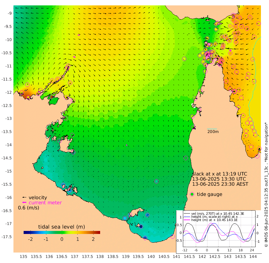 38cm/s 115T +3cm/s rms + 7cm/s -42T. ARA-GOC87 57m 22cm/s 160T +3cm/s rms + 2cm/s -2T. ARA-GOC87 60m 29cm/s 110T +2cm/s rms + 3cm/s 61T. ARA-GOC87 47m 137cm Daru 134cm Bobo Island 100cm Meer Island Barge 123cm Bramble Cay 142cm Unnamed Cay 135cm Pearce Cay 131cm Stephens Island 142cm Merrie England Shoals 144cm Mutacomal Reef 125cm Darnley Island Barge 104cm East Cay 129cm Yorke Island Barge 134cm Rennel Island 124cm Aureed Island 128cm Dungeness Reef 109cm Zagai Island 111cm Yam Island 88cm Dauan Island 77cm Saibai Island 87cm Phipi Reef 109cm Warrior Reef - West 76cm Mabuiag Island Barge 132cm Half Way Island 132cm Coconut Island 134cm Dugong Islet 121cm Poll Island 123cm Kirkcaldie Reef 105cm Suarji Island 115cm Sue Islet 102cm Hawkesbury Island 112cm Alert Patches 114cm Twin Island 95cm Badu Island 108cm St Pauls (Moa Island) 103cm Kubin (Moa Island) 100cm Ince Point 96cm Thursday Island 97cm Nardana Patches 98cm Turtle Head 99cm Round Island 96cm Goods Island 82cm Booby Island 85cm White Rocks Area 58cm Carpentaria 98cm Papou Point 112cm Bampfield Head 62cm Crab Island 80cm Red Wallis Island 100cm Packe Island 137cm Harrington Reef 95cm Herald Camp 20cm Sharp Point 73cm Red Island Point 99cm Possession Island 110cm Alpha Rock 124cm Frederick Point 147cm Wyborn Reef Light 144cm Tetley Island 96cm Triangle Reef 155cm Turtle Head Island 97cm Maclennan Cay 82cm Raine Island 128cm Mcsweeny Reef 122cm Collette Reef 99cm Shadwell Reef 134cm Hannibal Island 127cm Round Point 51cm Vrilya Point 113cm Cape Grenville 107cm Hicks Island 114cm Sir Charles Hardy Island 34cm Harvey Island 105cm Kay Reef 89cm Rocky Island 86cm Chapman Island 81cm Ham Reef 89cm Jubilee Reef 82cm Night Island 82cm Unnamed Reef No. 3 93cm Morris Island 92cm 1st 3 Mile Opening 90cm Creech Reef 84cm Fife Island 104cm Eden Reef 96cm Stanley Island 100cm Normanby River 77cm Yabooma Island 105cm Hutchison River 71cm Elcho Island 56cm North West Crocodile Island 81cm Cape Wessel 88cm Stevens Island 116cm Guluwuru Island 70cm Hopeful Bay 80cm Auster Point 80cm Two Island Bay 110cm Cadell Strait 202cm Mallison Island 90cm Melville Bay (Gove Harbour) 103cm Truant Island 63cm Cape Arnhem 16cm Cape Grey -4cm Hawk Island -60cm Milner Bay (Groote Eylandt) -68cm Cape Beatrice -122cm West Island -121cm Centre Island -113cm Mornington Island -110cm West Wellesley Islands -139cm Bountiful Island -171cm Albert River Mouth -198cm Sweers Island -172cm Karumba -70cm Nassau River Offshore -16cm Christmas Creek 19cm Archer River 38cm Boyd Point 37cm Weipa (Humbug Point) 35cm Pennefather River 46cm Cullen Point
