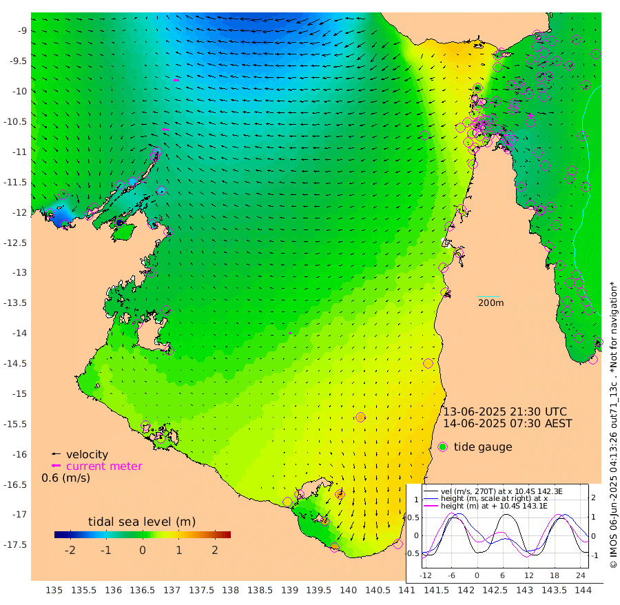 42cm/s -87T +3cm/s rms + 7cm/s -42T. ARA-GOC87 57m 16cm/s -124T +3cm/s rms + 2cm/s -2T. ARA-GOC87 60m 39cm/s -92T +2cm/s rms + 3cm/s 61T. ARA-GOC87 47m -44cm Daru -47cm Bobo Island -13cm Meer Island Barge -27cm Bramble Cay -42cm Unnamed Cay -38cm Pearce Cay -32cm Stephens Island -43cm Merrie England Shoals -50cm Mutacomal Reef -33cm Darnley Island Barge -9cm East Cay -41cm Yorke Island Barge -37cm Rennel Island -39cm Aureed Island -30cm Dungeness Reef -43cm Zagai Island -29cm Yam Island -6cm Dauan Island -21cm Saibai Island 20cm Phipi Reef -27cm Warrior Reef - West -14cm Mabuiag Island Barge -38cm Half Way Island -47cm Coconut Island -39cm Dugong Islet -40cm Poll Island -30cm Kirkcaldie Reef -26cm Suarji Island -46cm Sue Islet 36cm Hawkesbury Island -25cm Alert Patches -31cm Twin Island 23cm Badu Island -31cm St Pauls (Moa Island) 18cm Kubin (Moa Island) -13cm Ince Point -2cm Thursday Island -5cm Nardana Patches 20cm Turtle Head 31cm Round Island 39cm Goods Island 45cm Booby Island 37cm White Rocks Area 8cm Carpentaria -27cm Papou Point 31cm Bampfield Head 41cm Crab Island 38cm Red Wallis Island 33cm Packe Island -47cm Harrington Reef 62cm Herald Camp -9cm Sharp Point 26cm Red Island Point 0cm Possession Island -47cm Alpha Rock -40cm Frederick Point -61cm Wyborn Reef Light -61cm Tetley Island -16cm Triangle Reef -56cm Turtle Head Island -7cm Maclennan Cay 1cm Raine Island -39cm Mcsweeny Reef -34cm Collette Reef -15cm Shadwell Reef -37cm Hannibal Island -26cm Round Point 30cm Vrilya Point -18cm Cape Grenville -10cm Hicks Island -10cm Sir Charles Hardy Island -4cm Harvey Island -13cm Kay Reef 0cm Rocky Island -1cm Chapman Island -2cm Ham Reef -6cm Jubilee Reef -2cm Night Island -2cm Unnamed Reef No. 3 -2cm Morris Island -1cm 1st 3 Mile Opening -1cm Creech Reef -6cm Fife Island -1cm Eden Reef -3cm Stanley Island -4cm Normanby River -25cm Yabooma Island -38cm Hutchison River -30cm Elcho Island -17cm North West Crocodile Island -86cm Cape Wessel -69cm Stevens Island -106cm Guluwuru Island -45cm Hopeful Bay -68cm Auster Point -64cm Two Island Bay -74cm Cadell Strait -242cm Mallison Island -82cm Melville Bay (Gove Harbour) -97cm Truant Island -66cm Cape Arnhem -36cm Cape Grey -14cm Hawk Island 0cm Milner Bay (Groote Eylandt) 18cm Cape Beatrice 43cm West Island 46cm Centre Island 98cm Mornington Island 85cm West Wellesley Islands 138cm Bountiful Island 142cm Albert River Mouth 140cm Sweers Island 164cm Karumba 113cm Nassau River Offshore 95cm Christmas Creek 67cm Archer River 43cm Boyd Point 66cm Weipa (Humbug Point) 29cm Pennefather River 43cm Cullen Point