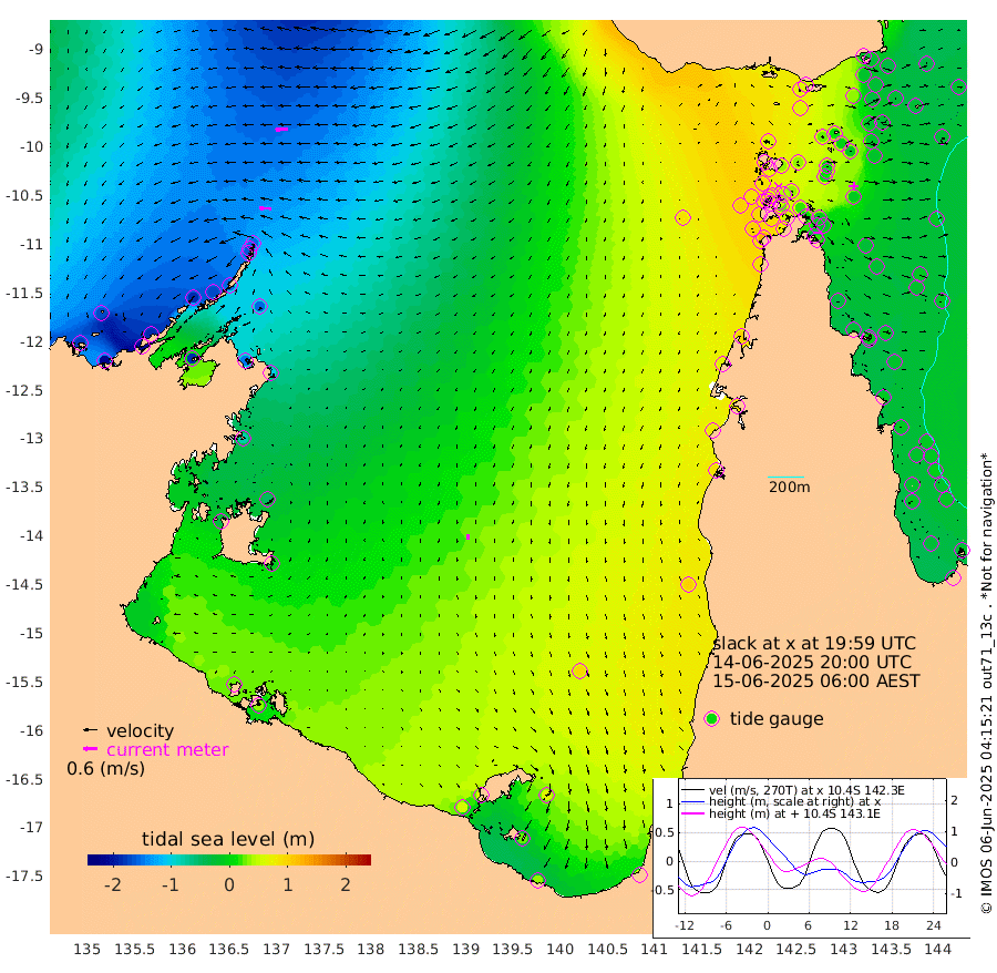 51cm/s -87T +3cm/s rms + 7cm/s -42T. ARA-GOC87 57m 24cm/s -174T +3cm/s rms + 2cm/s -2T. ARA-GOC87 60m 56cm/s -95T +2cm/s rms + 3cm/s 61T. ARA-GOC87 47m -15cm Daru -28cm Bobo Island -25cm Meer Island Barge -32cm Bramble Cay -29cm Unnamed Cay -31cm Pearce Cay -29cm Stephens Island -31cm Merrie England Shoals -18cm Mutacomal Reef -30cm Darnley Island Barge -19cm East Cay -25cm Yorke Island Barge -18cm Rennel Island -19cm Aureed Island -3cm Dungeness Reef 12cm Zagai Island 26cm Yam Island 63cm Dauan Island 55cm Saibai Island 65cm Phipi Reef 32cm Warrior Reef - West 54cm Mabuiag Island Barge -21cm Half Way Island -9cm Coconut Island -12cm Dugong Islet 6cm Poll Island 11cm Kirkcaldie Reef 34cm Suarji Island 6cm Sue Islet 87cm Hawkesbury Island 39cm Alert Patches 32cm Twin Island 76cm Badu Island 37cm St Pauls (Moa Island) 72cm Kubin (Moa Island) 52cm Ince Point 62cm Thursday Island 59cm Nardana Patches 76cm Turtle Head 82cm Round Island 86cm Goods Island 99cm Booby Island 87cm White Rocks Area 86cm Carpentaria 27cm Papou Point 95cm Bampfield Head 90cm Crab Island 102cm Red Wallis Island 96cm Packe Island -13cm Harrington Reef 121cm Herald Camp 16cm Sharp Point 70cm Red Island Point 50cm Possession Island 20cm Alpha Rock 13cm Frederick Point -22cm Wyborn Reef Light -15cm Tetley Island -10cm Triangle Reef -35cm Turtle Head Island -12cm Maclennan Cay -12cm Raine Island -24cm Mcsweeny Reef -23cm Collette Reef -16cm Shadwell Reef -31cm Hannibal Island -28cm Round Point 85cm Vrilya Point -18cm Cape Grenville -19cm Hicks Island -10cm Sir Charles Hardy Island -5cm Harvey Island -20cm Kay Reef -13cm Rocky Island -10cm Chapman Island -9cm Ham Reef -17cm Jubilee Reef -9cm Night Island -7cm Unnamed Reef No. 3 -17cm Morris Island -17cm 1st 3 Mile Opening -13cm Creech Reef -11cm Fife Island -27cm Eden Reef -17cm Stanley Island -26cm Normanby River -173cm Yabooma Island -212cm Hutchison River -180cm Elcho Island -167cm North West Crocodile Island -153cm Cape Wessel -186cm Stevens Island -167cm Guluwuru Island -156cm Hopeful Bay -161cm Auster Point -161cm Two Island Bay -209cm Cadell Strait -182cm Mallison Island -143cm Melville Bay (Gove Harbour) -154cm Truant Island -100cm Cape Arnhem -76cm Cape Grey -49cm Hawk Island -33cm Milner Bay (Groote Eylandt) -12cm Cape Beatrice 29cm West Island 32cm Centre Island 62cm Mornington Island 55cm West Wellesley Islands 65cm Bountiful Island 37cm Albert River Mouth 25cm Sweers Island 66cm Karumba 94cm Nassau River Offshore 104cm Christmas Creek 87cm Archer River 81cm Boyd Point 92cm Weipa (Humbug Point) 65cm Pennefather River 98cm Cullen Point