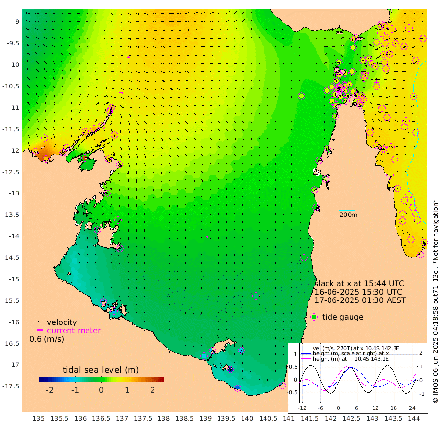 36cm/s 111T +3cm/s rms + 7cm/s -42T. ARA-GOC87 57m 24cm/s 163T +3cm/s rms + 2cm/s -2T. ARA-GOC87 60m 28cm/s 104T +2cm/s rms + 3cm/s 61T. ARA-GOC87 47m 102cm Daru 100cm Bobo Island 86cm Meer Island Barge 96cm Bramble Cay 105cm Unnamed Cay 105cm Pearce Cay 103cm Stephens Island 99cm Merrie England Shoals 100cm Mutacomal Reef 101cm Darnley Island Barge 88cm East Cay 101cm Yorke Island Barge 101cm Rennel Island 95cm Aureed Island 96cm Dungeness Reef 82cm Zagai Island 86cm Yam Island 82cm Dauan Island 70cm Saibai Island 63cm Phipi Reef 87cm Warrior Reef - West 59cm Mabuiag Island Barge 101cm Half Way Island 91cm Coconut Island 103cm Dugong Islet 87cm Poll Island 90cm Kirkcaldie Reef 68cm Suarji Island 85cm Sue Islet 81cm Hawkesbury Island 71cm Alert Patches 77cm Twin Island 73cm Badu Island 76cm St Pauls (Moa Island) 80cm Kubin (Moa Island) 70cm Ince Point 68cm Thursday Island 68cm Nardana Patches 72cm Turtle Head 64cm Round Island 73cm Goods Island 62cm Booby Island 63cm White Rocks Area 38cm Carpentaria 71cm Papou Point 72cm Bampfield Head 45cm Crab Island 60cm Red Wallis Island 72cm Packe Island 97cm Harrington Reef 72cm Herald Camp 11cm Sharp Point 55cm Red Island Point 60cm Possession Island 74cm Alpha Rock 86cm Frederick Point 101cm Wyborn Reef Light 99cm Tetley Island 77cm Triangle Reef 113cm Turtle Head Island 84cm Maclennan Cay 72cm Raine Island 98cm Mcsweeny Reef 91cm Collette Reef 80cm Shadwell Reef 99cm Hannibal Island 96cm Round Point 34cm Vrilya Point 85cm Cape Grenville 90cm Hicks Island 101cm Sir Charles Hardy Island 28cm Harvey Island 82cm Kay Reef 77cm Rocky Island 75cm Chapman Island 73cm Ham Reef 80cm Jubilee Reef 69cm Night Island 72cm Unnamed Reef No. 3 80cm Morris Island 81cm 1st 3 Mile Opening 79cm Creech Reef 78cm Fife Island 91cm Eden Reef 81cm Stanley Island 88cm Normanby River 95cm Yabooma Island 113cm Hutchison River 78cm Elcho Island 69cm North West Crocodile Island 93cm Cape Wessel 92cm Stevens Island 125cm Guluwuru Island 72cm Hopeful Bay 87cm Auster Point 95cm Two Island Bay 135cm Cadell Strait 198cm Mallison Island 96cm Melville Bay (Gove Harbour) 109cm Truant Island 67cm Cape Arnhem 22cm Cape Grey -9cm Hawk Island -58cm Milner Bay (Groote Eylandt) -65cm Cape Beatrice -115cm West Island -122cm Centre Island -108cm Mornington Island -98cm West Wellesley Islands -116cm Bountiful Island -152cm Albert River Mouth -185cm Sweers Island -156cm Karumba -59cm Nassau River Offshore -11cm Christmas Creek 12cm Archer River 32cm Boyd Point 33cm Weipa (Humbug Point) 17cm Pennefather River 33cm Cullen Point