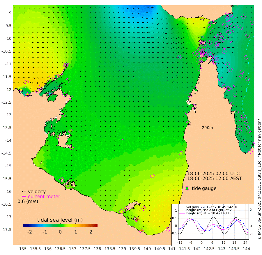 4cm/s -152T +3cm/s rms + 7cm/s -42T. ARA-GOC87 57m 15cm/s -79T +3cm/s rms + 2cm/s -2T. ARA-GOC87 60m 2cm/s 92T +2cm/s rms + 3cm/s 61T. ARA-GOC87 47m -71cm Daru -67cm Bobo Island -37cm Meer Island Barge -51cm Bramble Cay -70cm Unnamed Cay -52cm Pearce Cay -61cm Stephens Island -71cm Merrie England Shoals -78cm Mutacomal Reef -59cm Darnley Island Barge -44cm East Cay -65cm Yorke Island Barge -67cm Rennel Island -59cm Aureed Island -56cm Dungeness Reef -59cm Zagai Island -64cm Yam Island -21cm Dauan Island -45cm Saibai Island -9cm Phipi Reef -50cm Warrior Reef - West -45cm Mabuiag Island Barge -65cm Half Way Island -71cm Coconut Island -70cm Dugong Islet -62cm Poll Island -72cm Kirkcaldie Reef -57cm Suarji Island -75cm Sue Islet -31cm Hawkesbury Island -61cm Alert Patches -64cm Twin Island -23cm Badu Island -60cm St Pauls (Moa Island) -32cm Kubin (Moa Island) -51cm Ince Point -46cm Thursday Island -46cm Nardana Patches -30cm Turtle Head -35cm Round Island -19cm Goods Island -22cm Booby Island -23cm White Rocks Area -61cm Carpentaria -61cm Papou Point -53cm Bampfield Head -18cm Crab Island -24cm Red Wallis Island -24cm Packe Island -80cm Harrington Reef -35cm Herald Camp -20cm Sharp Point -36cm Red Island Point -50cm Possession Island -75cm Alpha Rock -72cm Frederick Point -82cm Wyborn Reef Light -83cm Tetley Island -37cm Triangle Reef -79cm Turtle Head Island -41cm Maclennan Cay -25cm Raine Island -64cm Mcsweeny Reef -60cm Collette Reef -40cm Shadwell Reef -63cm Hannibal Island -51cm Round Point -25cm Vrilya Point -53cm Cape Grenville -44cm Hicks Island -53cm Sir Charles Hardy Island -16cm Harvey Island -49cm Kay Reef -33cm Rocky Island -27cm Chapman Island -34cm Ham Reef -35cm Jubilee Reef -27cm Night Island -33cm Unnamed Reef No. 3 -34cm Morris Island -29cm 1st 3 Mile Opening -33cm Creech Reef -31cm Fife Island -28cm Eden Reef -37cm Stanley Island -39cm Normanby River 84cm Yabooma Island 94cm Hutchison River 88cm Elcho Island 89cm North West Crocodile Island 9cm Cape Wessel 58cm Stevens Island -8cm Guluwuru Island 61cm Hopeful Bay 34cm Auster Point 37cm Two Island Bay 67cm Cadell Strait -100cm Mallison Island 10cm Melville Bay (Gove Harbour) 2cm Truant Island 2cm Cape Arnhem 4cm Cape Grey 23cm Hawk Island 27cm Milner Bay (Groote Eylandt) 32cm Cape Beatrice 27cm West Island 30cm Centre Island 75cm Mornington Island 69cm West Wellesley Islands 102cm Bountiful Island 155cm Albert River Mouth 161cm Sweers Island 150cm Karumba 72cm Nassau River Offshore 39cm Christmas Creek 16cm Archer River -9cm Boyd Point 9cm Weipa (Humbug Point) -6cm Pennefather River -18cm Cullen Point