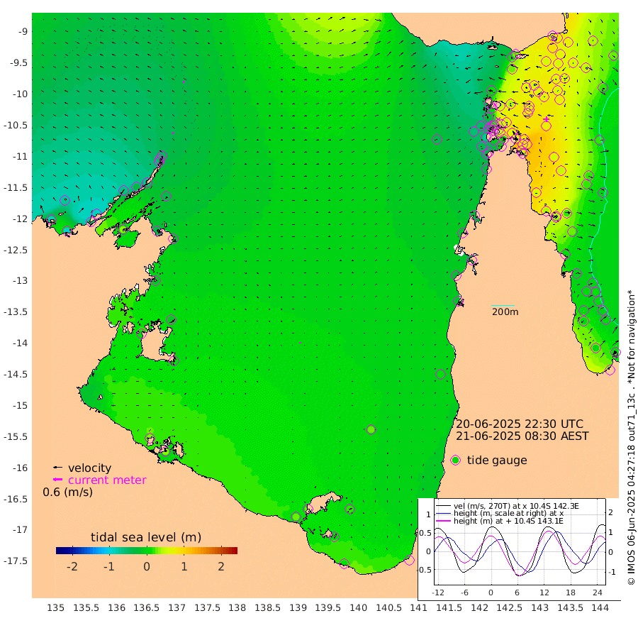 9cm/s -39T +3cm/s rms + 7cm/s -42T. ARA-GOC87 57m 7cm/s 145T +3cm/s rms + 2cm/s -2T. ARA-GOC87 60m 11cm/s -58T +2cm/s rms + 3cm/s 61T. ARA-GOC87 47m 75cm Daru 68cm Bobo Island 17cm Meer Island Barge 42cm Bramble Cay 66cm Unnamed Cay 56cm Pearce Cay 55cm Stephens Island 72cm Merrie England Shoals 86cm Mutacomal Reef 47cm Darnley Island Barge 23cm East Cay 59cm Yorke Island Barge 63cm Rennel Island 56cm Aureed Island 61cm Dungeness Reef 55cm Zagai Island 67cm Yam Island 12cm Dauan Island 24cm Saibai Island 23cm Phipi Reef 55cm Warrior Reef - West 15cm Mabuiag Island Barge 71cm Half Way Island 66cm Coconut Island 75cm Dugong Islet 65cm Poll Island 77cm Kirkcaldie Reef 43cm Suarji Island 66cm Sue Islet -25cm Hawkesbury Island 42cm Alert Patches 53cm Twin Island -29cm Badu Island 51cm St Pauls (Moa Island) -6cm Kubin (Moa Island) 28cm Ince Point 15cm Thursday Island 18cm Nardana Patches -11cm Turtle Head -23cm Round Island -42cm Goods Island -56cm Booby Island -48cm White Rocks Area -40cm Carpentaria 46cm Papou Point -75cm Bampfield Head -42cm Crab Island -40cm Red Wallis Island -12cm Packe Island 81cm Harrington Reef -35cm Herald Camp 26cm Sharp Point 6cm Red Island Point 14cm Possession Island 62cm Alpha Rock 64cm Frederick Point 75cm Wyborn Reef Light 76cm Tetley Island 18cm Triangle Reef 68cm Turtle Head Island 19cm Maclennan Cay -5cm Raine Island 55cm Mcsweeny Reef 47cm Collette Reef 18cm Shadwell Reef 54cm Hannibal Island 41cm Round Point -31cm Vrilya Point 39cm Cape Grenville 25cm Hicks Island 22cm Sir Charles Hardy Island 11cm Harvey Island 26cm Kay Reef 6cm Rocky Island -5cm Chapman Island 0cm Ham Reef 6cm Jubilee Reef 9cm Night Island 2cm Unnamed Reef No. 3 7cm Morris Island -7cm 1st 3 Mile Opening 4cm Creech Reef 5cm Fife Island 1cm Eden Reef 10cm Stanley Island 18cm Normanby River -86cm Yabooma Island -97cm Hutchison River -86cm Elcho Island -73cm North West Crocodile Island -46cm Cape Wessel -63cm Stevens Island -32cm Guluwuru Island -68cm Hopeful Bay -61cm Auster Point -49cm Two Island Bay -62cm Cadell Strait 33cm Mallison Island -39cm Melville Bay (Gove Harbour) -43cm Truant Island -28cm Cape Arnhem -16cm Cape Grey -9cm Hawk Island 3cm Milner Bay (Groote Eylandt) 12cm Cape Beatrice 36cm West Island 31cm Centre Island 28cm Mornington Island 26cm West Wellesley Islands 17cm Bountiful Island 12cm Albert River Mouth 2cm Sweers Island 18cm Karumba 27cm Nassau River Offshore 13cm Christmas Creek -17cm Archer River -25cm Boyd Point -37cm Weipa (Humbug Point) -20cm Pennefather River -33cm Cullen Point