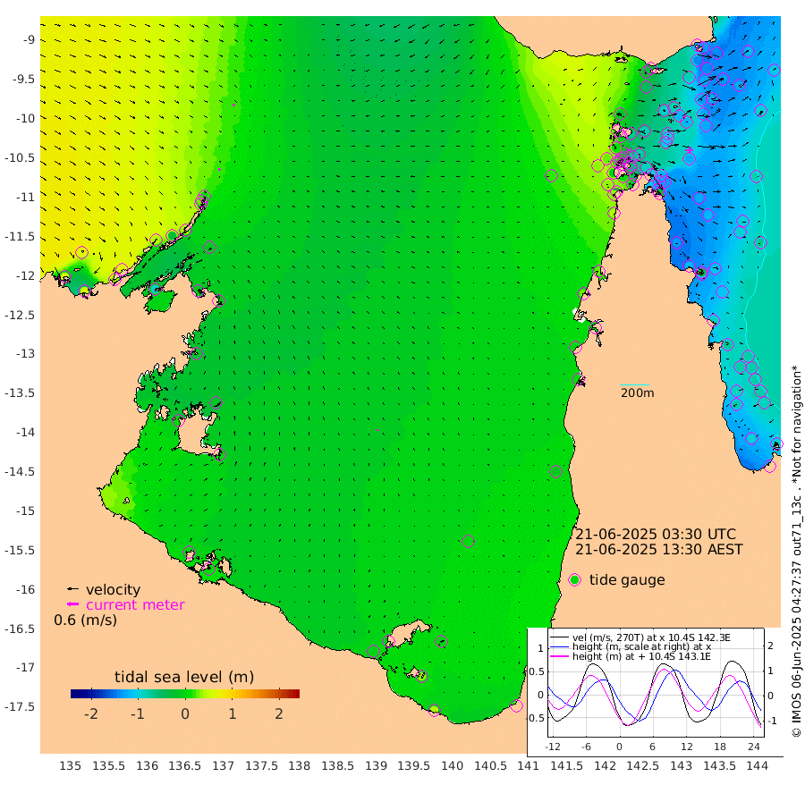 9cm/s 161T +3cm/s rms + 7cm/s -42T. ARA-GOC87 57m 9cm/s -27T +3cm/s rms + 2cm/s -2T. ARA-GOC87 60m 11cm/s 149T +2cm/s rms + 3cm/s 61T. ARA-GOC87 47m -131cm Daru -131cm Bobo Island -94cm Meer Island Barge -117cm Bramble Cay -138cm Unnamed Cay -120cm Pearce Cay -130cm Stephens Island -139cm Merrie England Shoals -137cm Mutacomal Reef -124cm Darnley Island Barge -105cm East Cay -127cm Yorke Island Barge -128cm Rennel Island -121cm Aureed Island -114cm Dungeness Reef -87cm Zagai Island -91cm Yam Island -25cm Dauan Island -37cm Saibai Island -46cm Phipi Reef -83cm Warrior Reef - West -22cm Mabuiag Island Barge -125cm Half Way Island -119cm Coconut Island -127cm Dugong Islet -99cm Poll Island -112cm Kirkcaldie Reef -85cm Suarji Island -103cm Sue Islet 10cm Hawkesbury Island -73cm Alert Patches -77cm Twin Island 17cm Badu Island -68cm St Pauls (Moa Island) -12cm Kubin (Moa Island) -46cm Ince Point -30cm Thursday Island -33cm Nardana Patches -13cm Turtle Head -18cm Round Island 16cm Goods Island 35cm Booby Island 27cm White Rocks Area 18cm Carpentaria -65cm Papou Point -7cm Bampfield Head 37cm Crab Island 33cm Red Wallis Island 0cm Packe Island -136cm Harrington Reef -10cm Herald Camp -20cm Sharp Point -15cm Red Island Point -56cm Possession Island -85cm Alpha Rock -101cm Frederick Point -131cm Wyborn Reef Light -124cm Tetley Island -81cm Triangle Reef -132cm Turtle Head Island -94cm Maclennan Cay -70cm Raine Island -124cm Mcsweeny Reef -119cm Collette Reef -91cm Shadwell Reef -132cm Hannibal Island -117cm Round Point 40cm Vrilya Point -114cm Cape Grenville -106cm Hicks Island -112cm Sir Charles Hardy Island -36cm Harvey Island -106cm Kay Reef -87cm Rocky Island -74cm Chapman Island -77cm Ham Reef -82cm Jubilee Reef -76cm Night Island -76cm Unnamed Reef No. 3 -89cm Morris Island -79cm 1st 3 Mile Opening -84cm Creech Reef -81cm Fife Island -93cm Eden Reef -93cm Stanley Island -102cm Normanby River 61cm Yabooma Island 54cm Hutchison River 62cm Elcho Island 64cm North West Crocodile Island 9cm Cape Wessel 43cm Stevens Island -30cm Guluwuru Island 39cm Hopeful Bay 22cm Auster Point 23cm Two Island Bay 38cm Cadell Strait -94cm Mallison Island -12cm Melville Bay (Gove Harbour) -14cm Truant Island -13cm Cape Arnhem -16cm Cape Grey -8cm Hawk Island 5cm Milner Bay (Groote Eylandt) 5cm Cape Beatrice 3cm West Island 3cm Centre Island -5cm Mornington Island -4cm West Wellesley Islands -6cm Bountiful Island 38cm Albert River Mouth 37cm Sweers Island 29cm Karumba 1cm Nassau River Offshore -8cm Christmas Creek 9cm Archer River 5cm Boyd Point 14cm Weipa (Humbug Point) 28cm Pennefather River 27cm Cullen Point