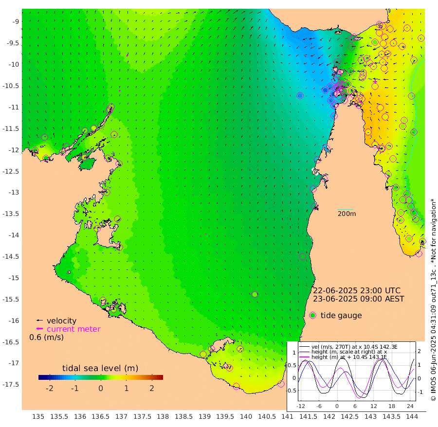16cm/s 33T +3cm/s rms + 7cm/s -42T. ARA-GOC87 57m 7cm/s -17T +3cm/s rms + 2cm/s -2T. ARA-GOC87 60m 19cm/s 31T +2cm/s rms + 3cm/s 61T. ARA-GOC87 47m 77cm Daru 83cm Bobo Island 43cm Meer Island Barge 68cm Bramble Cay 81cm Unnamed Cay 76cm Pearce Cay 76cm Stephens Island 87cm Merrie England Shoals 86cm Mutacomal Reef 70cm Darnley Island Barge 50cm East Cay 73cm Yorke Island Barge 71cm Rennel Island 70cm Aureed Island 58cm Dungeness Reef 32cm Zagai Island 36cm Yam Island -40cm Dauan Island -27cm Saibai Island -17cm Phipi Reef 27cm Warrior Reef - West -47cm Mabuiag Island Barge 78cm Half Way Island 59cm Coconut Island 74cm Dugong Islet 46cm Poll Island 55cm Kirkcaldie Reef 11cm Suarji Island 44cm Sue Islet -112cm Hawkesbury Island -6cm Alert Patches 9cm Twin Island -114cm Badu Island 2cm St Pauls (Moa Island) -77cm Kubin (Moa Island) -31cm Ince Point -52cm Thursday Island -48cm Nardana Patches -83cm Turtle Head -92cm Round Island -125cm Goods Island -154cm Booby Island -137cm White Rocks Area -136cm Carpentaria 4cm Papou Point -160cm Bampfield Head -131cm Crab Island -138cm Red Wallis Island -94cm Packe Island 78cm Harrington Reef -118cm Herald Camp 9cm Sharp Point -61cm Red Island Point -32cm Possession Island 24cm Alpha Rock 38cm Frederick Point 73cm Wyborn Reef Light 67cm Tetley Island 31cm Triangle Reef 71cm Turtle Head Island 38cm Maclennan Cay 15cm Raine Island 68cm Mcsweeny Reef 63cm Collette Reef 36cm Shadwell Reef 76cm Hannibal Island 65cm Round Point -124cm Vrilya Point 59cm Cape Grenville 50cm Hicks Island 43cm Sir Charles Hardy Island 19cm Harvey Island 49cm Kay Reef 31cm Rocky Island 18cm Chapman Island 20cm Ham Reef 27cm Jubilee Reef 29cm Night Island 20cm Unnamed Reef No. 3 32cm Morris Island 15cm 1st 3 Mile Opening 26cm Creech Reef 30cm Fife Island 36cm Eden Reef 35cm Stanley Island 52cm Normanby River 6cm Yabooma Island 14cm Hutchison River 8cm Elcho Island 15cm North West Crocodile Island 26cm Cape Wessel 26cm Stevens Island 46cm Guluwuru Island 18cm Hopeful Bay 18cm Auster Point 33cm Two Island Bay 43cm Cadell Strait 98cm Mallison Island 34cm Melville Bay (Gove Harbour) 31cm Truant Island 23cm Cape Arnhem 30cm Cape Grey 34cm Hawk Island 39cm Milner Bay (Groote Eylandt) 40cm Cape Beatrice 49cm West Island 44cm Centre Island 56cm Mornington Island 52cm West Wellesley Islands 66cm Bountiful Island 76cm Albert River Mouth 85cm Sweers Island 74cm Karumba 28cm Nassau River Offshore -10cm Christmas Creek -60cm Archer River -78cm Boyd Point -89cm Weipa (Humbug Point) -84cm Pennefather River -112cm Cullen Point