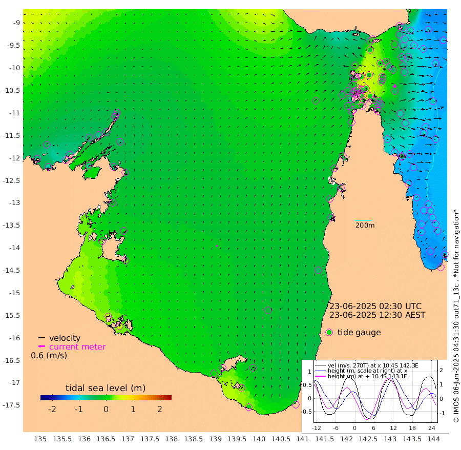 5cm/s -11T +3cm/s rms + 7cm/s -42T. ARA-GOC87 57m 19cm/s 17T +3cm/s rms + 2cm/s -2T. ARA-GOC87 60m 3cm/s 6T +2cm/s rms + 3cm/s 61T. ARA-GOC87 47m -57cm Daru -66cm Bobo Island -102cm Meer Island Barge -98cm Bramble Cay -80cm Unnamed Cay -78cm Pearce Cay -91cm Stephens Island -81cm Merrie England Shoals -53cm Mutacomal Reef -91cm Darnley Island Barge -111cm East Cay -71cm Yorke Island Barge -70cm Rennel Island -67cm Aureed Island -50cm Dungeness Reef -8cm Zagai Island -7cm Yam Island 7cm Dauan Island 15cm Saibai Island -12cm Phipi Reef -13cm Warrior Reef - West 22cm Mabuiag Island Barge -61cm Half Way Island -46cm Coconut Island -52cm Dugong Islet -20cm Poll Island -29cm Kirkcaldie Reef -9cm Suarji Island -15cm Sue Islet -21cm Hawkesbury Island -6cm Alert Patches -3cm Twin Island -15cm Badu Island 11cm St Pauls (Moa Island) -19cm Kubin (Moa Island) 1cm Ince Point 0cm Thursday Island 0cm Nardana Patches -24cm Turtle Head -30cm Round Island -38cm Goods Island -33cm Booby Island -30cm White Rocks Area -11cm Carpentaria 4cm Papou Point -62cm Bampfield Head -22cm Crab Island -23cm Red Wallis Island -28cm Packe Island -49cm Harrington Reef -48cm Herald Camp 17cm Sharp Point -13cm Red Island Point -17cm Possession Island 2cm Alpha Rock -21cm Frederick Point -47cm Wyborn Reef Light -35cm Tetley Island -80cm Triangle Reef -55cm Turtle Head Island -98cm Maclennan Cay -105cm Raine Island -77cm Mcsweeny Reef -83cm Collette Reef -93cm Shadwell Reef -93cm Hannibal Island -102cm Round Point -6cm Vrilya Point -99cm Cape Grenville -105cm Hicks Island -116cm Sir Charles Hardy Island -31cm Harvey Island -109cm Kay Reef -109cm Rocky Island -109cm Chapman Island -106cm Ham Reef -105cm Jubilee Reef -95cm Night Island -106cm Unnamed Reef No. 3 -114cm Morris Island -112cm 1st 3 Mile Opening -110cm Creech Reef -109cm Fife Island -134cm Eden Reef -115cm Stanley Island -121cm Normanby River -53cm Yabooma Island -79cm Hutchison River -55cm Elcho Island -42cm North West Crocodile Island -36cm Cape Wessel -38cm Stevens Island -64cm Guluwuru Island -46cm Hopeful Bay -39cm Auster Point -35cm Two Island Bay -59cm Cadell Strait -73cm Mallison Island -52cm Melville Bay (Gove Harbour) -53cm Truant Island -36cm Cape Arnhem -17cm Cape Grey -6cm Hawk Island 30cm Milner Bay (Groote Eylandt) 26cm Cape Beatrice 58cm West Island 57cm Centre Island 3cm Mornington Island 7cm West Wellesley Islands -14cm Bountiful Island 9cm Albert River Mouth 23cm Sweers Island 3cm Karumba -23cm Nassau River Offshore -47cm Christmas Creek -48cm Archer River -43cm Boyd Point -57cm Weipa (Humbug Point) -13cm Pennefather River -22cm Cullen Point
