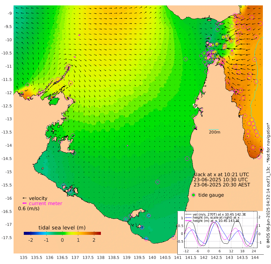 33cm/s 113T +3cm/s rms + 7cm/s -42T. ARA-GOC87 57m 17cm/s 160T +3cm/s rms + 2cm/s -2T. ARA-GOC87 60m 26cm/s 107T +2cm/s rms + 3cm/s 61T. ARA-GOC87 47m 131cm Daru 143cm Bobo Island 131cm Meer Island Barge 148cm Bramble Cay 150cm Unnamed Cay 153cm Pearce Cay 155cm Stephens Island 158cm Merrie England Shoals 134cm Mutacomal Reef 149cm Darnley Island Barge 139cm East Cay 138cm Yorke Island Barge 139cm Rennel Island 136cm Aureed Island 116cm Dungeness Reef 61cm Zagai Island 55cm Yam Island -12cm Dauan Island -14cm Saibai Island 11cm Phipi Reef 52cm Warrior Reef - West -9cm Mabuiag Island Barge 140cm Half Way Island 124cm Coconut Island 130cm Dugong Islet 89cm Poll Island 100cm Kirkcaldie Reef 57cm Suarji Island 80cm Sue Islet 12cm Hawkesbury Island 61cm Alert Patches 64cm Twin Island 9cm Badu Island 45cm St Pauls (Moa Island) 25cm Kubin (Moa Island) 38cm Ince Point 30cm Thursday Island 30cm Nardana Patches 30cm Turtle Head 18cm Round Island 25cm Goods Island 14cm Booby Island 17cm White Rocks Area 17cm Carpentaria 47cm Papou Point 33cm Bampfield Head 10cm Crab Island 11cm Red Wallis Island 27cm Packe Island 140cm Harrington Reef 6cm Herald Camp 1cm Sharp Point 22cm Red Island Point 45cm Possession Island 60cm Alpha Rock 94cm Frederick Point 131cm Wyborn Reef Light 119cm Tetley Island 109cm Triangle Reef 153cm Turtle Head Island 123cm Maclennan Cay 112cm Raine Island 142cm Mcsweeny Reef 139cm Collette Reef 121cm Shadwell Reef 157cm Hannibal Island 153cm Round Point 12cm Vrilya Point 141cm Cape Grenville 136cm Hicks Island 134cm Sir Charles Hardy Island 43cm Harvey Island 138cm Kay Reef 120cm Rocky Island 114cm Chapman Island 111cm Ham Reef 120cm Jubilee Reef 113cm Night Island 116cm Unnamed Reef No. 3 130cm Morris Island 123cm 1st 3 Mile Opening 125cm Creech Reef 123cm Fife Island 149cm Eden Reef 133cm Stanley Island 144cm Normanby River 26cm Yabooma Island 64cm Hutchison River 37cm Elcho Island 21cm North West Crocodile Island 55cm Cape Wessel 46cm Stevens Island 100cm Guluwuru Island 35cm Hopeful Bay 51cm Auster Point 48cm Two Island Bay 77cm Cadell Strait 156cm Mallison Island 72cm Melville Bay (Gove Harbour) 81cm Truant Island 54cm Cape Arnhem 23cm Cape Grey 4cm Hawk Island -39cm Milner Bay (Groote Eylandt) -41cm Cape Beatrice -79cm West Island -76cm Centre Island -65cm Mornington Island -67cm West Wellesley Islands -97cm Bountiful Island -120cm Albert River Mouth -132cm Sweers Island -121cm Karumba -44cm Nassau River Offshore -10cm Christmas Creek 12cm Archer River 17cm Boyd Point 11cm Weipa (Humbug Point) 22cm Pennefather River 1cm Cullen Point