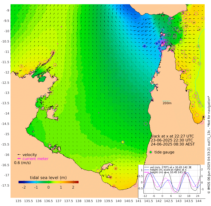 15cm/s 30T +3cm/s rms + 7cm/s -42T. ARA-GOC87 57m 13cm/s -51T +3cm/s rms + 2cm/s -2T. ARA-GOC87 60m 22cm/s 35T +2cm/s rms + 3cm/s 61T. ARA-GOC87 47m 46cm Daru 59cm Bobo Island 56cm Meer Island Barge 70cm Bramble Cay 63cm Unnamed Cay 60cm Pearce Cay 67cm Stephens Island 69cm Merrie England Shoals 51cm Mutacomal Reef 63cm Darnley Island Barge 64cm East Cay 53cm Yorke Island Barge 48cm Rennel Island 50cm Aureed Island 27cm Dungeness Reef -12cm Zagai Island -11cm Yam Island -75cm Dauan Island -67cm Saibai Island -46cm Phipi Reef -14cm Warrior Reef - West -91cm Mabuiag Island Barge 50cm Half Way Island 24cm Coconut Island 40cm Dugong Islet 3cm Poll Island 9cm Kirkcaldie Reef -34cm Suarji Island -3cm Sue Islet -138cm Hawkesbury Island -56cm Alert Patches -42cm Twin Island -139cm Badu Island -54cm St Pauls (Moa Island) -106cm Kubin (Moa Island) -77cm Ince Point -95cm Thursday Island -91cm Nardana Patches -111cm Turtle Head -113cm Round Island -139cm Goods Island -169cm Booby Island -153cm White Rocks Area -165cm Carpentaria -44cm Papou Point -169cm Bampfield Head -147cm Crab Island -158cm Red Wallis Island -117cm Packe Island 37cm Harrington Reef -132cm Herald Camp -14cm Sharp Point -91cm Red Island Point -68cm Possession Island -27cm Alpha Rock -9cm Frederick Point 36cm Wyborn Reef Light 24cm Tetley Island 35cm Triangle Reef 32cm Turtle Head Island 47cm Maclennan Cay 38cm Raine Island 52cm Mcsweeny Reef 54cm Collette Reef 44cm Shadwell Reef 68cm Hannibal Island 68cm Round Point -149cm Vrilya Point 62cm Cape Grenville 60cm Hicks Island 56cm Sir Charles Hardy Island 20cm Harvey Island 62cm Kay Reef 52cm Rocky Island 43cm Chapman Island 42cm Ham Reef 46cm Jubilee Reef 45cm Night Island 41cm Unnamed Reef No. 3 54cm Morris Island 36cm 1st 3 Mile Opening 46cm Creech Reef 52cm Fife Island 67cm Eden Reef 55cm Stanley Island 74cm Normanby River 78cm Yabooma Island 99cm Hutchison River 83cm Elcho Island 84cm North West Crocodile Island 62cm Cape Wessel 82cm Stevens Island 78cm Guluwuru Island 79cm Hopeful Bay 63cm Auster Point 75cm Two Island Bay 104cm Cadell Strait 103cm Mallison Island 69cm Melville Bay (Gove Harbour) 64cm Truant Island 45cm Cape Arnhem 46cm Cape Grey 52cm Hawk Island 48cm Milner Bay (Groote Eylandt) 49cm Cape Beatrice 44cm West Island 40cm Centre Island 82cm Mornington Island 75cm West Wellesley Islands 115cm Bountiful Island 138cm Albert River Mouth 149cm Sweers Island 133cm Karumba 53cm Nassau River Offshore 8cm Christmas Creek -49cm Archer River -78cm Boyd Point -77cm Weipa (Humbug Point) -99cm Pennefather River -125cm Cullen Point
