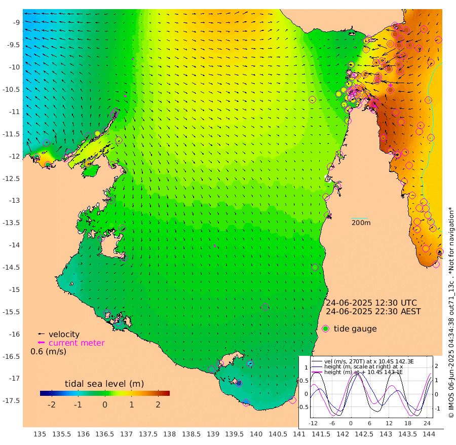 24cm/s 117T +3cm/s rms + 7cm/s -42T. ARA-GOC87 57m 28cm/s 162T +3cm/s rms + 2cm/s -2T. ARA-GOC87 60m 13cm/s 120T +2cm/s rms + 3cm/s 61T. ARA-GOC87 47m 188cm Daru 190cm Bobo Island 129cm Meer Island Barge 158cm Bramble Cay 186cm Unnamed Cay 192cm Pearce Cay 182cm Stephens Island 188cm Merrie England Shoals 192cm Mutacomal Reef 171cm Darnley Island Barge 137cm East Cay 179cm Yorke Island Barge 186cm Rennel Island 184cm Aureed Island 181cm Dungeness Reef 147cm Zagai Island 146cm Yam Island 92cm Dauan Island 84cm Saibai Island 108cm Phipi Reef 147cm Warrior Reef - West 78cm Mabuiag Island Barge 187cm Half Way Island 187cm Coconut Island 191cm Dugong Islet 169cm Poll Island 176cm Kirkcaldie Reef 155cm Suarji Island 159cm Sue Islet 73cm Hawkesbury Island 151cm Alert Patches 155cm Twin Island 74cm Badu Island 145cm St Pauls (Moa Island) 93cm Kubin (Moa Island) 123cm Ince Point 111cm Thursday Island 113cm Nardana Patches 100cm Turtle Head 78cm Round Island 77cm Goods Island 57cm Booby Island 64cm White Rocks Area 50cm Carpentaria 129cm Papou Point 77cm Bampfield Head 42cm Crab Island 59cm Red Wallis Island 90cm Packe Island 205cm Harrington Reef 65cm Herald Camp 34cm Sharp Point 82cm Red Island Point 119cm Possession Island 143cm Alpha Rock 173cm Frederick Point 191cm Wyborn Reef Light 186cm Tetley Island 121cm Triangle Reef 208cm Turtle Head Island 128cm Maclennan Cay 98cm Raine Island 176cm Mcsweeny Reef 164cm Collette Reef 124cm Shadwell Reef 179cm Hannibal Island 162cm Round Point 39cm Vrilya Point 149cm Cape Grenville 140cm Hicks Island 142cm Sir Charles Hardy Island 46cm Harvey Island 133cm Kay Reef 111cm Rocky Island 103cm Chapman Island 99cm Ham Reef 110cm Jubilee Reef 106cm Night Island 104cm Unnamed Reef No. 3 118cm Morris Island 112cm 1st 3 Mile Opening 115cm Creech Reef 112cm Fife Island 127cm Eden Reef 120cm Stanley Island 129cm Normanby River -57cm Yabooma Island -35cm Hutchison River -56cm Elcho Island -65cm North West Crocodile Island 2cm Cape Wessel -32cm Stevens Island 54cm Guluwuru Island -42cm Hopeful Bay -10cm Auster Point -16cm Two Island Bay -4cm Cadell Strait 122cm Mallison Island 28cm Melville Bay (Gove Harbour) 37cm Truant Island 27cm Cape Arnhem 2cm Cape Grey -12cm Hawk Island -53cm Milner Bay (Groote Eylandt) -51cm Cape Beatrice -74cm West Island -72cm Centre Island -61cm Mornington Island -56cm West Wellesley Islands -95cm Bountiful Island -141cm Albert River Mouth -161cm Sweers Island -135cm Karumba -28cm Nassau River Offshore 15cm Christmas Creek 28cm Archer River 41cm Boyd Point 32cm Weipa (Humbug Point) 38cm Pennefather River 31cm Cullen Point
