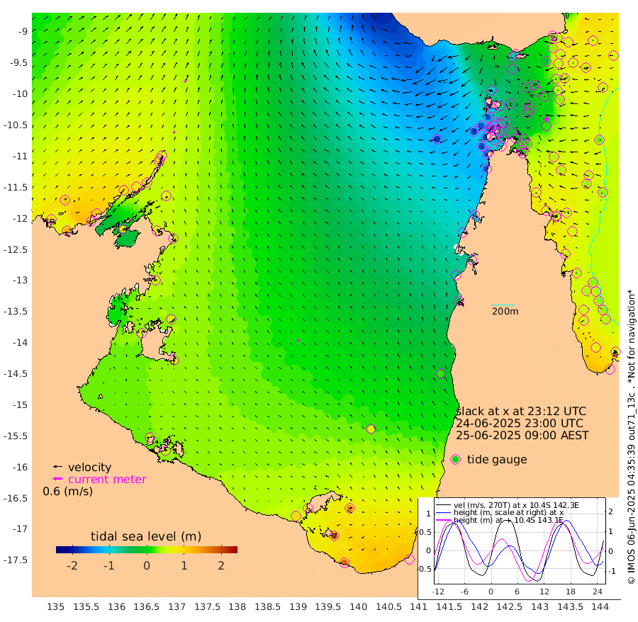 15cm/s 28T +3cm/s rms + 7cm/s -42T. ARA-GOC87 57m 17cm/s -52T +3cm/s rms + 2cm/s -2T. ARA-GOC87 60m 23cm/s 36T +2cm/s rms + 3cm/s 61T. ARA-GOC87 47m 30cm Daru 45cm Bobo Island 48cm Meer Island Barge 60cm Bramble Cay 49cm Unnamed Cay 49cm Pearce Cay 53cm Stephens Island 54cm Merrie England Shoals 35cm Mutacomal Reef 50cm Darnley Island Barge 55cm East Cay 38cm Yorke Island Barge 33cm Rennel Island 38cm Aureed Island 14cm Dungeness Reef -25cm Zagai Island -27cm Yam Island -80cm Dauan Island -77cm Saibai Island -48cm Phipi Reef -26cm Warrior Reef - West -101cm Mabuiag Island Barge 34cm Half Way Island 10cm Coconut Island 22cm Dugong Islet -11cm Poll Island -9cm Kirkcaldie Reef -44cm Suarji Island -20cm Sue Islet -150cm Hawkesbury Island -69cm Alert Patches -57cm Twin Island -146cm Badu Island -69cm St Pauls (Moa Island) -117cm Kubin (Moa Island) -89cm Ince Point -107cm Thursday Island -102cm Nardana Patches -118cm Turtle Head -123cm Round Island -145cm Goods Island -176cm Booby Island -158cm White Rocks Area -180cm Carpentaria -59cm Papou Point -179cm Bampfield Head -155cm Crab Island -165cm Red Wallis Island -125cm Packe Island 19cm Harrington Reef -144cm Herald Camp -19cm Sharp Point -102cm Red Island Point -79cm Possession Island -43cm Alpha Rock -25cm Frederick Point 19cm Wyborn Reef Light 7cm Tetley Island 28cm Triangle Reef 13cm Turtle Head Island 38cm Maclennan Cay 34cm Raine Island 39cm Mcsweeny Reef 42cm Collette Reef 37cm Shadwell Reef 56cm Hannibal Island 58cm Round Point -160cm Vrilya Point 52cm Cape Grenville 51cm Hicks Island 46cm Sir Charles Hardy Island 16cm Harvey Island 53cm Kay Reef 46cm Rocky Island 41cm Chapman Island 36cm Ham Reef 39cm Jubilee Reef 39cm Night Island 36cm Unnamed Reef No. 3 48cm Morris Island 31cm 1st 3 Mile Opening 39cm Creech Reef 46cm Fife Island 63cm Eden Reef 48cm Stanley Island 66cm Normanby River 96cm Yabooma Island 121cm Hutchison River 104cm Elcho Island 104cm North West Crocodile Island 67cm Cape Wessel 97cm Stevens Island 79cm Guluwuru Island 95cm Hopeful Bay 72cm Auster Point 80cm Two Island Bay 115cm Cadell Strait 90cm Mallison Island 74cm Melville Bay (Gove Harbour) 68cm Truant Island 49cm Cape Arnhem 51cm Cape Grey 60cm Hawk Island 59cm Milner Bay (Groote Eylandt) 60cm Cape Beatrice 53cm West Island 52cm Centre Island 102cm Mornington Island 96cm West Wellesley Islands 143cm Bountiful Island 180cm Albert River Mouth 193cm Sweers Island 171cm Karumba 70cm Nassau River Offshore 15cm Christmas Creek -47cm Archer River -81cm Boyd Point -76cm Weipa (Humbug Point) -104cm Pennefather River -132cm Cullen Point