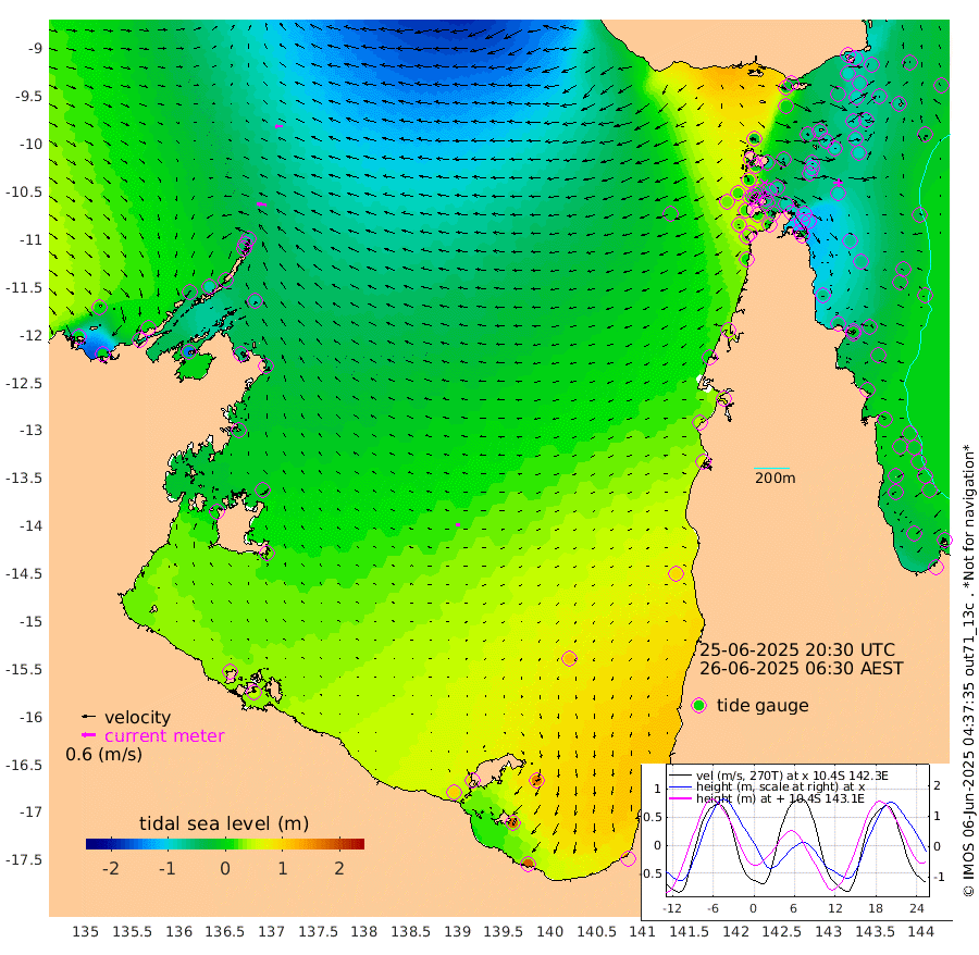 40cm/s -83T +3cm/s rms + 7cm/s -42T. ARA-GOC87 57m 17cm/s -105T +3cm/s rms + 2cm/s -2T. ARA-GOC87 60m 35cm/s -89T +2cm/s rms + 3cm/s 61T. ARA-GOC87 47m -84cm Daru -90cm Bobo Island -34cm Meer Island Barge -51cm Bramble Cay -75cm Unnamed Cay -84cm Pearce Cay -72cm Stephens Island -75cm Merrie England Shoals -85cm Mutacomal Reef -68cm Darnley Island Barge -32cm East Cay -81cm Yorke Island Barge -78cm Rennel Island -83cm Aureed Island -75cm Dungeness Reef -73cm Zagai Island -64cm Yam Island -17cm Dauan Island -26cm Saibai Island -3cm Phipi Reef -57cm Warrior Reef - West -29cm Mabuiag Island Barge -85cm Half Way Island -87cm Coconut Island -89cm Dugong Islet -82cm Poll Island -77cm Kirkcaldie Reef -66cm Suarji Island -83cm Sue Islet 9cm Hawkesbury Island -65cm Alert Patches -74cm Twin Island 10cm Badu Island -73cm St Pauls (Moa Island) -10cm Kubin (Moa Island) -46cm Ince Point -35cm Thursday Island -36cm Nardana Patches -5cm Turtle Head 7cm Round Island 22cm Goods Island 29cm Booby Island 22cm White Rocks Area -7cm Carpentaria -65cm Papou Point 16cm Bampfield Head 28cm Crab Island 23cm Red Wallis Island 10cm Packe Island -103cm Harrington Reef 36cm Herald Camp -20cm Sharp Point -3cm Red Island Point -41cm Possession Island -77cm Alpha Rock -85cm Frederick Point -98cm Wyborn Reef Light -98cm Tetley Island -35cm Triangle Reef -114cm Turtle Head Island -31cm Maclennan Cay -7cm Raine Island -74cm Mcsweeny Reef -61cm Collette Reef -30cm Shadwell Reef -67cm Hannibal Island -52cm Round Point 12cm Vrilya Point -42cm Cape Grenville -35cm Hicks Island -27cm Sir Charles Hardy Island -14cm Harvey Island -28cm Kay Reef -13cm Rocky Island -7cm Chapman Island -10cm Ham Reef -17cm Jubilee Reef -17cm Night Island -10cm Unnamed Reef No. 3 -16cm Morris Island -14cm 1st 3 Mile Opening -16cm Creech Reef -20cm Fife Island -14cm Eden Reef -18cm Stanley Island -24cm Normanby River 5cm Yabooma Island -4cm Hutchison River 5cm Elcho Island 12cm North West Crocodile Island -63cm Cape Wessel -32cm Stevens Island -80cm Guluwuru Island -11cm Hopeful Bay -48cm Auster Point -51cm Two Island Bay -52cm Cadell Strait -149cm Mallison Island -58cm Melville Bay (Gove Harbour) -74cm Truant Island -49cm Cape Arnhem -25cm Cape Grey -4cm Hawk Island 13cm Milner Bay (Groote Eylandt) 29cm Cape Beatrice 44cm West Island 46cm Centre Island 109cm Mornington Island 100cm West Wellesley Islands 159cm Bountiful Island 186cm Albert River Mouth 173cm Sweers Island 191cm Karumba 118cm Nassau River Offshore 97cm Christmas Creek 66cm Archer River 38cm Boyd Point 65cm Weipa (Humbug Point) 15cm Pennefather River 31cm Cullen Point
