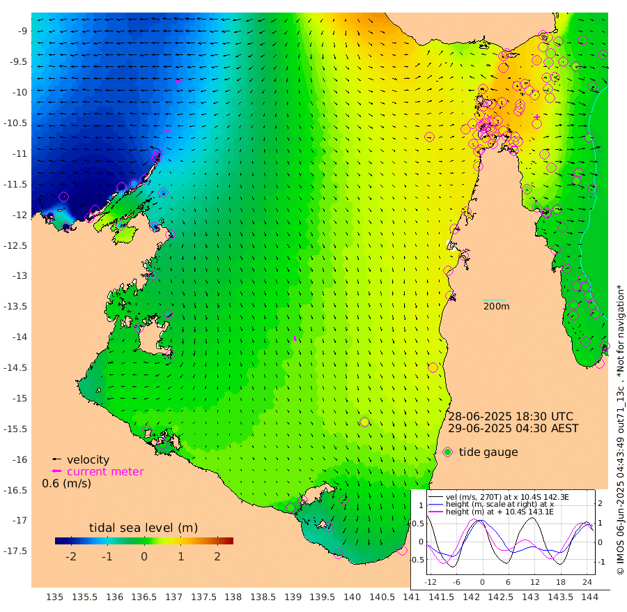 32cm/s -87T +3cm/s rms + 7cm/s -42T. ARA-GOC87 57m 34cm/s 168T +3cm/s rms + 2cm/s -2T. ARA-GOC87 60m 43cm/s -94T +2cm/s rms + 3cm/s 61T. ARA-GOC87 47m 66cm Daru 47cm Bobo Island 10cm Meer Island Barge 12cm Bramble Cay 37cm Unnamed Cay 35cm Pearce Cay 35cm Stephens Island 31cm Merrie England Shoals 55cm Mutacomal Reef 33cm Darnley Island Barge 13cm East Cay 48cm Yorke Island Barge 52cm Rennel Island 49cm Aureed Island 72cm Dungeness Reef 90cm Zagai Island 104cm Yam Island 123cm Dauan Island 117cm Saibai Island 118cm Phipi Reef 109cm Warrior Reef - West 102cm Mabuiag Island Barge 55cm Half Way Island 65cm Coconut Island 70cm Dugong Islet 82cm Poll Island 96cm Kirkcaldie Reef 97cm Suarji Island 89cm Sue Islet 100cm Hawkesbury Island 103cm Alert Patches 101cm Twin Island 94cm Badu Island 112cm St Pauls (Moa Island) 99cm Kubin (Moa Island) 105cm Ince Point 106cm Thursday Island 105cm Nardana Patches 102cm Turtle Head 91cm Round Island 89cm Goods Island 91cm Booby Island 78cm White Rocks Area 89cm Carpentaria 94cm Papou Point 83cm Bampfield Head 87cm Crab Island 95cm Red Wallis Island 102cm Packe Island 72cm Harrington Reef 118cm Herald Camp 41cm Sharp Point 98cm Red Island Point 91cm Possession Island 86cm Alpha Rock 89cm Frederick Point 54cm Wyborn Reef Light 62cm Tetley Island 20cm Triangle Reef 56cm Turtle Head Island 21cm Maclennan Cay 2cm Raine Island 40cm Mcsweeny Reef 31cm Collette Reef 16cm Shadwell Reef 26cm Hannibal Island 12cm Round Point 90cm Vrilya Point 18cm Cape Grenville 17cm Hicks Island 25cm Sir Charles Hardy Island 9cm Harvey Island 6cm Kay Reef 5cm Rocky Island -2cm Chapman Island 5cm Ham Reef 6cm Jubilee Reef 9cm Night Island 5cm Unnamed Reef No. 3 3cm Morris Island 5cm 1st 3 Mile Opening 9cm Creech Reef 9cm Fife Island -11cm Eden Reef 4cm Stanley Island -3cm Normanby River -226cm Yabooma Island -263cm Hutchison River -237cm Elcho Island -222cm North West Crocodile Island -157cm Cape Wessel -219cm Stevens Island -131cm Guluwuru Island -203cm Hopeful Bay -176cm Auster Point -169cm Two Island Bay -208cm Cadell Strait -89cm Mallison Island -129cm Melville Bay (Gove Harbour) -134cm Truant Island -84cm Cape Arnhem -65cm Cape Grey -59cm Hawk Island -53cm Milner Bay (Groote Eylandt) -33cm Cape Beatrice 3cm West Island 1cm Centre Island 20cm Mornington Island 18cm West Wellesley Islands 1cm Bountiful Island -50cm Albert River Mouth -72cm Sweers Island -20cm Karumba 58cm Nassau River Offshore 85cm Christmas Creek 71cm Archer River 79cm Boyd Point 74cm Weipa (Humbug Point) 69cm Pennefather River 89cm Cullen Point