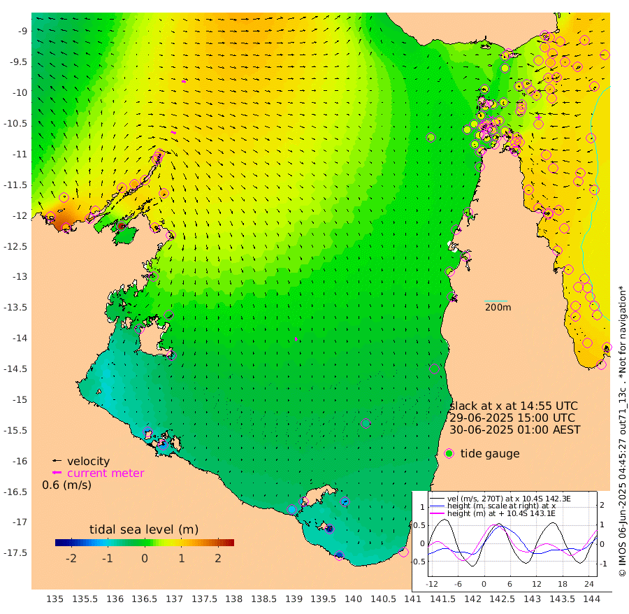 33cm/s 110T +3cm/s rms + 7cm/s -42T. ARA-GOC87 57m 25cm/s 165T +3cm/s rms + 2cm/s -2T. ARA-GOC87 60m 26cm/s 99T +2cm/s rms + 3cm/s 61T. ARA-GOC87 47m 105cm Daru 112cm Bobo Island 88cm Meer Island Barge 103cm Bramble Cay 107cm Unnamed Cay 117cm Pearce Cay 107cm Stephens Island 103cm Merrie England Shoals 107cm Mutacomal Reef 104cm Darnley Island Barge 97cm East Cay 105cm Yorke Island Barge 107cm Rennel Island 107cm Aureed Island 98cm Dungeness Reef 86cm Zagai Island 86cm Yam Island 82cm Dauan Island 78cm Saibai Island 65cm Phipi Reef 94cm Warrior Reef - West 61cm Mabuiag Island Barge 99cm Half Way Island 101cm Coconut Island 102cm Dugong Islet 92cm Poll Island 86cm Kirkcaldie Reef 78cm Suarji Island 88cm Sue Islet 85cm Hawkesbury Island 76cm Alert Patches 83cm Twin Island 72cm Badu Island 77cm St Pauls (Moa Island) 80cm Kubin (Moa Island) 71cm Ince Point 66cm Thursday Island 67cm Nardana Patches 71cm Turtle Head 71cm Round Island 70cm Goods Island 55cm Booby Island 61cm White Rocks Area 31cm Carpentaria 72cm Papou Point 81cm Bampfield Head 36cm Crab Island 59cm Red Wallis Island 76cm Packe Island 103cm Harrington Reef 78cm Herald Camp 10cm Sharp Point 59cm Red Island Point 69cm Possession Island 81cm Alpha Rock 94cm Frederick Point 113cm Wyborn Reef Light 110cm Tetley Island 88cm Triangle Reef 114cm Turtle Head Island 87cm Maclennan Cay 75cm Raine Island 103cm Mcsweeny Reef 98cm Collette Reef 84cm Shadwell Reef 105cm Hannibal Island 109cm Round Point 20cm Vrilya Point 93cm Cape Grenville 95cm Hicks Island 108cm Sir Charles Hardy Island 28cm Harvey Island 90cm Kay Reef 84cm Rocky Island 89cm Chapman Island 83cm Ham Reef 83cm Jubilee Reef 74cm Night Island 83cm Unnamed Reef No. 3 85cm Morris Island 77cm 1st 3 Mile Opening 82cm Creech Reef 90cm Fife Island 97cm Eden Reef 84cm Stanley Island 95cm Normanby River 106cm Yabooma Island 127cm Hutchison River 91cm Elcho Island 81cm North West Crocodile Island 114cm Cape Wessel 108cm Stevens Island 129cm Guluwuru Island 95cm Hopeful Bay 103cm Auster Point 106cm Two Island Bay 145cm Cadell Strait 221cm Mallison Island 107cm Melville Bay (Gove Harbour) 122cm Truant Island 74cm Cape Arnhem 21cm Cape Grey 0cm Hawk Island -64cm Milner Bay (Groote Eylandt) -71cm Cape Beatrice -128cm West Island -133cm Centre Island -113cm Mornington Island -107cm West Wellesley Islands -123cm Bountiful Island -170cm Albert River Mouth -189cm Sweers Island -164cm Karumba -64cm Nassau River Offshore -15cm Christmas Creek 12cm Archer River 30cm Boyd Point 30cm Weipa (Humbug Point) 6cm Pennefather River 30cm Cullen Point
