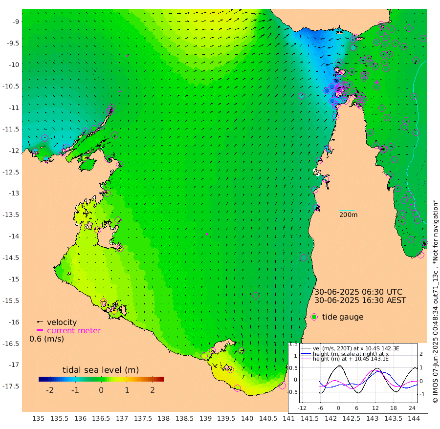16cm/s 23T +3cm/s rms + 7cm/s -42T. ARA-GOC87 57m 23cm/s 14T +3cm/s rms + 2cm/s -2T. ARA-GOC87 60m 16cm/s 32T +2cm/s rms + 3cm/s 61T. ARA-GOC87 47m -23cm Daru -15cm Bobo Island -23cm Meer Island Barge -30cm Bramble Cay -28cm Unnamed Cay -26cm Pearce Cay -21cm Stephens Island -28cm Merrie England Shoals -32cm Mutacomal Reef -16cm Darnley Island Barge -30cm East Cay -16cm Yorke Island Barge -27cm Rennel Island -13cm Aureed Island -33cm Dungeness Reef -27cm Zagai Island -46cm Yam Island -75cm Dauan Island -59cm Saibai Island -79cm Phipi Reef -43cm Warrior Reef - West -72cm Mabuiag Island Barge -23cm Half Way Island -23cm Coconut Island -26cm Dugong Islet -33cm Poll Island -37cm Kirkcaldie Reef -36cm Suarji Island -26cm Sue Islet -166cm Hawkesbury Island -56cm Alert Patches -50cm Twin Island -141cm Badu Island -49cm St Pauls (Moa Island) -123cm Kubin (Moa Island) -73cm Ince Point -86cm Thursday Island -83cm Nardana Patches -114cm Turtle Head -128cm Round Island -147cm Goods Island -150cm Booby Island -146cm White Rocks Area -82cm Carpentaria -49cm Papou Point -144cm Bampfield Head -125cm Crab Island -145cm Red Wallis Island -137cm Packe Island -17cm Harrington Reef -159cm Herald Camp -5cm Sharp Point -108cm Red Island Point -72cm Possession Island -37cm Alpha Rock -37cm Frederick Point -26cm Wyborn Reef Light -28cm Tetley Island -30cm Triangle Reef -27cm Turtle Head Island -29cm Maclennan Cay -32cm Raine Island -19cm Mcsweeny Reef -22cm Collette Reef -27cm Shadwell Reef -23cm Hannibal Island -34cm Round Point -104cm Vrilya Point -29cm Cape Grenville -30cm Hicks Island -40cm Sir Charles Hardy Island -7cm Harvey Island -32cm Kay Reef -33cm Rocky Island -39cm Chapman Island -33cm Ham Reef -30cm Jubilee Reef -25cm Night Island -33cm Unnamed Reef No. 3 -31cm Morris Island -30cm 1st 3 Mile Opening -30cm Creech Reef -20cm Fife Island -37cm Eden Reef -32cm Stanley Island -32cm Normanby River -101cm Yabooma Island -103cm Hutchison River -82cm Elcho Island -87cm North West Crocodile Island -17cm Cape Wessel -60cm Stevens Island 2cm Guluwuru Island -61cm Hopeful Bay -35cm Auster Point -38cm Two Island Bay -63cm Cadell Strait 52cm Mallison Island -3cm Melville Bay (Gove Harbour) 0cm Truant Island 14cm Cape Arnhem 30cm Cape Grey 28cm Hawk Island 62cm Milner Bay (Groote Eylandt) 54cm Cape Beatrice 84cm West Island 82cm Centre Island 42cm Mornington Island 46cm West Wellesley Islands 23cm Bountiful Island 39cm Albert River Mouth 72cm Sweers Island 23cm Karumba -21cm Nassau River Offshore -57cm Christmas Creek -80cm Archer River -77cm Boyd Point -100cm Weipa (Humbug Point) -70cm Pennefather River -103cm Cullen Point
