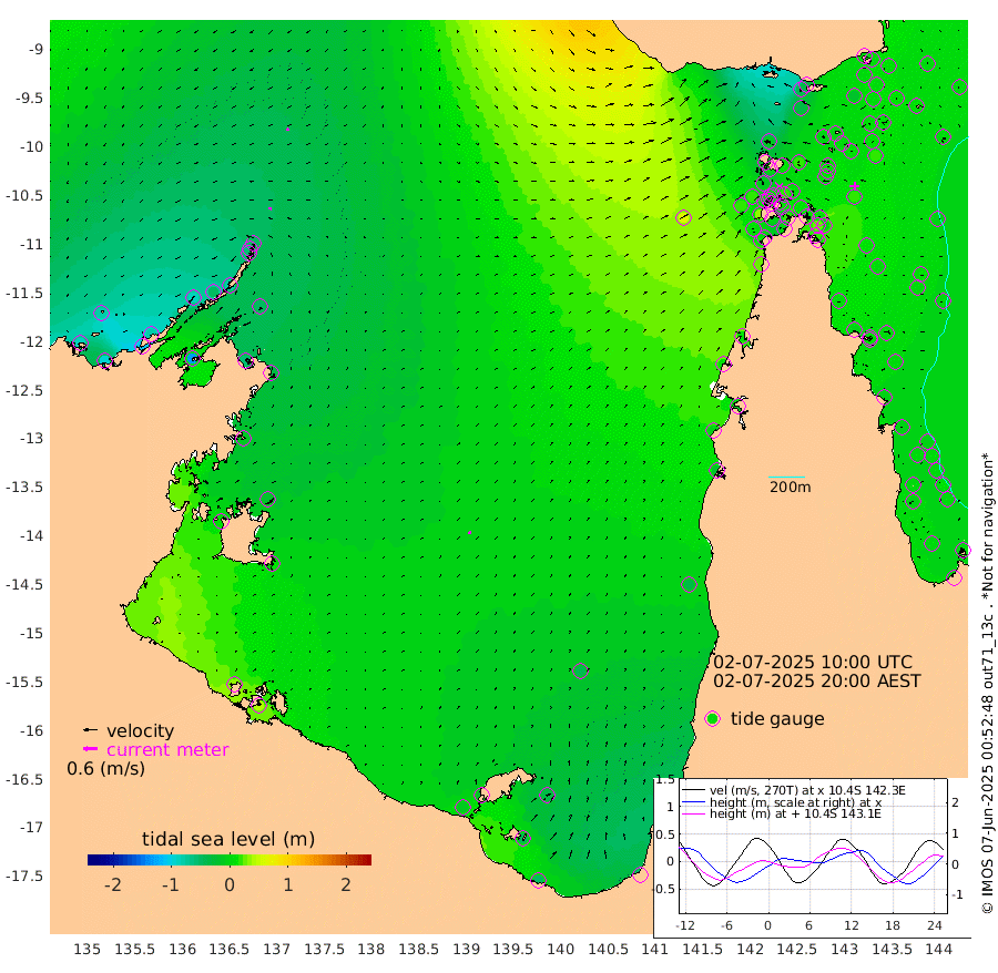 11cm/s -76T +3cm/s rms + 7cm/s -42T. ARA-GOC87 57m 15cm/s 26T +3cm/s rms + 2cm/s -2T. ARA-GOC87 60m 9cm/s -113T +2cm/s rms + 3cm/s 61T. ARA-GOC87 47m 1cm Daru 6cm Bobo Island 4cm Meer Island Barge 0cm Bramble Cay 7cm Unnamed Cay 4cm Pearce Cay 10cm Stephens Island 8cm Merrie England Shoals 4cm Mutacomal Reef 8cm Darnley Island Barge 2cm East Cay 8cm Yorke Island Barge 10cm Rennel Island 11cm Aureed Island 7cm Dungeness Reef -2cm Zagai Island -2cm Yam Island -42cm Dauan Island -33cm Saibai Island -36cm Phipi Reef -19cm Warrior Reef - West -9cm Mabuiag Island Barge 15cm Half Way Island 13cm Coconut Island 16cm Dugong Islet 8cm Poll Island 13cm Kirkcaldie Reef 19cm Suarji Island 8cm Sue Islet -10cm Hawkesbury Island 16cm Alert Patches 15cm Twin Island -11cm Badu Island 11cm St Pauls (Moa Island) -2cm Kubin (Moa Island) 10cm Ince Point 12cm Thursday Island 11cm Nardana Patches 4cm Turtle Head 3cm Round Island 6cm Goods Island 20cm Booby Island 21cm White Rocks Area 60cm Carpentaria 14cm Papou Point 34cm Bampfield Head 13cm Crab Island 14cm Red Wallis Island -2cm Packe Island 25cm Harrington Reef 0cm Herald Camp 3cm Sharp Point 2cm Red Island Point 17cm Possession Island 12cm Alpha Rock 14cm Frederick Point 7cm Wyborn Reef Light 6cm Tetley Island -1cm Triangle Reef 20cm Turtle Head Island 8cm Maclennan Cay 0cm Raine Island 8cm Mcsweeny Reef 5cm Collette Reef 0cm Shadwell Reef 7cm Hannibal Island -1cm Round Point 24cm Vrilya Point 8cm Cape Grenville 4cm Hicks Island 1cm Sir Charles Hardy Island 3cm Harvey Island 5cm Kay Reef 0cm Rocky Island -7cm Chapman Island -1cm Ham Reef 2cm Jubilee Reef 2cm Night Island 0cm Unnamed Reef No. 3 4cm Morris Island 10cm 1st 3 Mile Opening 6cm Creech Reef -7cm Fife Island 1cm Eden Reef 5cm Stanley Island 3cm Normanby River -89cm Yabooma Island -92cm Hutchison River -78cm Elcho Island -80cm North West Crocodile Island -49cm Cape Wessel -84cm Stevens Island -50cm Guluwuru Island -80cm Hopeful Bay -55cm Auster Point -63cm Two Island Bay -107cm Cadell Strait -133cm Mallison Island -53cm Melville Bay (Gove Harbour) -51cm Truant Island -32cm Cape Arnhem -12cm Cape Grey -16cm Hawk Island 11cm Milner Bay (Groote Eylandt) 10cm Cape Beatrice 36cm West Island 42cm Centre Island -15cm Mornington Island -10cm West Wellesley Islands -36cm Bountiful Island -47cm Albert River Mouth -44cm Sweers Island -55cm Karumba -40cm Nassau River Offshore -35cm Christmas Creek -18cm Archer River -1cm Boyd Point -12cm Weipa (Humbug Point) 10cm Pennefather River 10cm Cullen Point