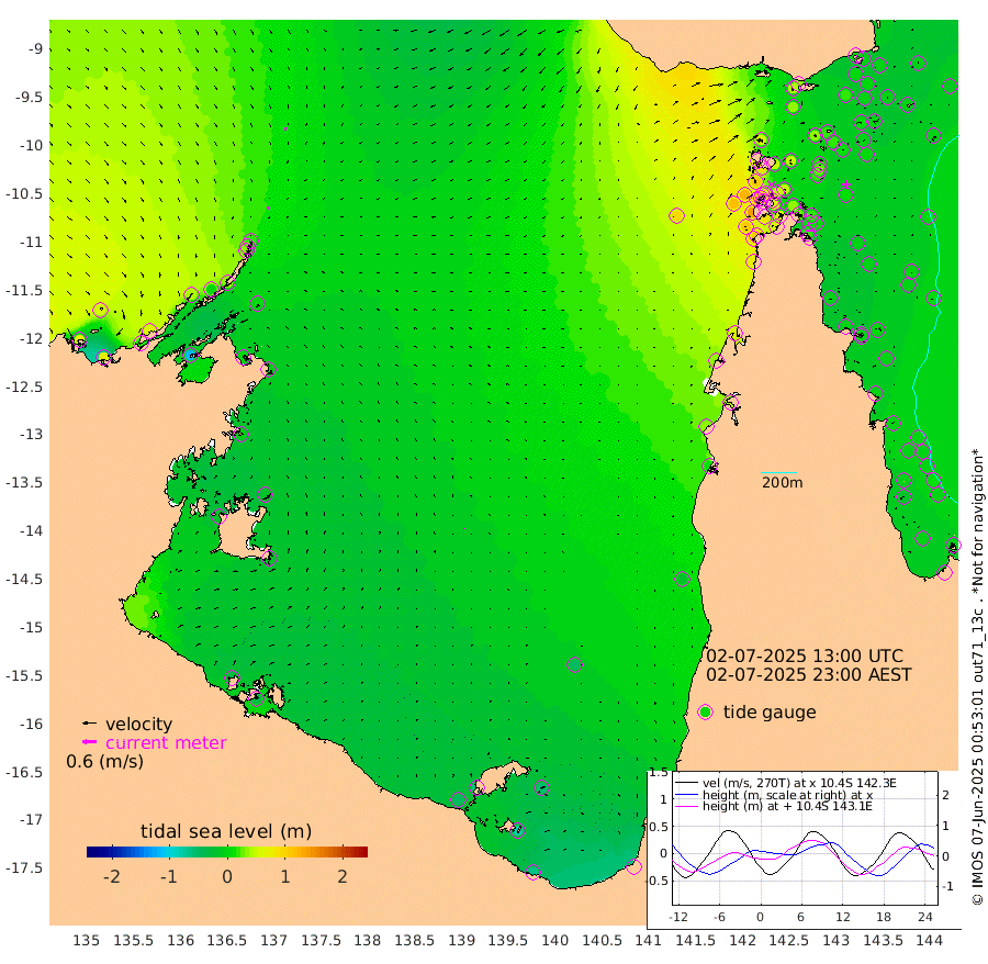 9cm/s -146T +3cm/s rms + 7cm/s -42T. ARA-GOC87 57m 6cm/s 6T +3cm/s rms + 2cm/s -2T. ARA-GOC87 60m 10cm/s -168T +2cm/s rms + 3cm/s 61T. ARA-GOC87 47m 1cm Daru -7cm Bobo Island -4cm Meer Island Barge -5cm Bramble Cay 6cm Unnamed Cay -3cm Pearce Cay -3cm Stephens Island -1cm Merrie England Shoals 7cm Mutacomal Reef -7cm Darnley Island Barge -8cm East Cay -2cm Yorke Island Barge 8cm Rennel Island -3cm Aureed Island 16cm Dungeness Reef 21cm Zagai Island 31cm Yam Island 42cm Dauan Island 31cm Saibai Island 33cm Phipi Reef 17cm Warrior Reef - West 59cm Mabuiag Island Barge 6cm Half Way Island 11cm Coconut Island 14cm Dugong Islet 24cm Poll Island 22cm Kirkcaldie Reef 46cm Suarji Island 19cm Sue Islet 107cm Hawkesbury Island 52cm Alert Patches 45cm Twin Island 98cm Badu Island 49cm St Pauls (Moa Island) 89cm Kubin (Moa Island) 62cm Ince Point 73cm Thursday Island 71cm Nardana Patches 86cm Turtle Head 98cm Round Island 108cm Goods Island 119cm Booby Island 121cm White Rocks Area 96cm Carpentaria 46cm Papou Point 137cm Bampfield Head 89cm Crab Island 107cm Red Wallis Island 88cm Packe Island 12cm Harrington Reef 109cm Herald Camp 6cm Sharp Point 64cm Red Island Point 64cm Possession Island 37cm Alpha Rock 28cm Frederick Point 13cm Wyborn Reef Light 16cm Tetley Island 0cm Triangle Reef 19cm Turtle Head Island 2cm Maclennan Cay 0cm Raine Island 0cm Mcsweeny Reef -3cm Collette Reef -2cm Shadwell Reef -5cm Hannibal Island -5cm Round Point 75cm Vrilya Point -2cm Cape Grenville -2cm Hicks Island 4cm Sir Charles Hardy Island -2cm Harvey Island -4cm Kay Reef -3cm Rocky Island -4cm Chapman Island -4cm Ham Reef -2cm Jubilee Reef -5cm Night Island -6cm Unnamed Reef No. 3 -3cm Morris Island 10cm 1st 3 Mile Opening -1cm Creech Reef -18cm Fife Island -5cm Eden Reef -2cm Stanley Island -7cm Normanby River 72cm Yabooma Island 73cm Hutchison River 61cm Elcho Island 58cm North West Crocodile Island 21cm Cape Wessel 40cm Stevens Island 0cm Guluwuru Island 34cm Hopeful Bay 35cm Auster Point 28cm Two Island Bay 16cm Cadell Strait -119cm Mallison Island 2cm Melville Bay (Gove Harbour) 6cm Truant Island -5cm Cape Arnhem -6cm Cape Grey -17cm Hawk Island -17cm Milner Bay (Groote Eylandt) -22cm Cape Beatrice -33cm West Island -31cm Centre Island -61cm Mornington Island -51cm West Wellesley Islands -53cm Bountiful Island -62cm Albert River Mouth -81cm Sweers Island -73cm Karumba -49cm Nassau River Offshore -22cm Christmas Creek 14cm Archer River 35cm Boyd Point 44cm Weipa (Humbug Point) 35cm Pennefather River 67cm Cullen Point