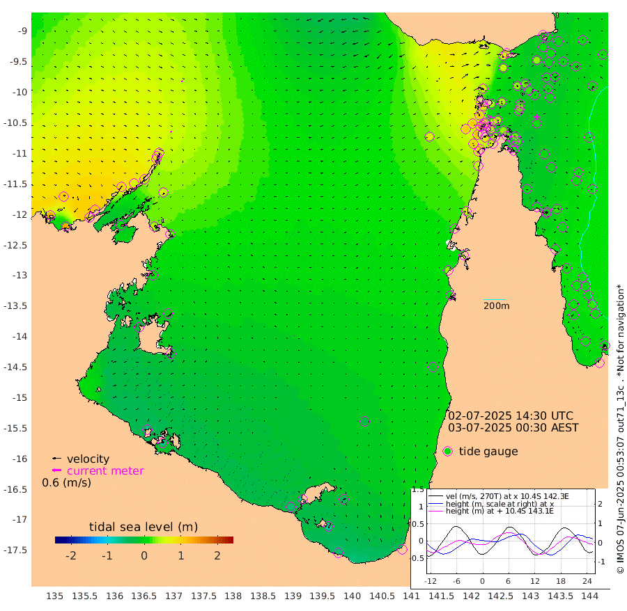 9cm/s 144T +3cm/s rms + 7cm/s -42T. ARA-GOC87 57m 3cm/s -156T +3cm/s rms + 2cm/s -2T. ARA-GOC87 60m 9cm/s 137T +2cm/s rms + 3cm/s 61T. ARA-GOC87 47m 11cm Daru 2cm Bobo Island 6cm Meer Island Barge 8cm Bramble Cay 13cm Unnamed Cay 4cm Pearce Cay 4cm Stephens Island 6cm Merrie England Shoals 15cm Mutacomal Reef 2cm Darnley Island Barge 5cm East Cay 6cm Yorke Island Barge 13cm Rennel Island 3cm Aureed Island 18cm Dungeness Reef 30cm Zagai Island 36cm Yam Island 68cm Dauan Island 55cm Saibai Island 49cm Phipi Reef 34cm Warrior Reef - West 64cm Mabuiag Island Barge 6cm Half Way Island 13cm Coconut Island 13cm Dugong Islet 25cm Poll Island 18cm Kirkcaldie Reef 40cm Suarji Island 22cm Sue Islet 102cm Hawkesbury Island 43cm Alert Patches 38cm Twin Island 96cm Badu Island 44cm St Pauls (Moa Island) 84cm Kubin (Moa Island) 55cm Ince Point 62cm Thursday Island 62cm Nardana Patches 78cm Turtle Head 90cm Round Island 97cm Goods Island 98cm Booby Island 102cm White Rocks Area 62cm Carpentaria 39cm Papou Point 118cm Bampfield Head 71cm Crab Island 90cm Red Wallis Island 82cm Packe Island 6cm Harrington Reef 102cm Herald Camp 3cm Sharp Point 55cm Red Island Point 52cm Possession Island 36cm Alpha Rock 25cm Frederick Point 20cm Wyborn Reef Light 23cm Tetley Island 12cm Triangle Reef 16cm Turtle Head Island 10cm Maclennan Cay 12cm Raine Island 7cm Mcsweeny Reef 6cm Collette Reef 10cm Shadwell Reef 4cm Hannibal Island 8cm Round Point 50cm Vrilya Point 5cm Cape Grenville 8cm Hicks Island 20cm Sir Charles Hardy Island 1cm Harvey Island 6cm Kay Reef 10cm Rocky Island 13cm Chapman Island 10cm Ham Reef 10cm Jubilee Reef 4cm Night Island 7cm Unnamed Reef No. 3 8cm Morris Island 17cm 1st 3 Mile Opening 8cm Creech Reef 1cm Fife Island 9cm Eden Reef 7cm Stanley Island 5cm Normanby River 124cm Yabooma Island 132cm Hutchison River 109cm Elcho Island 102cm North West Crocodile Island 67cm Cape Wessel 96cm Stevens Island 55cm Guluwuru Island 86cm Hopeful Bay 78cm Auster Point 74cm Two Island Bay 87cm Cadell Strait 13cm Mallison Island 52cm Melville Bay (Gove Harbour) 58cm Truant Island 30cm Cape Arnhem 10cm Cape Grey -4cm Hawk Island -25cm Milner Bay (Groote Eylandt) -32cm Cape Beatrice -64cm West Island -67cm Centre Island -68cm Mornington Island -58cm West Wellesley Islands -50cm Bountiful Island -60cm Albert River Mouth -82cm Sweers Island -70cm Karumba -44cm Nassau River Offshore -14cm Christmas Creek 15cm Archer River 33cm Boyd Point 44cm Weipa (Humbug Point) 18cm Pennefather River 53cm Cullen Point