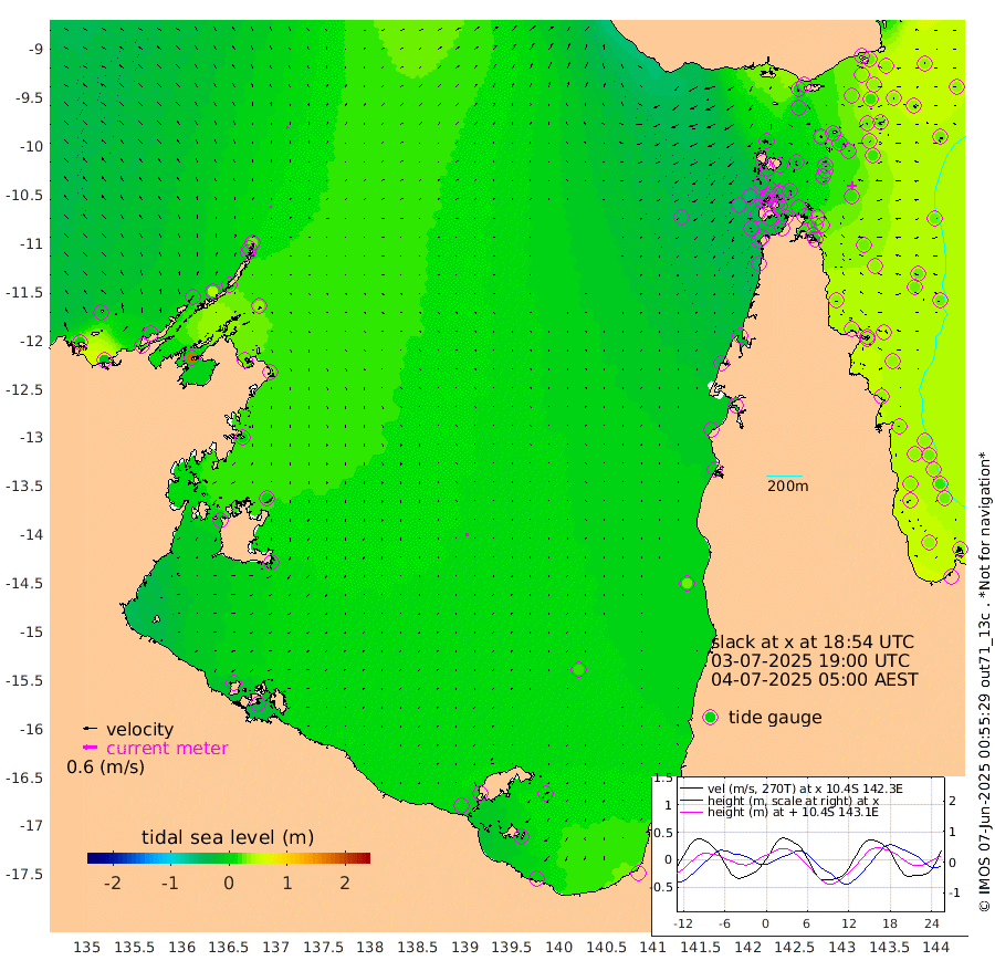 7cm/s -10T +3cm/s rms + 7cm/s -42T. ARA-GOC87 57m 13cm/s -178T +3cm/s rms + 2cm/s -2T. ARA-GOC87 60m 9cm/s -27T +2cm/s rms + 3cm/s 61T. ARA-GOC87 47m 29cm Daru 28cm Bobo Island 30cm Meer Island Barge 35cm Bramble Cay 31cm Unnamed Cay 20cm Pearce Cay 30cm Stephens Island 31cm Merrie England Shoals 30cm Mutacomal Reef 32cm Darnley Island Barge 37cm East Cay 27cm Yorke Island Barge 24cm Rennel Island 24cm Aureed Island 12cm Dungeness Reef 14cm Zagai Island 16cm Yam Island 12cm Dauan Island 20cm Saibai Island -1cm Phipi Reef 23cm Warrior Reef - West -12cm Mabuiag Island Barge 19cm Half Way Island 16cm Coconut Island 18cm Dugong Islet 8cm Poll Island 9cm Kirkcaldie Reef -8cm Suarji Island 12cm Sue Islet -33cm Hawkesbury Island -17cm Alert Patches -8cm Twin Island -36cm Badu Island -11cm St Pauls (Moa Island) -21cm Kubin (Moa Island) -17cm Ince Point -25cm Thursday Island -22cm Nardana Patches -27cm Turtle Head -24cm Round Island -38cm Goods Island -49cm Booby Island -47cm White Rocks Area -40cm Carpentaria -9cm Papou Point -39cm Bampfield Head -41cm Crab Island -37cm Red Wallis Island -18cm Packe Island 13cm Harrington Reef -14cm Herald Camp -1cm Sharp Point -25cm Red Island Point -22cm Possession Island 8cm Alpha Rock 5cm Frederick Point 25cm Wyborn Reef Light 23cm Tetley Island 28cm Triangle Reef 3cm Turtle Head Island 29cm Maclennan Cay 27cm Raine Island 28cm Mcsweeny Reef 30cm Collette Reef 30cm Shadwell Reef 33cm Hannibal Island 35cm Round Point -47cm Vrilya Point 33cm Cape Grenville 33cm Hicks Island 46cm Sir Charles Hardy Island 10cm Harvey Island 37cm Kay Reef 34cm Rocky Island 35cm Chapman Island 35cm Ham Reef 32cm Jubilee Reef 29cm Night Island 35cm Unnamed Reef No. 3 32cm Morris Island 21cm 1st 3 Mile Opening 29cm Creech Reef 41cm Fife Island 37cm Eden Reef 33cm Stanley Island 38cm Normanby River -7cm Yabooma Island -8cm Hutchison River -10cm Elcho Island -11cm North West Crocodile Island 23cm Cape Wessel 7cm Stevens Island 41cm Guluwuru Island 10cm Hopeful Bay 3cm Auster Point 13cm Two Island Bay 18cm Cadell Strait 173cm Mallison Island 29cm Melville Bay (Gove Harbour) 31cm Truant Island 23cm Cape Arnhem 4cm Cape Grey 5cm Hawk Island -13cm Milner Bay (Groote Eylandt) -9cm Cape Beatrice -20cm West Island -25cm Centre Island 8cm Mornington Island 5cm West Wellesley Islands 11cm Bountiful Island 1cm Albert River Mouth -15cm Sweers Island 2cm Karumba 19cm Nassau River Offshore 23cm Christmas Creek -1cm Archer River -4cm Boyd Point -5cm Weipa (Humbug Point) -35cm Pennefather River -22cm Cullen Point