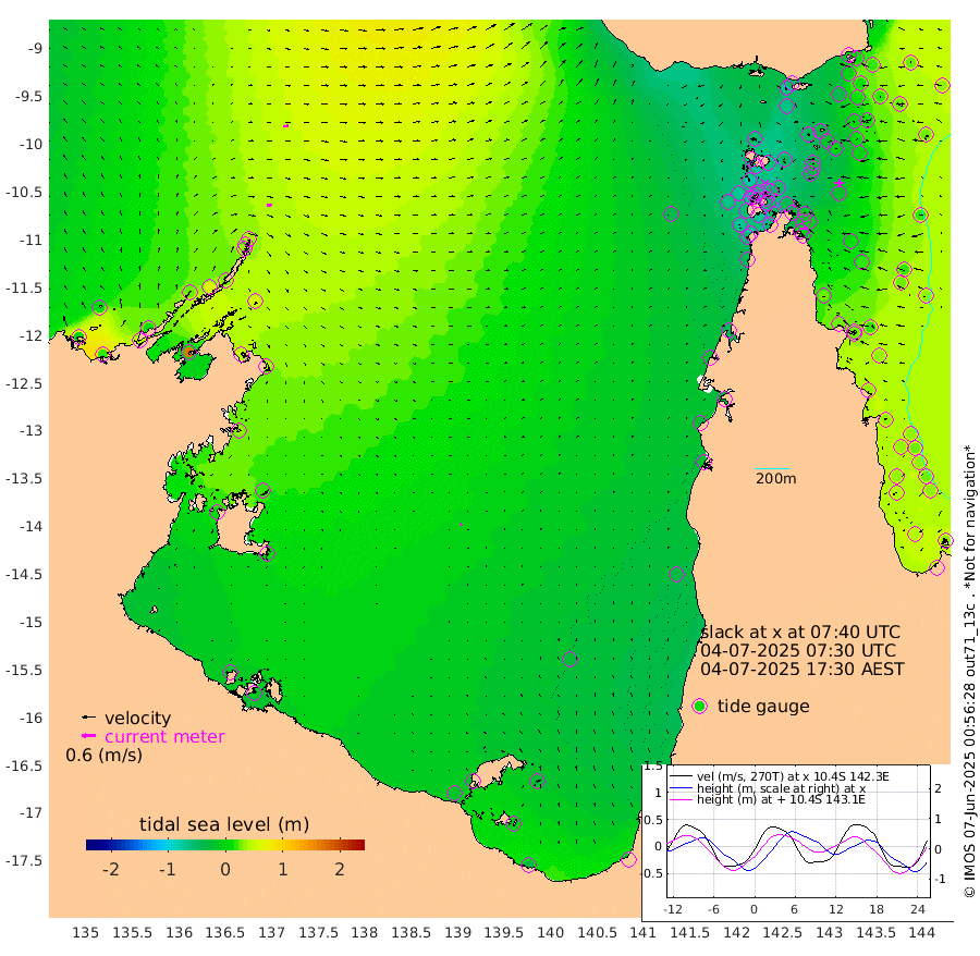 21cm/s 94T +3cm/s rms + 7cm/s -42T. ARA-GOC87 57m 5cm/s 62T +3cm/s rms + 2cm/s -2T. ARA-GOC87 60m 20cm/s 86T +2cm/s rms + 3cm/s 61T. ARA-GOC87 47m -2cm Daru 11cm Bobo Island 30cm Meer Island Barge 27cm Bramble Cay 11cm Unnamed Cay 13cm Pearce Cay 17cm Stephens Island 18cm Merrie England Shoals -4cm Mutacomal Reef 24cm Darnley Island Barge 31cm East Cay 11cm Yorke Island Barge 0cm Rennel Island 7cm Aureed Island -19cm Dungeness Reef -33cm Zagai Island -52cm Yam Island -70cm Dauan Island -51cm Saibai Island -62cm Phipi Reef -43cm Warrior Reef - West -59cm Mabuiag Island Barge -4cm Half Way Island -5cm Coconut Island -16cm Dugong Islet -32cm Poll Island -32cm Kirkcaldie Reef -50cm Suarji Island -24cm Sue Islet -77cm Hawkesbury Island -46cm Alert Patches -48cm Twin Island -65cm Badu Island -59cm St Pauls (Moa Island) -74cm Kubin (Moa Island) -59cm Ince Point -63cm Thursday Island -63cm Nardana Patches -66cm Turtle Head -70cm Round Island -68cm Goods Island -67cm Booby Island -71cm White Rocks Area -38cm Carpentaria -49cm Papou Point -59cm Bampfield Head -53cm Crab Island -71cm Red Wallis Island -74cm Packe Island -10cm Harrington Reef -89cm Herald Camp -19cm Sharp Point -53cm Red Island Point -51cm Possession Island -38cm Alpha Rock -29cm Frederick Point -2cm Wyborn Reef Light -9cm Tetley Island 19cm Triangle Reef -2cm Turtle Head Island 19cm Maclennan Cay 31cm Raine Island 15cm Mcsweeny Reef 22cm Collette Reef 28cm Shadwell Reef 27cm Hannibal Island 29cm Round Point -41cm Vrilya Point 25cm Cape Grenville 24cm Hicks Island 21cm Sir Charles Hardy Island 6cm Harvey Island 36cm Kay Reef 32cm Rocky Island 37cm Chapman Island 35cm Ham Reef 33cm Jubilee Reef 26cm Night Island 36cm Unnamed Reef No. 3 34cm Morris Island 28cm 1st 3 Mile Opening 32cm Creech Reef 38cm Fife Island 43cm Eden Reef 34cm Stanley Island 36cm Normanby River -4cm Yabooma Island 17cm Hutchison River 14cm Elcho Island 3cm North West Crocodile Island 39cm Cape Wessel 28cm Stevens Island 63cm Guluwuru Island 28cm Hopeful Bay 31cm Auster Point 21cm Two Island Bay 40cm Cadell Strait 167cm Mallison Island 51cm Melville Bay (Gove Harbour) 55cm Truant Island 42cm Cape Arnhem 32cm Cape Grey 22cm Hawk Island 7cm Milner Bay (Groote Eylandt) 0cm Cape Beatrice -16cm West Island -14cm Centre Island -15cm Mornington Island -20cm West Wellesley Islands -30cm Bountiful Island -32cm Albert River Mouth -10cm Sweers Island -35cm Karumba -30cm Nassau River Offshore -30cm Christmas Creek -18cm Archer River -24cm Boyd Point -33cm Weipa (Humbug Point) -16cm Pennefather River -47cm Cullen Point