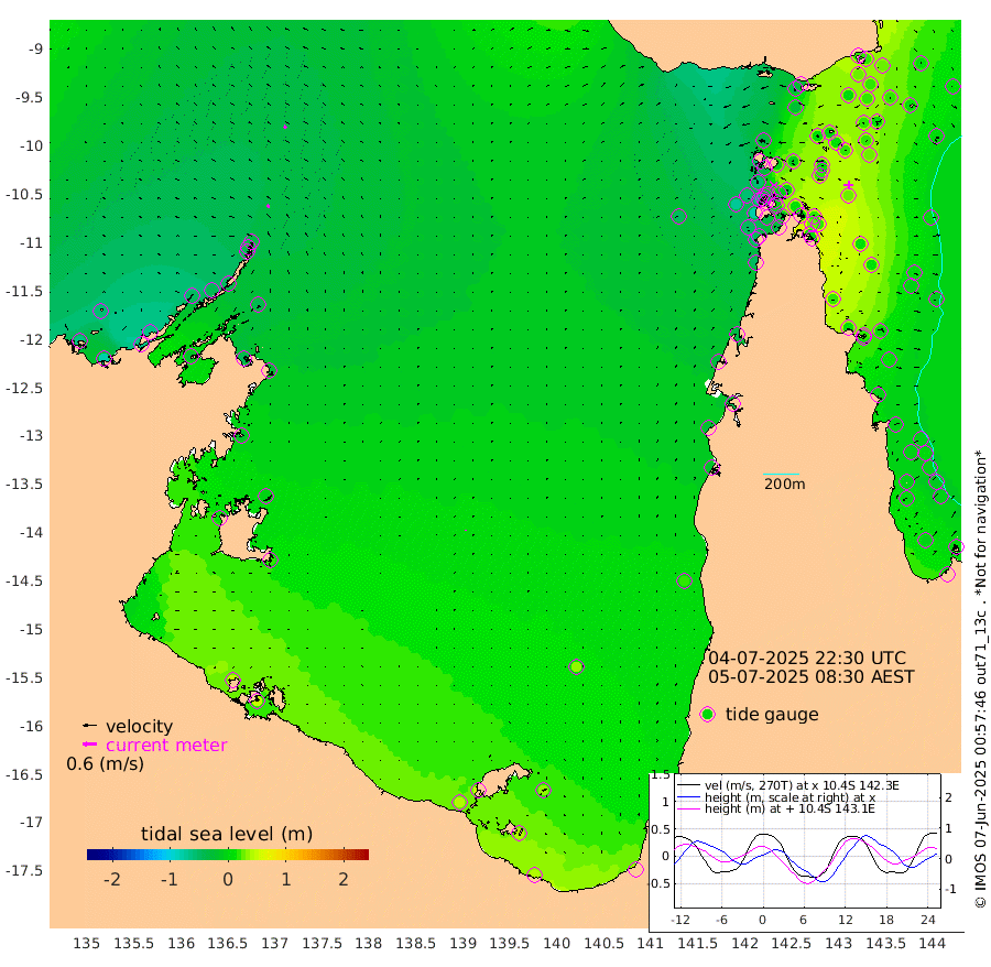 14cm/s -52T +3cm/s rms + 7cm/s -42T. ARA-GOC87 57m 2cm/s -30T +3cm/s rms + 2cm/s -2T. ARA-GOC87 60m 13cm/s -57T +2cm/s rms + 3cm/s 61T. ARA-GOC87 47m 17cm Daru 22cm Bobo Island 2cm Meer Island Barge 13cm Bramble Cay 18cm Unnamed Cay 18cm Pearce Cay 18cm Stephens Island 24cm Merrie England Shoals 27cm Mutacomal Reef 13cm Darnley Island Barge 8cm East Cay 15cm Yorke Island Barge 17cm Rennel Island 20cm Aureed Island 12cm Dungeness Reef 1cm Zagai Island 9cm Yam Island -35cm Dauan Island -27cm Saibai Island -27cm Phipi Reef 1cm Warrior Reef - West -34cm Mabuiag Island Barge 24cm Half Way Island 15cm Coconut Island 23cm Dugong Islet 13cm Poll Island 15cm Kirkcaldie Reef -2cm Suarji Island 6cm Sue Islet -58cm Hawkesbury Island -12cm Alert Patches 0cm Twin Island -67cm Badu Island -6cm St Pauls (Moa Island) -37cm Kubin (Moa Island) -18cm Ince Point -26cm Thursday Island -25cm Nardana Patches -43cm Turtle Head -45cm Round Island -61cm Goods Island -68cm Booby Island -59cm White Rocks Area -45cm Carpentaria -5cm Papou Point -78cm Bampfield Head -55cm Crab Island -50cm Red Wallis Island -30cm Packe Island 26cm Harrington Reef -45cm Herald Camp 6cm Sharp Point -32cm Red Island Point -21cm Possession Island 8cm Alpha Rock 10cm Frederick Point 18cm Wyborn Reef Light 17cm Tetley Island 3cm Triangle Reef 7cm Turtle Head Island 5cm Maclennan Cay -9cm Raine Island 14cm Mcsweeny Reef 11cm Collette Reef -1cm Shadwell Reef 16cm Hannibal Island 14cm Round Point -47cm Vrilya Point 16cm Cape Grenville 7cm Hicks Island 5cm Sir Charles Hardy Island 4cm Harvey Island 9cm Kay Reef -1cm Rocky Island -4cm Chapman Island -4cm Ham Reef -4cm Jubilee Reef 5cm Night Island 0cm Unnamed Reef No. 3 -1cm Morris Island -13cm 1st 3 Mile Opening -2cm Creech Reef 2cm Fife Island -1cm Eden Reef 2cm Stanley Island 10cm Normanby River -66cm Yabooma Island -79cm Hutchison River -63cm Elcho Island -54cm North West Crocodile Island -34cm Cape Wessel -52cm Stevens Island -43cm Guluwuru Island -47cm Hopeful Bay -49cm Auster Point -37cm Two Island Bay -61cm Cadell Strait -16cm Mallison Island -41cm Melville Bay (Gove Harbour) -45cm Truant Island -28cm Cape Arnhem -22cm Cape Grey -2cm Hawk Island 14cm Milner Bay (Groote Eylandt) 22cm Cape Beatrice 47cm West Island 49cm Centre Island 47cm Mornington Island 44cm West Wellesley Islands 36cm Bountiful Island 45cm Albert River Mouth 42cm Sweers Island 48cm Karumba 37cm Nassau River Offshore 15cm Christmas Creek -19cm Archer River -29cm Boyd Point -35cm Weipa (Humbug Point) -33cm Pennefather River -35cm Cullen Point
