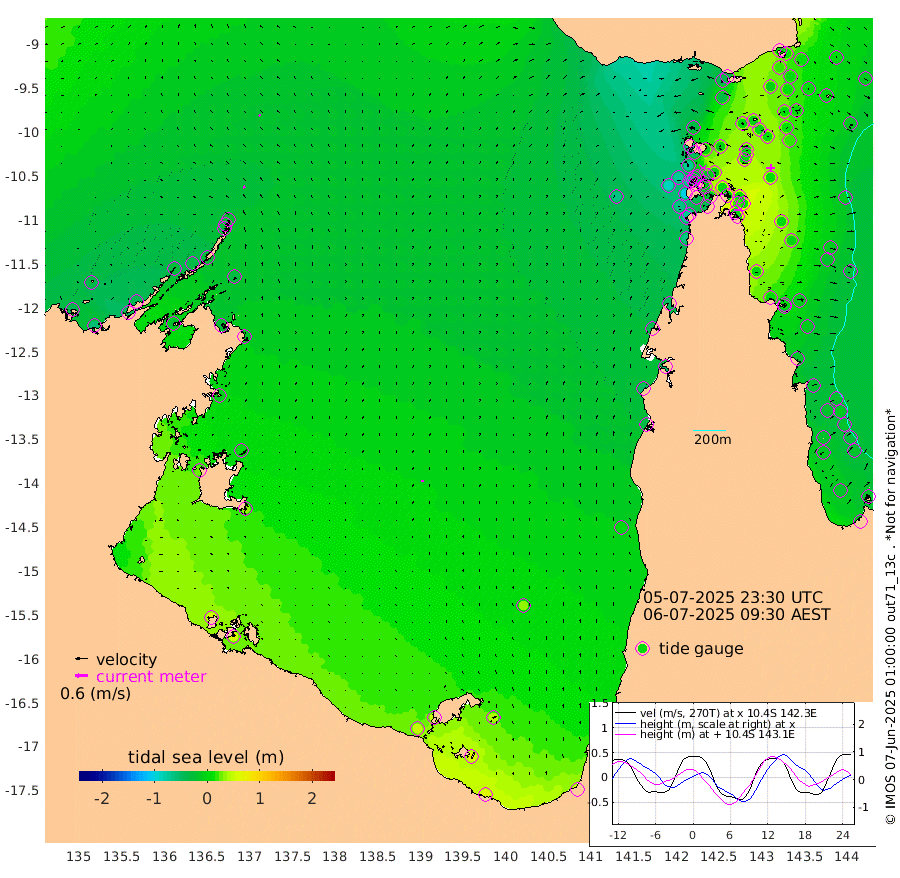 11cm/s -32T +3cm/s rms + 7cm/s -42T. ARA-GOC87 57m 9cm/s -9T +3cm/s rms + 2cm/s -2T. ARA-GOC87 60m 9cm/s -28T +2cm/s rms + 3cm/s 61T. ARA-GOC87 47m 9cm Daru 15cm Bobo Island -13cm Meer Island Barge 0cm Bramble Cay 7cm Unnamed Cay 11cm Pearce Cay 6cm Stephens Island 13cm Merrie England Shoals 20cm Mutacomal Reef 0cm Darnley Island Barge -8cm East Cay 5cm Yorke Island Barge 8cm Rennel Island 13cm Aureed Island 6cm Dungeness Reef 0cm Zagai Island 5cm Yam Island -38cm Dauan Island -31cm Saibai Island -32cm Phipi Reef -3cm Warrior Reef - West -36cm Mabuiag Island Barge 16cm Half Way Island 10cm Coconut Island 15cm Dugong Islet 10cm Poll Island 8cm Kirkcaldie Reef -2cm Suarji Island 1cm Sue Islet -74cm Hawkesbury Island -15cm Alert Patches -3cm Twin Island -75cm Badu Island -7cm St Pauls (Moa Island) -48cm Kubin (Moa Island) -22cm Ince Point -32cm Thursday Island -30cm Nardana Patches -52cm Turtle Head -60cm Round Island -74cm Goods Island -84cm Booby Island -69cm White Rocks Area -61cm Carpentaria -8cm Papou Point -99cm Bampfield Head -70cm Crab Island -64cm Red Wallis Island -44cm Packe Island 20cm Harrington Reef -70cm Herald Camp 6cm Sharp Point -43cm Red Island Point -29cm Possession Island 6cm Alpha Rock 6cm Frederick Point 12cm Wyborn Reef Light 12cm Tetley Island -8cm Triangle Reef 0cm Turtle Head Island -10cm Maclennan Cay -24cm Raine Island 4cm Mcsweeny Reef 0cm Collette Reef -15cm Shadwell Reef 4cm Hannibal Island 1cm Round Point -61cm Vrilya Point 0cm Cape Grenville -9cm Hicks Island -14cm Sir Charles Hardy Island -1cm Harvey Island -8cm Kay Reef -18cm Rocky Island -19cm Chapman Island -21cm Ham Reef -20cm Jubilee Reef -10cm Night Island -17cm Unnamed Reef No. 3 -17cm Morris Island -29cm 1st 3 Mile Opening -19cm Creech Reef -13cm Fife Island -19cm Eden Reef -16cm Stanley Island -8cm Normanby River -44cm Yabooma Island -55cm Hutchison River -40cm Elcho Island -32cm North West Crocodile Island -19cm Cape Wessel -29cm Stevens Island -34cm Guluwuru Island -29cm Hopeful Bay -31cm Auster Point -23cm Two Island Bay -41cm Cadell Strait -20cm Mallison Island -30cm Melville Bay (Gove Harbour) -33cm Truant Island -20cm Cape Arnhem -13cm Cape Grey 7cm Hawk Island 29cm Milner Bay (Groote Eylandt) 33cm Cape Beatrice 58cm West Island 60cm Centre Island 50cm Mornington Island 50cm West Wellesley Islands 41cm Bountiful Island 63cm Albert River Mouth 63cm Sweers Island 58cm Karumba 31cm Nassau River Offshore 0cm Christmas Creek -35cm Archer River -46cm Boyd Point -53cm Weipa (Humbug Point) -44cm Pennefather River -52cm Cullen Point