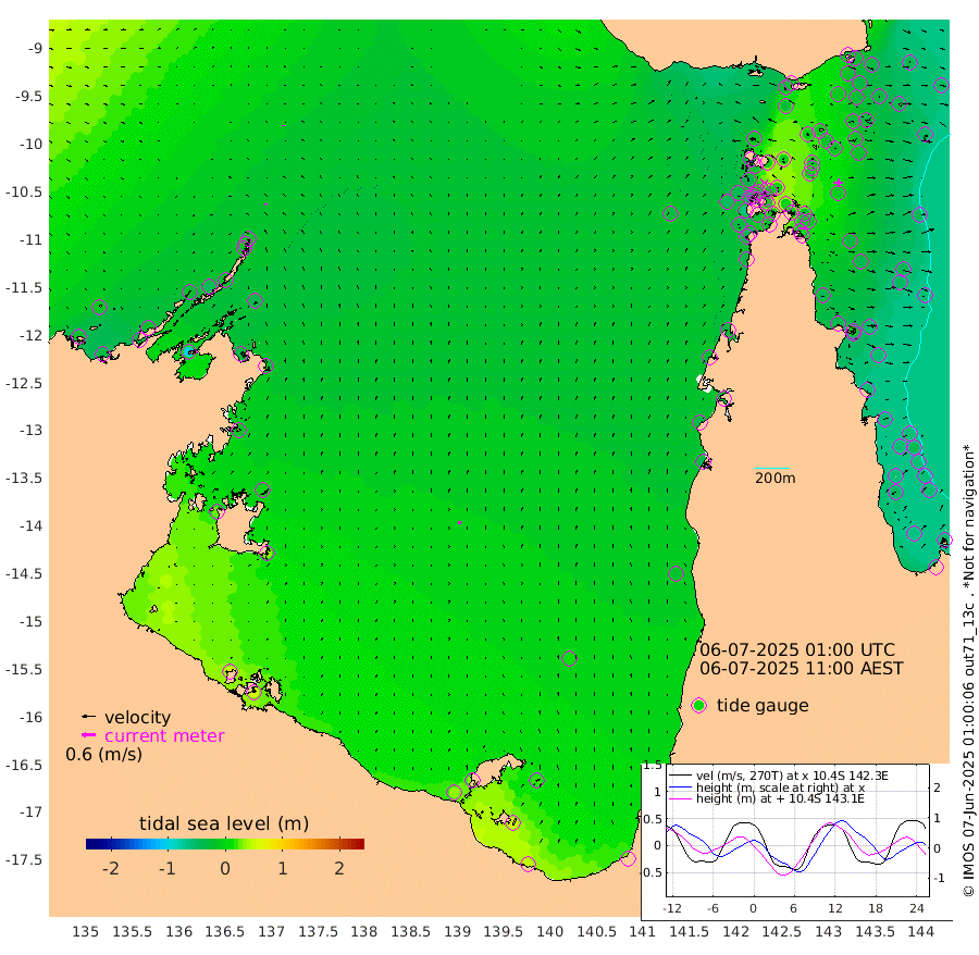 6cm/s -35T +3cm/s rms + 7cm/s -42T. ARA-GOC87 57m 14cm/s -2T +3cm/s rms + 2cm/s -2T. ARA-GOC87 60m 4cm/s -13T +2cm/s rms + 3cm/s 61T. ARA-GOC87 47m -25cm Daru -23cm Bobo Island -47cm Meer Island Barge -43cm Bramble Cay -35cm Unnamed Cay -23cm Pearce Cay -34cm Stephens Island -34cm Merrie England Shoals -21cm Mutacomal Reef -40cm Darnley Island Barge -50cm East Cay -30cm Yorke Island Barge -26cm Rennel Island -20cm Aureed Island -16cm Dungeness Reef -10cm Zagai Island -6cm Yam Island -23cm Dauan Island -27cm Saibai Island -23cm Phipi Reef -14cm Warrior Reef - West -19cm Mabuiag Island Barge -16cm Half Way Island -18cm Coconut Island -13cm Dugong Islet -4cm Poll Island -12cm Kirkcaldie Reef -4cm Suarji Island -15cm Sue Islet -44cm Hawkesbury Island -13cm Alert Patches -4cm Twin Island -46cm Badu Island 0cm St Pauls (Moa Island) -26cm Kubin (Moa Island) -11cm Ince Point -15cm Thursday Island -14cm Nardana Patches -32cm Turtle Head -37cm Round Island -46cm Goods Island -48cm Booby Island -39cm White Rocks Area -36cm Carpentaria -5cm Papou Point -67cm Bampfield Head -39cm Crab Island -34cm Red Wallis Island -25cm Packe Island -10cm Harrington Reef -45cm Herald Camp 6cm Sharp Point -29cm Red Island Point -17cm Possession Island -4cm Alpha Rock -9cm Frederick Point -21cm Wyborn Reef Light -17cm Tetley Island -38cm Triangle Reef -21cm Turtle Head Island -43cm Maclennan Cay -54cm Raine Island -32cm Mcsweeny Reef -40cm Collette Reef -50cm Shadwell Reef -41cm Hannibal Island -43cm Round Point -30cm Vrilya Point -43cm Cape Grenville -47cm Hicks Island -58cm Sir Charles Hardy Island -13cm Harvey Island -54cm Kay Reef -55cm Rocky Island -57cm Chapman Island -57cm Ham Reef -55cm Jubilee Reef -41cm Night Island -54cm Unnamed Reef No. 3 -55cm Morris Island -58cm 1st 3 Mile Opening -54cm Creech Reef -49cm Fife Island -63cm Eden Reef -56cm Stanley Island -52cm Normanby River -20cm Yabooma Island -37cm Hutchison River -22cm Elcho Island -13cm North West Crocodile Island -19cm Cape Wessel -18cm Stevens Island -49cm Guluwuru Island -22cm Hopeful Bay -20cm Auster Point -11cm Two Island Bay -31cm Cadell Strait -102cm Mallison Island -36cm Melville Bay (Gove Harbour) -38cm Truant Island -25cm Cape Arnhem -16cm Cape Grey 2cm Hawk Island 30cm Milner Bay (Groote Eylandt) 30cm Cape Beatrice 56cm West Island 58cm Centre Island 31cm Mornington Island 32cm West Wellesley Islands 19cm Bountiful Island 45cm Albert River Mouth 54cm Sweers Island 42cm Karumba 11cm Nassau River Offshore -17cm Christmas Creek -38cm Archer River -40cm Boyd Point -47cm Weipa (Humbug Point) -26cm Pennefather River -31cm Cullen Point