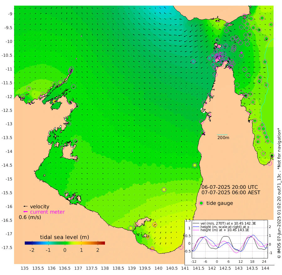 11cm/s -41T +3cm/s rms + 7cm/s -42T. ARA-GOC87 57m 9cm/s -109T +3cm/s rms + 2cm/s -2T. ARA-GOC87 60m 11cm/s -34T +2cm/s rms + 3cm/s 61T. ARA-GOC87 47m -5cm Daru -9cm Bobo Island 13cm Meer Island Barge 15cm Bramble Cay 5cm Unnamed Cay -14cm Pearce Cay 1cm Stephens Island 8cm Merrie England Shoals -2cm Mutacomal Reef 4cm Darnley Island Barge 17cm East Cay -5cm Yorke Island Barge -8cm Rennel Island -16cm Aureed Island -20cm Dungeness Reef -26cm Zagai Island -21cm Yam Island -24cm Dauan Island -17cm Saibai Island -20cm Phipi Reef -19cm Warrior Reef - West -41cm Mabuiag Island Barge -12cm Half Way Island -23cm Coconut Island -18cm Dugong Islet -31cm Poll Island -22cm Kirkcaldie Reef -49cm Suarji Island -25cm Sue Islet -58cm Hawkesbury Island -52cm Alert Patches -49cm Twin Island -52cm Badu Island -53cm St Pauls (Moa Island) -53cm Kubin (Moa Island) -52cm Ince Point -57cm Thursday Island -55cm Nardana Patches -53cm Turtle Head -54cm Round Island -56cm Goods Island -67cm Booby Island -65cm White Rocks Area -72cm Carpentaria -44cm Papou Point -77cm Bampfield Head -53cm Crab Island -63cm Red Wallis Island -53cm Packe Island -28cm Harrington Reef -50cm Herald Camp -11cm Sharp Point -42cm Red Island Point -57cm Possession Island -35cm Alpha Rock -38cm Frederick Point -17cm Wyborn Reef Light -21cm Tetley Island 2cm Triangle Reef -34cm Turtle Head Island 9cm Maclennan Cay 17cm Raine Island -3cm Mcsweeny Reef 5cm Collette Reef 14cm Shadwell Reef 8cm Hannibal Island 10cm Round Point -58cm Vrilya Point 13cm Cape Grenville 14cm Hicks Island 22cm Sir Charles Hardy Island 3cm Harvey Island 22cm Kay Reef 20cm Rocky Island 19cm Chapman Island 20cm Ham Reef 19cm Jubilee Reef 12cm Night Island 18cm Unnamed Reef No. 3 20cm Morris Island 13cm 1st 3 Mile Opening 16cm Creech Reef 17cm Fife Island 25cm Eden Reef 21cm Stanley Island 24cm Normanby River 23cm Yabooma Island 28cm Hutchison River 25cm Elcho Island 28cm North West Crocodile Island 7cm Cape Wessel 22cm Stevens Island 26cm Guluwuru Island 23cm Hopeful Bay 3cm Auster Point 9cm Two Island Bay 28cm Cadell Strait 93cm Mallison Island 18cm Melville Bay (Gove Harbour) 11cm Truant Island 10cm Cape Arnhem 15cm Cape Grey 14cm Hawk Island 16cm Milner Bay (Groote Eylandt) 23cm Cape Beatrice 22cm West Island 16cm Centre Island 62cm Mornington Island 59cm West Wellesley Islands 93cm Bountiful Island 113cm Albert River Mouth 96cm Sweers Island 106cm Karumba 60cm Nassau River Offshore 41cm Christmas Creek 5cm Archer River -16cm Boyd Point -7cm Weipa (Humbug Point) -37cm Pennefather River -42cm Cullen Point
