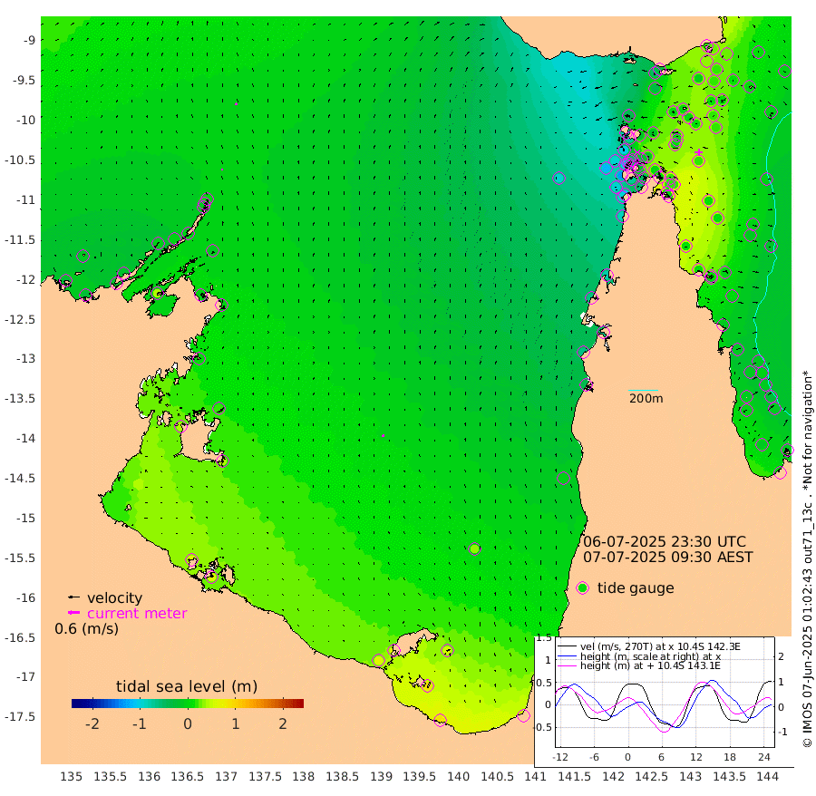 11cm/s -1T +3cm/s rms + 7cm/s -42T. ARA-GOC87 57m 11cm/s -12T +3cm/s rms + 2cm/s -2T. ARA-GOC87 60m 11cm/s 11T +2cm/s rms + 3cm/s 61T. ARA-GOC87 47m 16cm Daru 23cm Bobo Island -7cm Meer Island Barge 11cm Bramble Cay 17cm Unnamed Cay 17cm Pearce Cay 13cm Stephens Island 25cm Merrie England Shoals 30cm Mutacomal Reef 7cm Darnley Island Barge -1cm East Cay 11cm Yorke Island Barge 14cm Rennel Island 19cm Aureed Island 7cm Dungeness Reef 0cm Zagai Island 2cm Yam Island -45cm Dauan Island -33cm Saibai Island -37cm Phipi Reef -4cm Warrior Reef - West -45cm Mabuiag Island Barge 19cm Half Way Island 15cm Coconut Island 17cm Dugong Islet 10cm Poll Island 6cm Kirkcaldie Reef -8cm Suarji Island 2cm Sue Islet -100cm Hawkesbury Island -24cm Alert Patches -10cm Twin Island -93cm Badu Island -17cm St Pauls (Moa Island) -71cm Kubin (Moa Island) -35cm Ince Point -48cm Thursday Island -46cm Nardana Patches -71cm Turtle Head -85cm Round Island -99cm Goods Island -115cm Booby Island -96cm White Rocks Area -91cm Carpentaria -16cm Papou Point -132cm Bampfield Head -97cm Crab Island -93cm Red Wallis Island -69cm Packe Island 22cm Harrington Reef -105cm Herald Camp 4cm Sharp Point -59cm Red Island Point -46cm Possession Island 4cm Alpha Rock 3cm Frederick Point 20cm Wyborn Reef Light 18cm Tetley Island -4cm Triangle Reef 1cm Turtle Head Island -7cm Maclennan Cay -19cm Raine Island 12cm Mcsweeny Reef 9cm Collette Reef -8cm Shadwell Reef 15cm Hannibal Island 11cm Round Point -89cm Vrilya Point 8cm Cape Grenville -3cm Hicks Island -7cm Sir Charles Hardy Island 1cm Harvey Island 2cm Kay Reef -11cm Rocky Island -11cm Chapman Island -15cm Ham Reef -14cm Jubilee Reef -6cm Night Island -10cm Unnamed Reef No. 3 -11cm Morris Island -25cm 1st 3 Mile Opening -14cm Creech Reef -7cm Fife Island -11cm Eden Reef -9cm Stanley Island 0cm Normanby River -26cm Yabooma Island -30cm Hutchison River -19cm Elcho Island -13cm North West Crocodile Island 1cm Cape Wessel -3cm Stevens Island -7cm Guluwuru Island -7cm Hopeful Bay -14cm Auster Point -10cm Two Island Bay -15cm Cadell Strait 42cm Mallison Island -7cm Melville Bay (Gove Harbour) -10cm Truant Island -4cm Cape Arnhem 3cm Cape Grey 18cm Hawk Island 40cm Milner Bay (Groote Eylandt) 43cm Cape Beatrice 63cm West Island 63cm Centre Island 61cm Mornington Island 63cm West Wellesley Islands 60cm Bountiful Island 89cm Albert River Mouth 89cm Sweers Island 77cm Karumba 36cm Nassau River Offshore -2cm Christmas Creek -43cm Archer River -60cm Boyd Point -67cm Weipa (Humbug Point) -62cm Pennefather River -79cm Cullen Point
