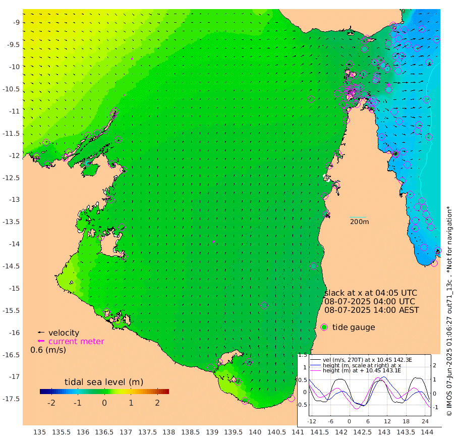 8cm/s 91T +3cm/s rms + 7cm/s -42T. ARA-GOC87 57m 23cm/s 9T +3cm/s rms + 2cm/s -2T. ARA-GOC87 60m 12cm/s 98T +2cm/s rms + 3cm/s 61T. ARA-GOC87 47m -103cm Daru -102cm Bobo Island -91cm Meer Island Barge -111cm Bramble Cay -117cm Unnamed Cay -103cm Pearce Cay -107cm Stephens Island -122cm Merrie England Shoals -114cm Mutacomal Reef -105cm Darnley Island Barge -103cm East Cay -101cm Yorke Island Barge -104cm Rennel Island -94cm Aureed Island -92cm Dungeness Reef -63cm Zagai Island -69cm Yam Island -42cm Dauan Island -47cm Saibai Island -68cm Phipi Reef -71cm Warrior Reef - West -34cm Mabuiag Island Barge -95cm Half Way Island -93cm Coconut Island -95cm Dugong Islet -74cm Poll Island -86cm Kirkcaldie Reef -63cm Suarji Island -77cm Sue Islet -51cm Hawkesbury Island -65cm Alert Patches -61cm Twin Island -43cm Badu Island -49cm St Pauls (Moa Island) -42cm Kubin (Moa Island) -48cm Ince Point -42cm Thursday Island -44cm Nardana Patches -49cm Turtle Head -49cm Round Island -45cm Goods Island -30cm Booby Island -33cm White Rocks Area -6cm Carpentaria -48cm Papou Point -48cm Bampfield Head -21cm Crab Island -27cm Red Wallis Island -46cm Packe Island -96cm Harrington Reef -54cm Herald Camp -11cm Sharp Point -52cm Red Island Point -54cm Possession Island -62cm Alpha Rock -77cm Frederick Point -101cm Wyborn Reef Light -94cm Tetley Island -82cm Triangle Reef -95cm Turtle Head Island -90cm Maclennan Cay -82cm Raine Island -103cm Mcsweeny Reef -107cm Collette Reef -94cm Shadwell Reef -117cm Hannibal Island -113cm Round Point -9cm Vrilya Point -108cm Cape Grenville -101cm Hicks Island -112cm Sir Charles Hardy Island -31cm Harvey Island -110cm Kay Reef -95cm Rocky Island -94cm Chapman Island -89cm Ham Reef -90cm Jubilee Reef -80cm Night Island -90cm Unnamed Reef No. 3 -96cm Morris Island -86cm 1st 3 Mile Opening -91cm Creech Reef -84cm Fife Island -108cm Eden Reef -100cm Stanley Island -106cm Normanby River 24cm Yabooma Island 12cm Hutchison River 25cm Elcho Island 26cm North West Crocodile Island 18cm Cape Wessel 22cm Stevens Island -16cm Guluwuru Island 13cm Hopeful Bay 20cm Auster Point 29cm Two Island Bay 16cm Cadell Strait -83cm Mallison Island -4cm Melville Bay (Gove Harbour) 0cm Truant Island 0cm Cape Arnhem 0cm Cape Grey 2cm Hawk Island 30cm Milner Bay (Groote Eylandt) 20cm Cape Beatrice 33cm West Island 31cm Centre Island -20cm Mornington Island -18cm West Wellesley Islands -38cm Bountiful Island -6cm Albert River Mouth 9cm Sweers Island -19cm Karumba -46cm Nassau River Offshore -63cm Christmas Creek -54cm Archer River -41cm Boyd Point -49cm Weipa (Humbug Point) -17cm Pennefather River -19cm Cullen Point