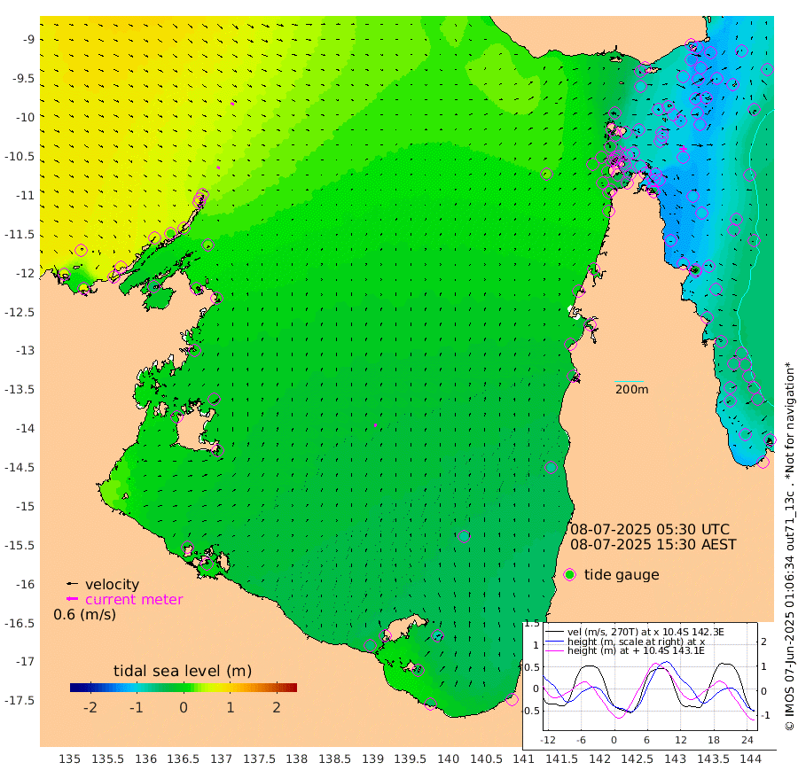 15cm/s 115T +3cm/s rms + 7cm/s -42T. ARA-GOC87 57m 18cm/s 13T +3cm/s rms + 2cm/s -2T. ARA-GOC87 60m 19cm/s 114T +2cm/s rms + 3cm/s 61T. ARA-GOC87 47m -119cm Daru -118cm Bobo Island -70cm Meer Island Barge -99cm Bramble Cay -118cm Unnamed Cay -113cm Pearce Cay -106cm Stephens Island -121cm Merrie England Shoals -131cm Mutacomal Reef -99cm Darnley Island Barge -84cm East Cay -107cm Yorke Island Barge -114cm Rennel Island -111cm Aureed Island -111cm Dungeness Reef -95cm Zagai Island -100cm Yam Island -69cm Dauan Island -76cm Saibai Island -93cm Phipi Reef -106cm Warrior Reef - West -53cm Mabuiag Island Barge -106cm Half Way Island -115cm Coconut Island -113cm Dugong Islet -104cm Poll Island -109cm Kirkcaldie Reef -102cm Suarji Island -103cm Sue Islet -27cm Hawkesbury Island -90cm Alert Patches -91cm Twin Island -29cm Badu Island -83cm St Pauls (Moa Island) -35cm Kubin (Moa Island) -67cm Ince Point -53cm Thursday Island -57cm Nardana Patches -46cm Turtle Head -32cm Round Island -20cm Goods Island 5cm Booby Island -9cm White Rocks Area 23cm Carpentaria -73cm Papou Point -3cm Bampfield Head 10cm Crab Island -4cm Red Wallis Island -36cm Packe Island -121cm Harrington Reef -24cm Herald Camp -27cm Sharp Point -50cm Red Island Point -62cm Possession Island -91cm Alpha Rock -104cm Frederick Point -119cm Wyborn Reef Light -116cm Tetley Island -72cm Triangle Reef -103cm Turtle Head Island -73cm Maclennan Cay -54cm Raine Island -105cm Mcsweeny Reef -103cm Collette Reef -75cm Shadwell Reef -112cm Hannibal Island -102cm Round Point 22cm Vrilya Point -94cm Cape Grenville -83cm Hicks Island -92cm Sir Charles Hardy Island -27cm Harvey Island -88cm Kay Reef -70cm Rocky Island -69cm Chapman Island -62cm Ham Reef -63cm Jubilee Reef -59cm Night Island -65cm Unnamed Reef No. 3 -69cm Morris Island -54cm 1st 3 Mile Opening -64cm Creech Reef -63cm Fife Island -72cm Eden Reef -70cm Stanley Island -79cm Normanby River 72cm Yabooma Island 69cm Hutchison River 74cm Elcho Island 68cm North West Crocodile Island 42cm Cape Wessel 60cm Stevens Island 16cm Guluwuru Island 52cm Hopeful Bay 53cm Auster Point 64cm Two Island Bay 61cm Cadell Strait -46cm Mallison Island 22cm Melville Bay (Gove Harbour) 28cm Truant Island 15cm Cape Arnhem 5cm Cape Grey -2cm Hawk Island 10cm Milner Bay (Groote Eylandt) -2cm Cape Beatrice -9cm West Island -9cm Centre Island -57cm Mornington Island -59cm West Wellesley Islands -77cm Bountiful Island -50cm Albert River Mouth -38cm Sweers Island -60cm Karumba -69cm Nassau River Offshore -69cm Christmas Creek -37cm Archer River -20cm Boyd Point -23cm Weipa (Humbug Point) 7cm Pennefather River 7cm Cullen Point