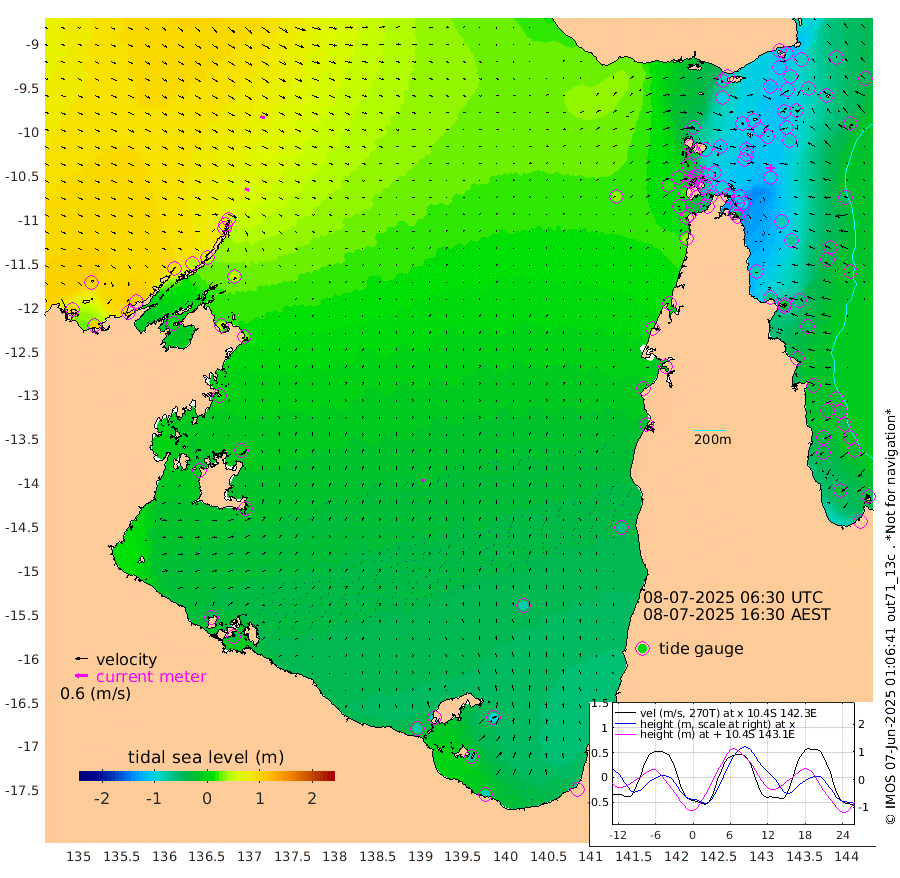 21cm/s 119T +3cm/s rms + 7cm/s -42T. ARA-GOC87 57m 13cm/s 18T +3cm/s rms + 2cm/s -2T. ARA-GOC87 60m 23cm/s 116T +2cm/s rms + 3cm/s 61T. ARA-GOC87 47m -102cm Daru -100cm Bobo Island -37cm Meer Island Barge -65cm Bramble Cay -89cm Unnamed Cay -92cm Pearce Cay -78cm Stephens Island -89cm Merrie England Shoals -111cm Mutacomal Reef -70cm Darnley Island Barge -50cm East Cay -85cm Yorke Island Barge -94cm Rennel Island -97cm Aureed Island -101cm Dungeness Reef -100cm Zagai Island -105cm Yam Island -84cm Dauan Island -89cm Saibai Island -101cm Phipi Reef -113cm Warrior Reef - West -63cm Mabuiag Island Barge -88cm Half Way Island -103cm Coconut Island -99cm Dugong Islet -102cm Poll Island -102cm Kirkcaldie Reef -111cm Suarji Island -99cm Sue Islet -12cm Hawkesbury Island -91cm Alert Patches -95cm Twin Island -22cm Badu Island -93cm St Pauls (Moa Island) -30cm Kubin (Moa Island) -70cm Ince Point -55cm Thursday Island -59cm Nardana Patches -41cm Turtle Head -20cm Round Island -6cm Goods Island 20cm Booby Island 2cm White Rocks Area 34cm Carpentaria -78cm Papou Point 21cm Bampfield Head 22cm Crab Island 6cm Red Wallis Island -28cm Packe Island -109cm Harrington Reef -9cm Herald Camp -34cm Sharp Point -45cm Red Island Point -59cm Possession Island -92cm Alpha Rock -101cm Frederick Point -102cm Wyborn Reef Light -103cm Tetley Island -48cm Triangle Reef -82cm Turtle Head Island -45cm Maclennan Cay -21cm Raine Island -81cm Mcsweeny Reef -75cm Collette Reef -43cm Shadwell Reef -79cm Hannibal Island -67cm Round Point 34cm Vrilya Point -60cm Cape Grenville -50cm Hicks Island -57cm Sir Charles Hardy Island -17cm Harvey Island -49cm Kay Reef -35cm Rocky Island -35cm Chapman Island -28cm Ham Reef -29cm Jubilee Reef -30cm Night Island -32cm Unnamed Reef No. 3 -33cm Morris Island -19cm 1st 3 Mile Opening -29cm Creech Reef -32cm Fife Island -29cm Eden Reef -32cm Stanley Island -40cm Normanby River 98cm Yabooma Island 105cm Hutchison River 101cm Elcho Island 91cm North West Crocodile Island 60cm Cape Wessel 86cm Stevens Island 45cm Guluwuru Island 78cm Hopeful Bay 74cm Auster Point 85cm Two Island Bay 89cm Cadell Strait 9cm Mallison Island 44cm Melville Bay (Gove Harbour) 50cm Truant Island 28cm Cape Arnhem 11cm Cape Grey -1cm Hawk Island -4cm Milner Bay (Groote Eylandt) -17cm Cape Beatrice -38cm West Island -37cm Centre Island -76cm Mornington Island -81cm West Wellesley Islands -97cm Bountiful Island -78cm Albert River Mouth -69cm Sweers Island -85cm Karumba -80cm Nassau River Offshore -67cm Christmas Creek -25cm Archer River -8cm Boyd Point -9cm Weipa (Humbug Point) 19cm Pennefather River 17cm Cullen Point