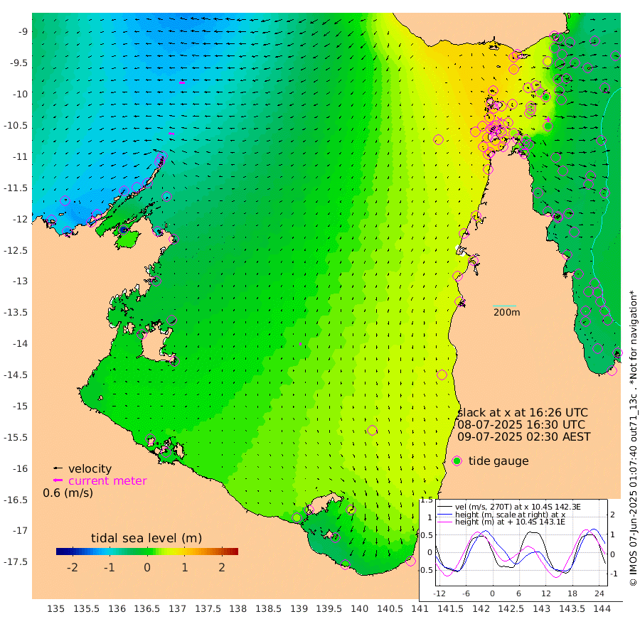 34cm/s -86T +3cm/s rms + 7cm/s -42T. ARA-GOC87 57m 18cm/s -172T +3cm/s rms + 2cm/s -2T. ARA-GOC87 60m 37cm/s -92T +2cm/s rms + 3cm/s 61T. ARA-GOC87 47m 1cm Daru -10cm Bobo Island -23cm Meer Island Barge -36cm Bramble Cay -26cm Unnamed Cay -13cm Pearce Cay -21cm Stephens Island -41cm Merrie England Shoals -17cm Mutacomal Reef -20cm Darnley Island Barge -23cm East Cay -8cm Yorke Island Barge -4cm Rennel Island 1cm Aureed Island 23cm Dungeness Reef 53cm Zagai Island 59cm Yam Island 120cm Dauan Island 105cm Saibai Island 112cm Phipi Reef 73cm Warrior Reef - West 94cm Mabuiag Island Barge -10cm Half Way Island 9cm Coconut Island 6cm Dugong Islet 33cm Poll Island 33cm Kirkcaldie Reef 75cm Suarji Island 37cm Sue Islet 103cm Hawkesbury Island 68cm Alert Patches 60cm Twin Island 103cm Badu Island 76cm St Pauls (Moa Island) 92cm Kubin (Moa Island) 79cm Ince Point 85cm Thursday Island 85cm Nardana Patches 97cm Turtle Head 96cm Round Island 99cm Goods Island 103cm Booby Island 93cm White Rocks Area 76cm Carpentaria 62cm Papou Point 106cm Bampfield Head 87cm Crab Island 97cm Red Wallis Island 92cm Packe Island 5cm Harrington Reef 124cm Herald Camp 24cm Sharp Point 87cm Red Island Point 77cm Possession Island 37cm Alpha Rock 37cm Frederick Point -10cm Wyborn Reef Light -1cm Tetley Island -9cm Triangle Reef -9cm Turtle Head Island -10cm Maclennan Cay -17cm Raine Island -17cm Mcsweeny Reef -21cm Collette Reef -19cm Shadwell Reef -33cm Hannibal Island -36cm Round Point 71cm Vrilya Point -30cm Cape Grenville -19cm Hicks Island -11cm Sir Charles Hardy Island -6cm Harvey Island -36cm Kay Reef -19cm Rocky Island -19cm Chapman Island -17cm Ham Reef -20cm Jubilee Reef -18cm Night Island -19cm Unnamed Reef No. 3 -25cm Morris Island -14cm 1st 3 Mile Opening -18cm Creech Reef -20cm Fife Island -36cm Eden Reef -29cm Stanley Island -37cm Normanby River -109cm Yabooma Island -132cm Hutchison River -122cm Elcho Island -111cm North West Crocodile Island -101cm Cape Wessel -135cm Stevens Island -102cm Guluwuru Island -116cm Hopeful Bay -103cm Auster Point -106cm Two Island Bay -128cm Cadell Strait -190cm Mallison Island -88cm Melville Bay (Gove Harbour) -94cm Truant Island -59cm Cape Arnhem -39cm Cape Grey -34cm Hawk Island -29cm Milner Bay (Groote Eylandt) -16cm Cape Beatrice 7cm West Island 7cm Centre Island 33cm Mornington Island 33cm West Wellesley Islands 50cm Bountiful Island 16cm Albert River Mouth 6cm Sweers Island 38cm Karumba 56cm Nassau River Offshore 72cm Christmas Creek 64cm Archer River 70cm Boyd Point 79cm Weipa (Humbug Point) 46cm Pennefather River 81cm Cullen Point