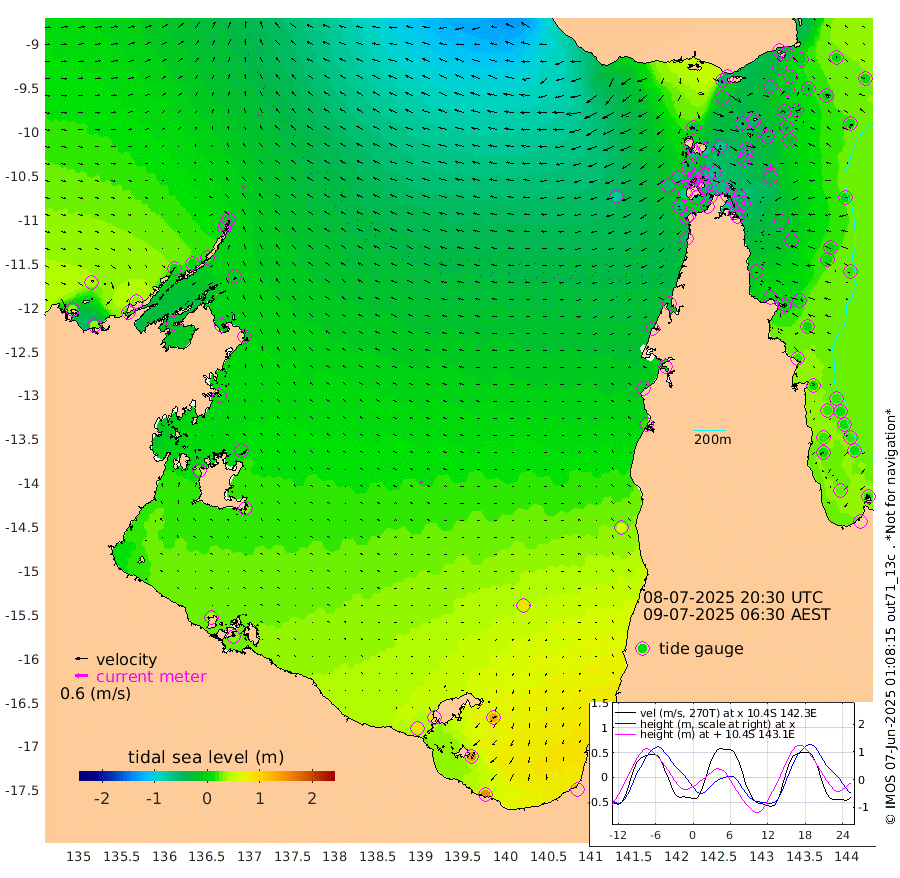 16cm/s -61T +3cm/s rms + 7cm/s -42T. ARA-GOC87 57m 12cm/s -90T +3cm/s rms + 2cm/s -2T. ARA-GOC87 60m 13cm/s -53T +2cm/s rms + 3cm/s 61T. ARA-GOC87 47m -24cm Daru -27cm Bobo Island 10cm Meer Island Barge 5cm Bramble Cay -10cm Unnamed Cay -25cm Pearce Cay -9cm Stephens Island -8cm Merrie England Shoals -25cm Mutacomal Reef -5cm Darnley Island Barge 12cm East Cay -18cm Yorke Island Barge -23cm Rennel Island -30cm Aureed Island -31cm Dungeness Reef -47cm Zagai Island -39cm Yam Island -39cm Dauan Island -39cm Saibai Island -19cm Phipi Reef -40cm Warrior Reef - West -52cm Mabuiag Island Barge -23cm Half Way Island -42cm Coconut Island -31cm Dugong Islet -49cm Poll Island -33cm Kirkcaldie Reef -63cm Suarji Island -43cm Sue Islet -48cm Hawkesbury Island -63cm Alert Patches -65cm Twin Island -48cm Badu Island -68cm St Pauls (Moa Island) -54cm Kubin (Moa Island) -62cm Ince Point -62cm Thursday Island -62cm Nardana Patches -52cm Turtle Head -49cm Round Island -48cm Goods Island -55cm Booby Island -58cm White Rocks Area -75cm Carpentaria -55cm Papou Point -70cm Bampfield Head -41cm Crab Island -60cm Red Wallis Island -55cm Packe Island -44cm Harrington Reef -39cm Herald Camp -17cm Sharp Point -34cm Red Island Point -56cm Possession Island -60cm Alpha Rock -56cm Frederick Point -42cm Wyborn Reef Light -48cm Tetley Island -7cm Triangle Reef -44cm Turtle Head Island 5cm Maclennan Cay 17cm Raine Island -18cm Mcsweeny Reef -8cm Collette Reef 8cm Shadwell Reef -5cm Hannibal Island -1cm Round Point -47cm Vrilya Point 5cm Cape Grenville 10cm Hicks Island 13cm Sir Charles Hardy Island 2cm Harvey Island 15cm Kay Reef 18cm Rocky Island 14cm Chapman Island 16cm Ham Reef 16cm Jubilee Reef 9cm Night Island 13cm Unnamed Reef No. 3 18cm Morris Island 15cm 1st 3 Mile Opening 15cm Creech Reef 9cm Fife Island 26cm Eden Reef 20cm Stanley Island 22cm Normanby River 31cm Yabooma Island 35cm Hutchison River 31cm Elcho Island 38cm North West Crocodile Island -16cm Cape Wessel 11cm Stevens Island -1cm Guluwuru Island 18cm Hopeful Bay -5cm Auster Point 1cm Two Island Bay 22cm Cadell Strait -17cm Mallison Island -2cm Melville Bay (Gove Harbour) -14cm Truant Island -8cm Cape Arnhem 13cm Cape Grey 14cm Hawk Island 23cm Milner Bay (Groote Eylandt) 33cm Cape Beatrice 38cm West Island 35cm Centre Island 90cm Mornington Island 83cm West Wellesley Islands 135cm Bountiful Island 157cm Albert River Mouth 149cm Sweers Island 159cm Karumba 85cm Nassau River Offshore 57cm Christmas Creek 20cm Archer River -9cm Boyd Point 6cm Weipa (Humbug Point) -24cm Pennefather River -35cm Cullen Point