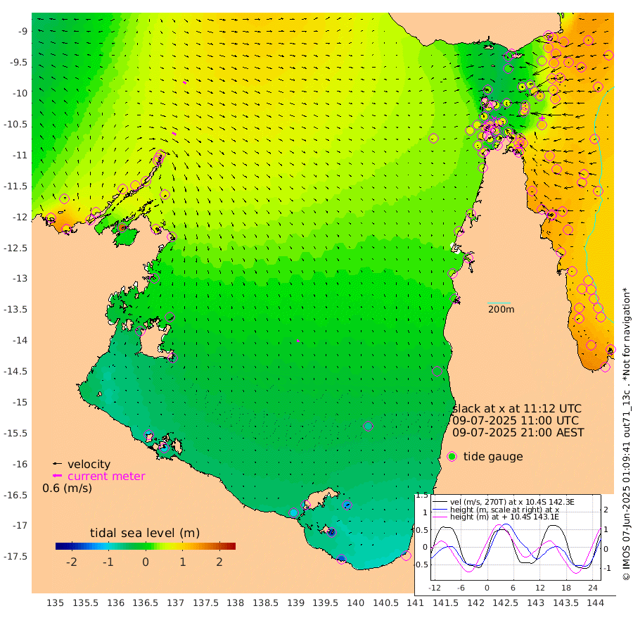 28cm/s 121T +3cm/s rms + 7cm/s -42T. ARA-GOC87 57m 19cm/s 158T +3cm/s rms + 2cm/s -2T. ARA-GOC87 60m 21cm/s 119T +2cm/s rms + 3cm/s 61T. ARA-GOC87 47m 110cm Daru 113cm Bobo Island 105cm Meer Island Barge 127cm Bramble Cay 134cm Unnamed Cay 121cm Pearce Cay 124cm Stephens Island 142cm Merrie England Shoals 127cm Mutacomal Reef 119cm Darnley Island Barge 111cm East Cay 112cm Yorke Island Barge 118cm Rennel Island 104cm Aureed Island 96cm Dungeness Reef 55cm Zagai Island 57cm Yam Island 10cm Dauan Island 10cm Saibai Island 21cm Phipi Reef 47cm Warrior Reef - West 26cm Mabuiag Island Barge 114cm Half Way Island 105cm Coconut Island 109cm Dugong Islet 81cm Poll Island 86cm Kirkcaldie Reef 57cm Suarji Island 76cm Sue Islet 78cm Hawkesbury Island 74cm Alert Patches 71cm Twin Island 59cm Badu Island 55cm St Pauls (Moa Island) 66cm Kubin (Moa Island) 59cm Ince Point 58cm Thursday Island 57cm Nardana Patches 64cm Turtle Head 73cm Round Island 74cm Goods Island 70cm Booby Island 71cm White Rocks Area 60cm Carpentaria 54cm Papou Point 102cm Bampfield Head 51cm Crab Island 65cm Red Wallis Island 73cm Packe Island 114cm Harrington Reef 70cm Herald Camp 3cm Sharp Point 48cm Red Island Point 67cm Possession Island 75cm Alpha Rock 89cm Frederick Point 125cm Wyborn Reef Light 117cm Tetley Island 95cm Triangle Reef 134cm Turtle Head Island 99cm Maclennan Cay 92cm Raine Island 120cm Mcsweeny Reef 120cm Collette Reef 105cm Shadwell Reef 134cm Hannibal Island 133cm Round Point 49cm Vrilya Point 123cm Cape Grenville 111cm Hicks Island 115cm Sir Charles Hardy Island 35cm Harvey Island 122cm Kay Reef 101cm Rocky Island 101cm Chapman Island 95cm Ham Reef 100cm Jubilee Reef 92cm Night Island 98cm Unnamed Reef No. 3 107cm Morris Island 100cm 1st 3 Mile Opening 101cm Creech Reef 95cm Fife Island 122cm Eden Reef 113cm Stanley Island 118cm Normanby River 62cm Yabooma Island 87cm Hutchison River 63cm Elcho Island 48cm North West Crocodile Island 65cm Cape Wessel 75cm Stevens Island 87cm Guluwuru Island 67cm Hopeful Bay 67cm Auster Point 63cm Two Island Bay 77cm Cadell Strait 174cm Mallison Island 68cm Melville Bay (Gove Harbour) 78cm Truant Island 45cm Cape Arnhem 9cm Cape Grey -3cm Hawk Island -52cm Milner Bay (Groote Eylandt) -58cm Cape Beatrice -102cm West Island -99cm Centre Island -102cm Mornington Island -101cm West Wellesley Islands -130cm Bountiful Island -163cm Albert River Mouth -173cm Sweers Island -160cm Karumba -68cm Nassau River Offshore -21cm Christmas Creek 21cm Archer River 34cm Boyd Point 33cm Weipa (Humbug Point) 40cm Pennefather River 40cm Cullen Point