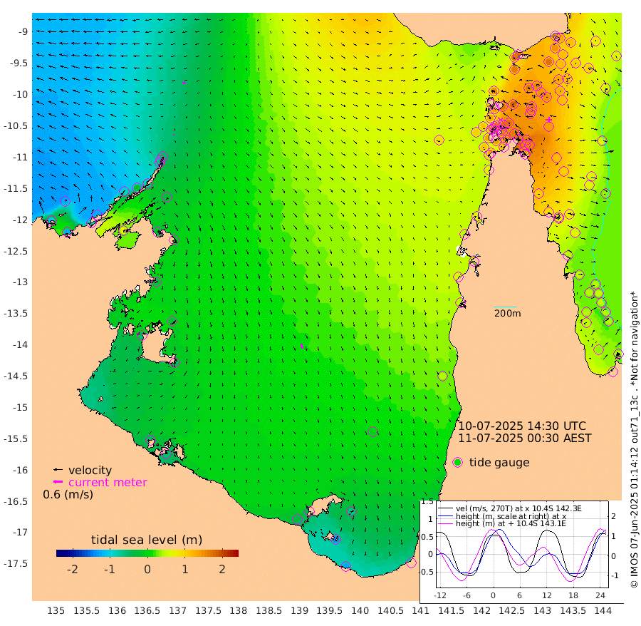 8cm/s -123T +3cm/s rms + 7cm/s -42T. ARA-GOC87 57m 33cm/s 167T +3cm/s rms + 2cm/s -2T. ARA-GOC87 60m 17cm/s -99T +2cm/s rms + 3cm/s 61T. ARA-GOC87 47m 141cm Daru 129cm Bobo Island 54cm Meer Island Barge 81cm Bramble Cay 118cm Unnamed Cay 120cm Pearce Cay 103cm Stephens Island 113cm Merrie England Shoals 146cm Mutacomal Reef 94cm Darnley Island Barge 62cm East Cay 117cm Yorke Island Barge 129cm Rennel Island 127cm Aureed Island 143cm Dungeness Reef 156cm Zagai Island 159cm Yam Island 167cm Dauan Island 159cm Saibai Island 160cm Phipi Reef 172cm Warrior Reef - West 144cm Mabuiag Island Barge 119cm Half Way Island 149cm Coconut Island 138cm Dugong Islet 156cm Poll Island 148cm Kirkcaldie Reef 175cm Suarji Island 152cm Sue Islet 129cm Hawkesbury Island 170cm Alert Patches 168cm Twin Island 129cm Badu Island 172cm St Pauls (Moa Island) 136cm Kubin (Moa Island) 156cm Ince Point 147cm Thursday Island 150cm Nardana Patches 141cm Turtle Head 131cm Round Island 117cm Goods Island 102cm Booby Island 106cm White Rocks Area 83cm Carpentaria 143cm Papou Point 130cm Bampfield Head 79cm Crab Island 110cm Red Wallis Island 138cm Packe Island 151cm Harrington Reef 131cm Herald Camp 50cm Sharp Point 114cm Red Island Point 144cm Possession Island 159cm Alpha Rock 162cm Frederick Point 153cm Wyborn Reef Light 160cm Tetley Island 75cm Triangle Reef 140cm Turtle Head Island 63cm Maclennan Cay 36cm Raine Island 113cm Mcsweeny Reef 102cm Collette Reef 65cm Shadwell Reef 103cm Hannibal Island 88cm Round Point 66cm Vrilya Point 77cm Cape Grenville 67cm Hicks Island 78cm Sir Charles Hardy Island 23cm Harvey Island 60cm Kay Reef 47cm Rocky Island 48cm Chapman Island 42cm Ham Reef 43cm Jubilee Reef 46cm Night Island 45cm Unnamed Reef No. 3 45cm Morris Island 40cm 1st 3 Mile Opening 45cm Creech Reef 51cm Fife Island 36cm Eden Reef 44cm Stanley Island 43cm Normanby River -112cm Yabooma Island -121cm Hutchison River -122cm Elcho Island -123cm North West Crocodile Island -48cm Cape Wessel -90cm Stevens Island -26cm Guluwuru Island -87cm Hopeful Bay -66cm Auster Point -76cm Two Island Bay -92cm Cadell Strait 73cm Mallison Island -30cm Melville Bay (Gove Harbour) -23cm Truant Island -13cm Cape Arnhem -30cm Cape Grey -25cm Hawk Island -58cm Milner Bay (Groote Eylandt) -52cm Cape Beatrice -57cm West Island -57cm Centre Island -40cm Mornington Island -35cm West Wellesley Islands -64cm Bountiful Island -120cm Albert River Mouth -135cm Sweers Island -103cm Karumba -1cm Nassau River Offshore 41cm Christmas Creek 49cm Archer River 66cm Boyd Point 61cm Weipa (Humbug Point) 48cm Pennefather River 73cm Cullen Point