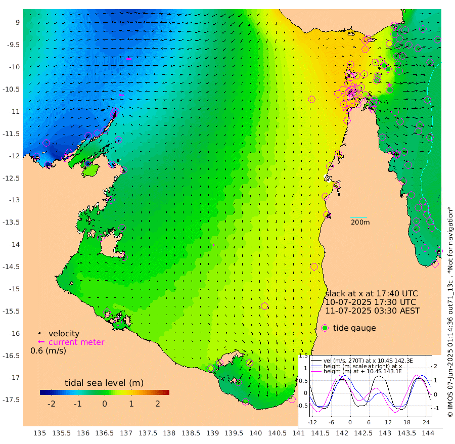 44cm/s -85T +3cm/s rms + 7cm/s -42T. ARA-GOC87 57m 23cm/s -174T +3cm/s rms + 2cm/s -2T. ARA-GOC87 60m 48cm/s -91T +2cm/s rms + 3cm/s 61T. ARA-GOC87 47m -15cm Daru -28cm Bobo Island -36cm Meer Island Barge -50cm Bramble Cay -43cm Unnamed Cay -35cm Pearce Cay -40cm Stephens Island -55cm Merrie England Shoals -30cm Mutacomal Reef -37cm Darnley Island Barge -35cm East Cay -25cm Yorke Island Barge -22cm Rennel Island -16cm Aureed Island 5cm Dungeness Reef 42cm Zagai Island 48cm Yam Island 115cm Dauan Island 103cm Saibai Island 106cm Phipi Reef 65cm Warrior Reef - West 87cm Mabuiag Island Barge -29cm Half Way Island -5cm Coconut Island -13cm Dugong Islet 19cm Poll Island 18cm Kirkcaldie Reef 61cm Suarji Island 23cm Sue Islet 97cm Hawkesbury Island 56cm Alert Patches 49cm Twin Island 95cm Badu Island 64cm St Pauls (Moa Island) 87cm Kubin (Moa Island) 71cm Ince Point 78cm Thursday Island 77cm Nardana Patches 90cm Turtle Head 95cm Round Island 93cm Goods Island 102cm Booby Island 88cm White Rocks Area 84cm Carpentaria 49cm Papou Point 107cm Bampfield Head 90cm Crab Island 100cm Red Wallis Island 96cm Packe Island -14cm Harrington Reef 130cm Herald Camp 24cm Sharp Point 81cm Red Island Point 69cm Possession Island 30cm Alpha Rock 23cm Frederick Point -25cm Wyborn Reef Light -14cm Tetley Island -17cm Triangle Reef -34cm Turtle Head Island -22cm Maclennan Cay -26cm Raine Island -33cm Mcsweeny Reef -34cm Collette Reef -29cm Shadwell Reef -48cm Hannibal Island -49cm Round Point 78cm Vrilya Point -40cm Cape Grenville -33cm Hicks Island -22cm Sir Charles Hardy Island -10cm Harvey Island -45cm Kay Reef -29cm Rocky Island -26cm Chapman Island -23cm Ham Reef -31cm Jubilee Reef -25cm Night Island -25cm Unnamed Reef No. 3 -35cm Morris Island -28cm 1st 3 Mile Opening -28cm Creech Reef -27cm Fife Island -49cm Eden Reef -39cm Stanley Island -50cm Normanby River -164cm Yabooma Island -195cm Hutchison River -172cm Elcho Island -161cm North West Crocodile Island -135cm Cape Wessel -179cm Stevens Island -138cm Guluwuru Island -152cm Hopeful Bay -144cm Auster Point -145cm Two Island Bay -184cm Cadell Strait -176cm Mallison Island -120cm Melville Bay (Gove Harbour) -127cm Truant Island -79cm Cape Arnhem -60cm Cape Grey -41cm Hawk Island -34cm Milner Bay (Groote Eylandt) -18cm Cape Beatrice 14cm West Island 17cm Centre Island 49cm Mornington Island 43cm West Wellesley Islands 54cm Bountiful Island 21cm Albert River Mouth 11cm Sweers Island 49cm Karumba 73cm Nassau River Offshore 89cm Christmas Creek 76cm Archer River 80cm Boyd Point 88cm Weipa (Humbug Point) 55cm Pennefather River 94cm Cullen Point