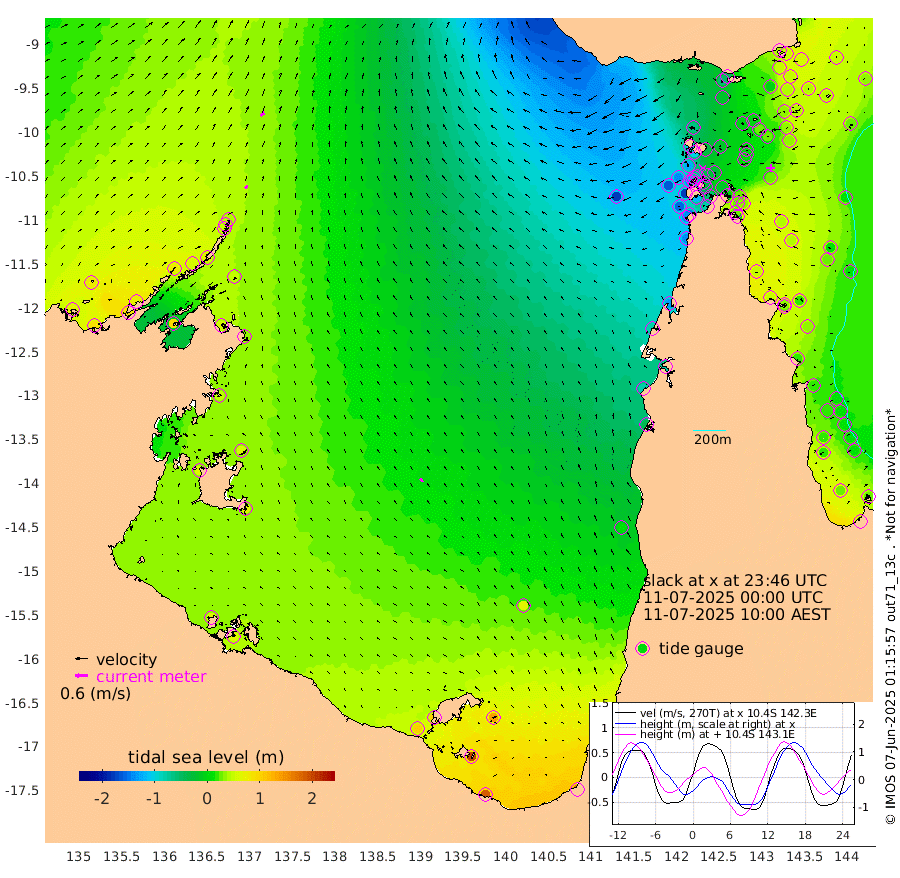 17cm/s 46T +3cm/s rms + 7cm/s -42T. ARA-GOC87 57m 19cm/s -34T +3cm/s rms + 2cm/s -2T. ARA-GOC87 60m 25cm/s 46T +2cm/s rms + 3cm/s 61T. ARA-GOC87 47m 41cm Daru 45cm Bobo Island 25cm Meer Island Barge 48cm Bramble Cay 51cm Unnamed Cay 44cm Pearce Cay 42cm Stephens Island 59cm Merrie England Shoals 51cm Mutacomal Reef 39cm Darnley Island Barge 30cm East Cay 38cm Yorke Island Barge 35cm Rennel Island 33cm Aureed Island 24cm Dungeness Reef -3cm Zagai Island -6cm Yam Island -53cm Dauan Island -46cm Saibai Island -18cm Phipi Reef -7cm Warrior Reef - West -63cm Mabuiag Island Barge 37cm Half Way Island 23cm Coconut Island 29cm Dugong Islet 7cm Poll Island 12cm Kirkcaldie Reef -21cm Suarji Island 6cm Sue Islet -126cm Hawkesbury Island -35cm Alert Patches -29cm Twin Island -112cm Badu Island -37cm St Pauls (Moa Island) -102cm Kubin (Moa Island) -60cm Ince Point -78cm Thursday Island -74cm Nardana Patches -97cm Turtle Head -109cm Round Island -130cm Goods Island -161cm Booby Island -142cm White Rocks Area -173cm Carpentaria -33cm Papou Point -176cm Bampfield Head -136cm Crab Island -154cm Red Wallis Island -117cm Packe Island 29cm Harrington Reef -147cm Herald Camp -4cm Sharp Point -75cm Red Island Point -59cm Possession Island -16cm Alpha Rock -4cm Frederick Point 35cm Wyborn Reef Light 26cm Tetley Island 12cm Triangle Reef 29cm Turtle Head Island 15cm Maclennan Cay 10cm Raine Island 38cm Mcsweeny Reef 40cm Collette Reef 24cm Shadwell Reef 51cm Hannibal Island 45cm Round Point -136cm Vrilya Point 36cm Cape Grenville 30cm Hicks Island 18cm Sir Charles Hardy Island 10cm Harvey Island 34cm Kay Reef 21cm Rocky Island 15cm Chapman Island 10cm Ham Reef 16cm Jubilee Reef 15cm Night Island 10cm Unnamed Reef No. 3 21cm Morris Island 8cm 1st 3 Mile Opening 13cm Creech Reef 17cm Fife Island 28cm Eden Reef 23cm Stanley Island 35cm Normanby River 70cm Yabooma Island 86cm Hutchison River 73cm Elcho Island 77cm North West Crocodile Island 40cm Cape Wessel 81cm Stevens Island 56cm Guluwuru Island 72cm Hopeful Bay 52cm Auster Point 50cm Two Island Bay 88cm Cadell Strait 92cm Mallison Island 54cm Melville Bay (Gove Harbour) 46cm Truant Island 34cm Cape Arnhem 51cm Cape Grey 56cm Hawk Island 66cm Milner Bay (Groote Eylandt) 65cm Cape Beatrice 66cm West Island 64cm Centre Island 103cm Mornington Island 101cm West Wellesley Islands 142cm Bountiful Island 181cm Albert River Mouth 202cm Sweers Island 171cm Karumba 66cm Nassau River Offshore 9cm Christmas Creek -44cm Archer River -82cm Boyd Point -80cm Weipa (Humbug Point) -82cm Pennefather River -128cm Cullen Point