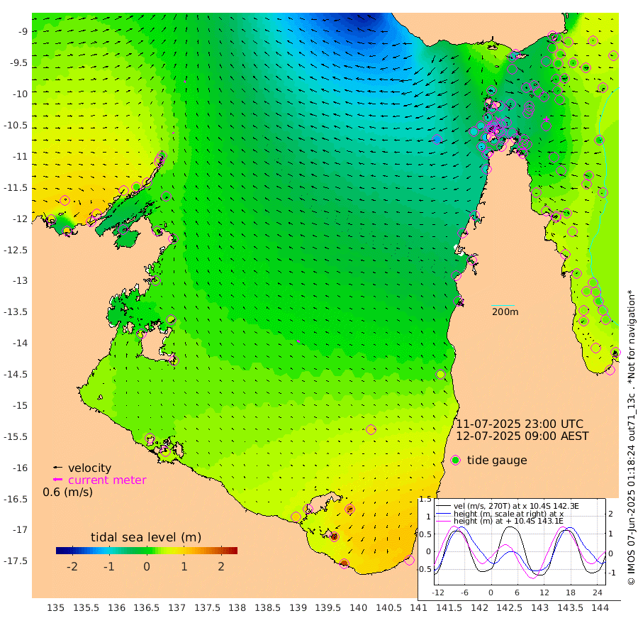 7cm/s -24T +3cm/s rms + 7cm/s -42T. ARA-GOC87 57m 19cm/s -63T +3cm/s rms + 2cm/s -2T. ARA-GOC87 60m 11cm/s 20T +2cm/s rms + 3cm/s 61T. ARA-GOC87 47m -2cm Daru 4cm Bobo Island 29cm Meer Island Barge 33cm Bramble Cay 18cm Unnamed Cay 15cm Pearce Cay 21cm Stephens Island 24cm Merrie England Shoals 1cm Mutacomal Reef 20cm Darnley Island Barge 33cm East Cay 6cm Yorke Island Barge 4cm Rennel Island -1cm Aureed Island -7cm Dungeness Reef -48cm Zagai Island -44cm Yam Island -69cm Dauan Island -76cm Saibai Island -26cm Phipi Reef -45cm Warrior Reef - West -80cm Mabuiag Island Barge 6cm Half Way Island -20cm Coconut Island -6cm Dugong Islet -34cm Poll Island -23cm Kirkcaldie Reef -56cm Suarji Island -39cm Sue Islet -79cm Hawkesbury Island -62cm Alert Patches -62cm Twin Island -81cm Badu Island -71cm St Pauls (Moa Island) -76cm Kubin (Moa Island) -73cm Ince Point -78cm Thursday Island -77cm Nardana Patches -73cm Turtle Head -70cm Round Island -78cm Goods Island -95cm Booby Island -89cm White Rocks Area -129cm Carpentaria -60cm Papou Point -109cm Bampfield Head -79cm Crab Island -99cm Red Wallis Island -79cm Packe Island -15cm Harrington Reef -78cm Herald Camp -20cm Sharp Point -55cm Red Island Point -57cm Possession Island -60cm Alpha Rock -44cm Frederick Point -17cm Wyborn Reef Light -27cm Tetley Island 8cm Triangle Reef -9cm Turtle Head Island 20cm Maclennan Cay 27cm Raine Island 8cm Mcsweeny Reef 16cm Collette Reef 23cm Shadwell Reef 26cm Hannibal Island 31cm Round Point -85cm Vrilya Point 29cm Cape Grenville 31cm Hicks Island 21cm Sir Charles Hardy Island 9cm Harvey Island 33cm Kay Reef 32cm Rocky Island 28cm Chapman Island 23cm Ham Reef 27cm Jubilee Reef 25cm Night Island 22cm Unnamed Reef No. 3 33cm Morris Island 27cm 1st 3 Mile Opening 28cm Creech Reef 24cm Fife Island 47cm Eden Reef 36cm Stanley Island 45cm Normanby River 89cm Yabooma Island 103cm Hutchison River 90cm Elcho Island 94cm North West Crocodile Island 15cm Cape Wessel 67cm Stevens Island 20cm Guluwuru Island 72cm Hopeful Bay 41cm Auster Point 44cm Two Island Bay 79cm Cadell Strait -35cm Mallison Island 27cm Melville Bay (Gove Harbour) 14cm Truant Island 9cm Cape Arnhem 29cm Cape Grey 41cm Hawk Island 46cm Milner Bay (Groote Eylandt) 52cm Cape Beatrice 51cm West Island 54cm Centre Island 113cm Mornington Island 105cm West Wellesley Islands 162cm Bountiful Island 200cm Albert River Mouth 214cm Sweers Island 202cm Karumba 95cm Nassau River Offshore 48cm Christmas Creek 2cm Archer River -39cm Boyd Point -23cm Weipa (Humbug Point) -43cm Pennefather River -74cm Cullen Point