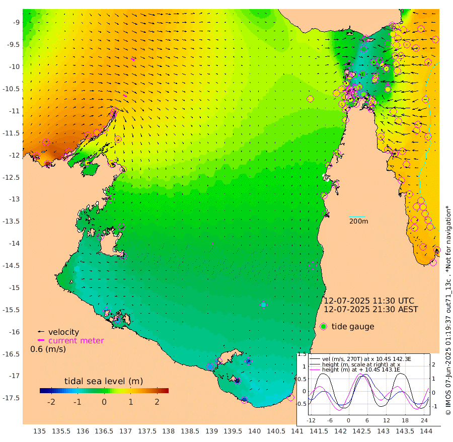 39cm/s 121T +3cm/s rms + 7cm/s -42T. ARA-GOC87 57m 11cm/s 154T +3cm/s rms + 2cm/s -2T. ARA-GOC87 60m 35cm/s 118T +2cm/s rms + 3cm/s 61T. ARA-GOC87 47m 65cm Daru 74cm Bobo Island 98cm Meer Island Barge 105cm Bramble Cay 96cm Unnamed Cay 94cm Pearce Cay 100cm Stephens Island 101cm Merrie England Shoals 75cm Mutacomal Reef 94cm Darnley Island Barge 101cm East Cay 78cm Yorke Island Barge 84cm Rennel Island 69cm Aureed Island 60cm Dungeness Reef 10cm Zagai Island 19cm Yam Island -24cm Dauan Island -34cm Saibai Island -26cm Phipi Reef 0cm Warrior Reef - West -3cm Mabuiag Island Barge 86cm Half Way Island 59cm Coconut Island 77cm Dugong Islet 42cm Poll Island 49cm Kirkcaldie Reef 12cm Suarji Island 30cm Sue Islet 87cm Hawkesbury Island 30cm Alert Patches 32cm Twin Island 62cm Badu Island 16cm St Pauls (Moa Island) 67cm Kubin (Moa Island) 32cm Ince Point 40cm Thursday Island 36cm Nardana Patches 58cm Turtle Head 63cm Round Island 90cm Goods Island 95cm Booby Island 97cm White Rocks Area 73cm Carpentaria 27cm Papou Point 106cm Bampfield Head 69cm Crab Island 85cm Red Wallis Island 72cm Packe Island 73cm Harrington Reef 74cm Herald Camp -17cm Sharp Point 43cm Red Island Point 37cm Possession Island 29cm Alpha Rock 46cm Frederick Point 73cm Wyborn Reef Light 64cm Tetley Island 78cm Triangle Reef 100cm Turtle Head Island 93cm Maclennan Cay 93cm Raine Island 86cm Mcsweeny Reef 85cm Collette Reef 86cm Shadwell Reef 99cm Hannibal Island 108cm Round Point 63cm Vrilya Point 99cm Cape Grenville 100cm Hicks Island 104cm Sir Charles Hardy Island 30cm Harvey Island 105cm Kay Reef 95cm Rocky Island 93cm Chapman Island 91cm Ham Reef 97cm Jubilee Reef 85cm Night Island 92cm Unnamed Reef No. 3 103cm Morris Island 104cm 1st 3 Mile Opening 99cm Creech Reef 89cm Fife Island 125cm Eden Reef 107cm Stanley Island 117cm Normanby River 181cm Yabooma Island 214cm Hutchison River 174cm Elcho Island 159cm North West Crocodile Island 126cm Cape Wessel 158cm Stevens Island 129cm Guluwuru Island 138cm Hopeful Bay 137cm Auster Point 143cm Two Island Bay 179cm Cadell Strait 94cm Mallison Island 105cm Melville Bay (Gove Harbour) 118cm Truant Island 64cm Cape Arnhem 21cm Cape Grey -9cm Hawk Island -56cm Milner Bay (Groote Eylandt) -64cm Cape Beatrice -122cm West Island -124cm Centre Island -138cm Mornington Island -131cm West Wellesley Islands -153cm Bountiful Island -171cm Albert River Mouth -201cm Sweers Island -183cm Karumba -96cm Nassau River Offshore -45cm Christmas Creek 10cm Archer River 31cm Boyd Point 37cm Weipa (Humbug Point) 36cm Pennefather River 47cm Cullen Point