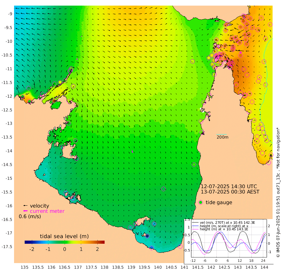 19cm/s 118T +3cm/s rms + 7cm/s -42T. ARA-GOC87 57m 34cm/s 165T +3cm/s rms + 2cm/s -2T. ARA-GOC87 60m 6cm/s 131T +2cm/s rms + 3cm/s 61T. ARA-GOC87 47m 176cm Daru 163cm Bobo Island 92cm Meer Island Barge 125cm Bramble Cay 162cm Unnamed Cay 156cm Pearce Cay 146cm Stephens Island 159cm Merrie England Shoals 182cm Mutacomal Reef 135cm Darnley Island Barge 99cm East Cay 152cm Yorke Island Barge 164cm Rennel Island 153cm Aureed Island 165cm Dungeness Reef 161cm Zagai Island 166cm Yam Island 152cm Dauan Island 140cm Saibai Island 140cm Phipi Reef 172cm Warrior Reef - West 124cm Mabuiag Island Barge 158cm Half Way Island 170cm Coconut Island 171cm Dugong Islet 169cm Poll Island 168cm Kirkcaldie Reef 161cm Suarji Island 164cm Sue Islet 114cm Hawkesbury Island 162cm Alert Patches 165cm Twin Island 113cm Badu Island 165cm St Pauls (Moa Island) 127cm Kubin (Moa Island) 145cm Ince Point 134cm Thursday Island 137cm Nardana Patches 126cm Turtle Head 110cm Round Island 101cm Goods Island 79cm Booby Island 87cm White Rocks Area 55cm Carpentaria 141cm Papou Point 100cm Bampfield Head 60cm Crab Island 87cm Red Wallis Island 121cm Packe Island 178cm Harrington Reef 104cm Herald Camp 43cm Sharp Point 97cm Red Island Point 127cm Possession Island 162cm Alpha Rock 172cm Frederick Point 185cm Wyborn Reef Light 186cm Tetley Island 99cm Triangle Reef 181cm Turtle Head Island 95cm Maclennan Cay 67cm Raine Island 150cm Mcsweeny Reef 137cm Collette Reef 98cm Shadwell Reef 145cm Hannibal Island 130cm Round Point 47cm Vrilya Point 114cm Cape Grenville 105cm Hicks Island 114cm Sir Charles Hardy Island 34cm Harvey Island 98cm Kay Reef 79cm Rocky Island 74cm Chapman Island 70cm Ham Reef 78cm Jubilee Reef 75cm Night Island 73cm Unnamed Reef No. 3 81cm Morris Island 74cm 1st 3 Mile Opening 78cm Creech Reef 84cm Fife Island 80cm Eden Reef 82cm Stanley Island 86cm Normanby River -20cm Yabooma Island -11cm Hutchison River -32cm Elcho Island -38cm North West Crocodile Island 23cm Cape Wessel 3cm Stevens Island 63cm Guluwuru Island -12cm Hopeful Bay 8cm Auster Point 7cm Two Island Bay 22cm Cadell Strait 196cm Mallison Island 42cm Melville Bay (Gove Harbour) 53cm Truant Island 34cm Cape Arnhem -3cm Cape Grey -15cm Hawk Island -64cm Milner Bay (Groote Eylandt) -62cm Cape Beatrice -94cm West Island -101cm Centre Island -80cm Mornington Island -71cm West Wellesley Islands -107cm Bountiful Island -153cm Albert River Mouth -183cm Sweers Island -148cm Karumba -33cm Nassau River Offshore 16cm Christmas Creek 29cm Archer River 48cm Boyd Point 42cm Weipa (Humbug Point) 34cm Pennefather River 48cm Cullen Point