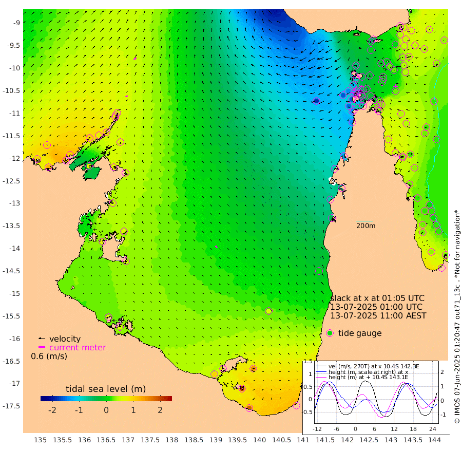 19cm/s 63T +3cm/s rms + 7cm/s -42T. ARA-GOC87 57m 20cm/s -40T +3cm/s rms + 2cm/s -2T. ARA-GOC87 60m 29cm/s 54T +2cm/s rms + 3cm/s 61T. ARA-GOC87 47m 42cm Daru 47cm Bobo Island 31cm Meer Island Barge 49cm Bramble Cay 50cm Unnamed Cay 51cm Pearce Cay 46cm Stephens Island 55cm Merrie England Shoals 45cm Mutacomal Reef 43cm Darnley Island Barge 34cm East Cay 40cm Yorke Island Barge 37cm Rennel Island 38cm Aureed Island 30cm Dungeness Reef -2cm Zagai Island -10cm Yam Island -44cm Dauan Island -49cm Saibai Island -5cm Phipi Reef -4cm Warrior Reef - West -65cm Mabuiag Island Barge 38cm Half Way Island 23cm Coconut Island 30cm Dugong Islet 8cm Poll Island 9cm Kirkcaldie Reef -16cm Suarji Island 3cm Sue Islet -124cm Hawkesbury Island -33cm Alert Patches -30cm Twin Island -108cm Badu Island -34cm St Pauls (Moa Island) -96cm Kubin (Moa Island) -59cm Ince Point -77cm Thursday Island -72cm Nardana Patches -91cm Turtle Head -101cm Round Island -124cm Goods Island -158cm Booby Island -141cm White Rocks Area -182cm Carpentaria -35cm Papou Point -165cm Bampfield Head -134cm Crab Island -154cm Red Wallis Island -113cm Packe Island 30cm Harrington Reef -139cm Herald Camp -7cm Sharp Point -78cm Red Island Point -51cm Possession Island -22cm Alpha Rock -4cm Frederick Point 33cm Wyborn Reef Light 24cm Tetley Island 16cm Triangle Reef 37cm Turtle Head Island 19cm Maclennan Cay 15cm Raine Island 40cm Mcsweeny Reef 41cm Collette Reef 27cm Shadwell Reef 52cm Hannibal Island 48cm Round Point -138cm Vrilya Point 36cm Cape Grenville 34cm Hicks Island 18cm Sir Charles Hardy Island 11cm Harvey Island 32cm Kay Reef 24cm Rocky Island 18cm Chapman Island 11cm Ham Reef 19cm Jubilee Reef 20cm Night Island 11cm Unnamed Reef No. 3 25cm Morris Island 16cm 1st 3 Mile Opening 18cm Creech Reef 24cm Fife Island 33cm Eden Reef 26cm Stanley Island 38cm Normanby River 100cm Yabooma Island 121cm Hutchison River 101cm Elcho Island 101cm North West Crocodile Island 54cm Cape Wessel 104cm Stevens Island 71cm Guluwuru Island 96cm Hopeful Bay 76cm Auster Point 74cm Two Island Bay 121cm Cadell Strait 81cm Mallison Island 74cm Melville Bay (Gove Harbour) 66cm Truant Island 48cm Cape Arnhem 59cm Cape Grey 67cm Hawk Island 68cm Milner Bay (Groote Eylandt) 64cm Cape Beatrice 57cm West Island 56cm Centre Island 105cm Mornington Island 101cm West Wellesley Islands 145cm Bountiful Island 186cm Albert River Mouth 218cm Sweers Island 181cm Karumba 67cm Nassau River Offshore 10cm Christmas Creek -42cm Archer River -80cm Boyd Point -76cm Weipa (Humbug Point) -79cm Pennefather River -128cm Cullen Point
