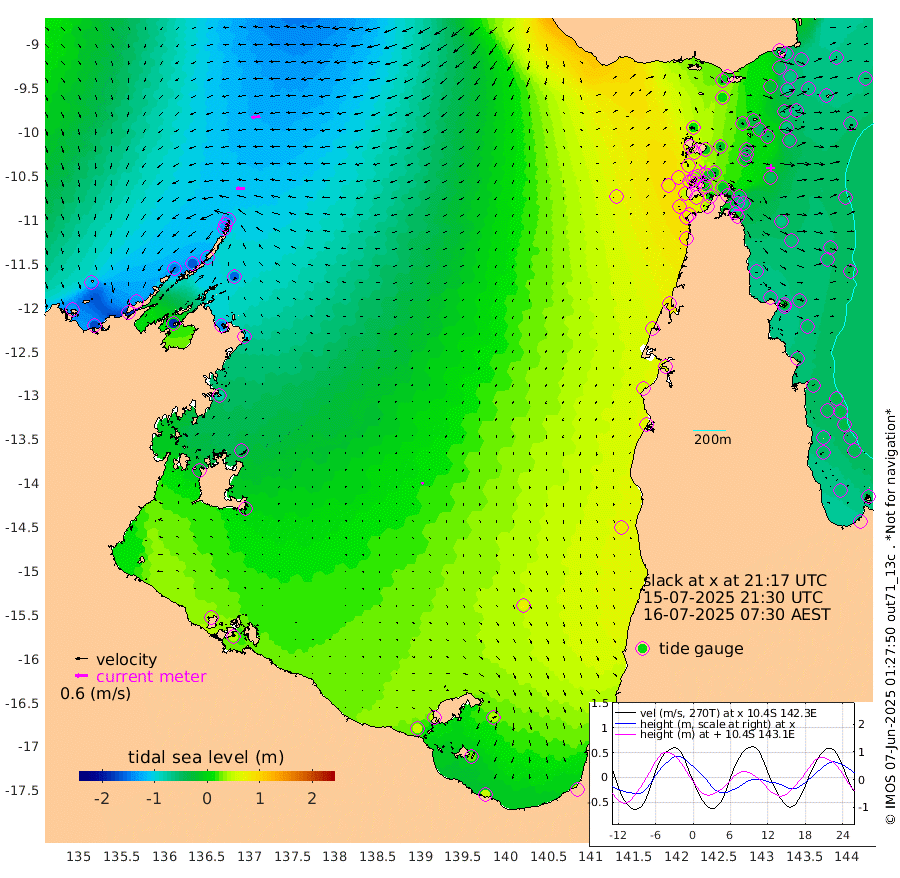 39cm/s -90T +3cm/s rms + 7cm/s -42T. ARA-GOC87 57m 10cm/s -161T +3cm/s rms + 2cm/s -2T. ARA-GOC87 60m 42cm/s -100T +2cm/s rms + 3cm/s 61T. ARA-GOC87 47m -60cm Daru -69cm Bobo Island -54cm Meer Island Barge -61cm Bramble Cay -65cm Unnamed Cay -70cm Pearce Cay -67cm Stephens Island -60cm Merrie England Shoals -52cm Mutacomal Reef -67cm Darnley Island Barge -53cm East Cay -66cm Yorke Island Barge -58cm Rennel Island -62cm Aureed Island -47cm Dungeness Reef -33cm Zagai Island -17cm Yam Island 5cm Dauan Island 2cm Saibai Island 6cm Phipi Reef -23cm Warrior Reef - West 15cm Mabuiag Island Barge -54cm Half Way Island -50cm Coconut Island -52cm Dugong Islet -34cm Poll Island -28cm Kirkcaldie Reef -21cm Suarji Island -37cm Sue Islet 59cm Hawkesbury Island -6cm Alert Patches -9cm Twin Island 48cm Badu Island -8cm St Pauls (Moa Island) 39cm Kubin (Moa Island) 14cm Ince Point 27cm Thursday Island 23cm Nardana Patches 40cm Turtle Head 43cm Round Island 60cm Goods Island 80cm Booby Island 71cm White Rocks Area 76cm Carpentaria -7cm Papou Point 52cm Bampfield Head 80cm Crab Island 86cm Red Wallis Island 66cm Packe Island -55cm Harrington Reef 75cm Herald Camp 5cm Sharp Point 44cm Red Island Point 6cm Possession Island -15cm Alpha Rock -30cm Frederick Point -62cm Wyborn Reef Light -55cm Tetley Island -40cm Triangle Reef -75cm Turtle Head Island -44cm Maclennan Cay -37cm Raine Island -63cm Mcsweeny Reef -58cm Collette Reef -46cm Shadwell Reef -65cm Hannibal Island -60cm Round Point 85cm Vrilya Point -48cm Cape Grenville -53cm Hicks Island -49cm Sir Charles Hardy Island -16cm Harvey Island -46cm Kay Reef -44cm Rocky Island -38cm Chapman Island -37cm Ham Reef -43cm Jubilee Reef -35cm Night Island -34cm Unnamed Reef No. 3 -45cm Morris Island -45cm 1st 3 Mile Opening -41cm Creech Reef -48cm Fife Island -53cm Eden Reef -43cm Stanley Island -53cm Normanby River -134cm Yabooma Island -168cm Hutchison River -134cm Elcho Island -119cm North West Crocodile Island -133cm Cape Wessel -144cm Stevens Island -159cm Guluwuru Island -124cm Hopeful Bay -137cm Auster Point -134cm Two Island Bay -176cm Cadell Strait -186cm Mallison Island -140cm Melville Bay (Gove Harbour) -151cm Truant Island -102cm Cape Arnhem -78cm Cape Grey -50cm Hawk Island -21cm Milner Bay (Groote Eylandt) -2cm Cape Beatrice 38cm West Island 45cm Centre Island 52cm Mornington Island 46cm West Wellesley Islands 41cm Bountiful Island 51cm Albert River Mouth 27cm Sweers Island 65cm Karumba 74cm Nassau River Offshore 75cm Christmas Creek 67cm Archer River 56cm Boyd Point 66cm Weipa (Humbug Point) 64cm Pennefather River 83cm Cullen Point