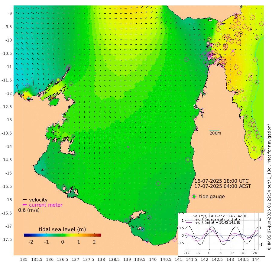 8cm/s 55T +3cm/s rms + 7cm/s -42T. ARA-GOC87 57m 23cm/s 163T +3cm/s rms + 2cm/s -2T. ARA-GOC87 60m 7cm/s -11T +2cm/s rms + 3cm/s 61T. ARA-GOC87 47m 93cm Daru 84cm Bobo Island 45cm Meer Island Barge 59cm Bramble Cay 78cm Unnamed Cay 68cm Pearce Cay 73cm Stephens Island 75cm Merrie England Shoals 88cm Mutacomal Reef 72cm Darnley Island Barge 49cm East Cay 81cm Yorke Island Barge 78cm Rennel Island 74cm Aureed Island 76cm Dungeness Reef 85cm Zagai Island 90cm Yam Island 76cm Dauan Island 82cm Saibai Island 61cm Phipi Reef 94cm Warrior Reef - West 46cm Mabuiag Island Barge 78cm Half Way Island 77cm Coconut Island 85cm Dugong Islet 77cm Poll Island 87cm Kirkcaldie Reef 57cm Suarji Island 86cm Sue Islet 3cm Hawkesbury Island 54cm Alert Patches 63cm Twin Island 4cm Badu Island 67cm St Pauls (Moa Island) 22cm Kubin (Moa Island) 46cm Ince Point 32cm Thursday Island 36cm Nardana Patches 16cm Turtle Head 3cm Round Island -13cm Goods Island -29cm Booby Island -31cm White Rocks Area -18cm Carpentaria 60cm Papou Point -30cm Bampfield Head -20cm Crab Island -19cm Red Wallis Island 8cm Packe Island 84cm Harrington Reef 4cm Herald Camp 26cm Sharp Point 19cm Red Island Point 29cm Possession Island 71cm Alpha Rock 75cm Frederick Point 85cm Wyborn Reef Light 86cm Tetley Island 43cm Triangle Reef 79cm Turtle Head Island 45cm Maclennan Cay 26cm Raine Island 72cm Mcsweeny Reef 65cm Collette Reef 45cm Shadwell Reef 69cm Hannibal Island 55cm Round Point -19cm Vrilya Point 52cm Cape Grenville 50cm Hicks Island 60cm Sir Charles Hardy Island 18cm Harvey Island 43cm Kay Reef 35cm Rocky Island 25cm Chapman Island 32cm Ham Reef 37cm Jubilee Reef 32cm Night Island 30cm Unnamed Reef No. 3 34cm Morris Island 27cm 1st 3 Mile Opening 34cm Creech Reef 41cm Fife Island 32cm Eden Reef 36cm Stanley Island 40cm Normanby River -72cm Yabooma Island -74cm Hutchison River -77cm Elcho Island -73cm North West Crocodile Island -8cm Cape Wessel -46cm Stevens Island 38cm Guluwuru Island -53cm Hopeful Bay -33cm Auster Point -19cm Two Island Bay -11cm Cadell Strait 180cm Mallison Island 14cm Melville Bay (Gove Harbour) 18cm Truant Island 16cm Cape Arnhem 2cm Cape Grey -12cm Hawk Island -31cm Milner Bay (Groote Eylandt) -26cm Cape Beatrice -32cm West Island -41cm Centre Island -20cm Mornington Island -20cm West Wellesley Islands -36cm Bountiful Island -63cm Albert River Mouth -89cm Sweers Island -58cm Karumba -2cm Nassau River Offshore 15cm Christmas Creek -4cm Archer River 4cm Boyd Point -8cm Weipa (Humbug Point) -13cm Pennefather River -11cm Cullen Point