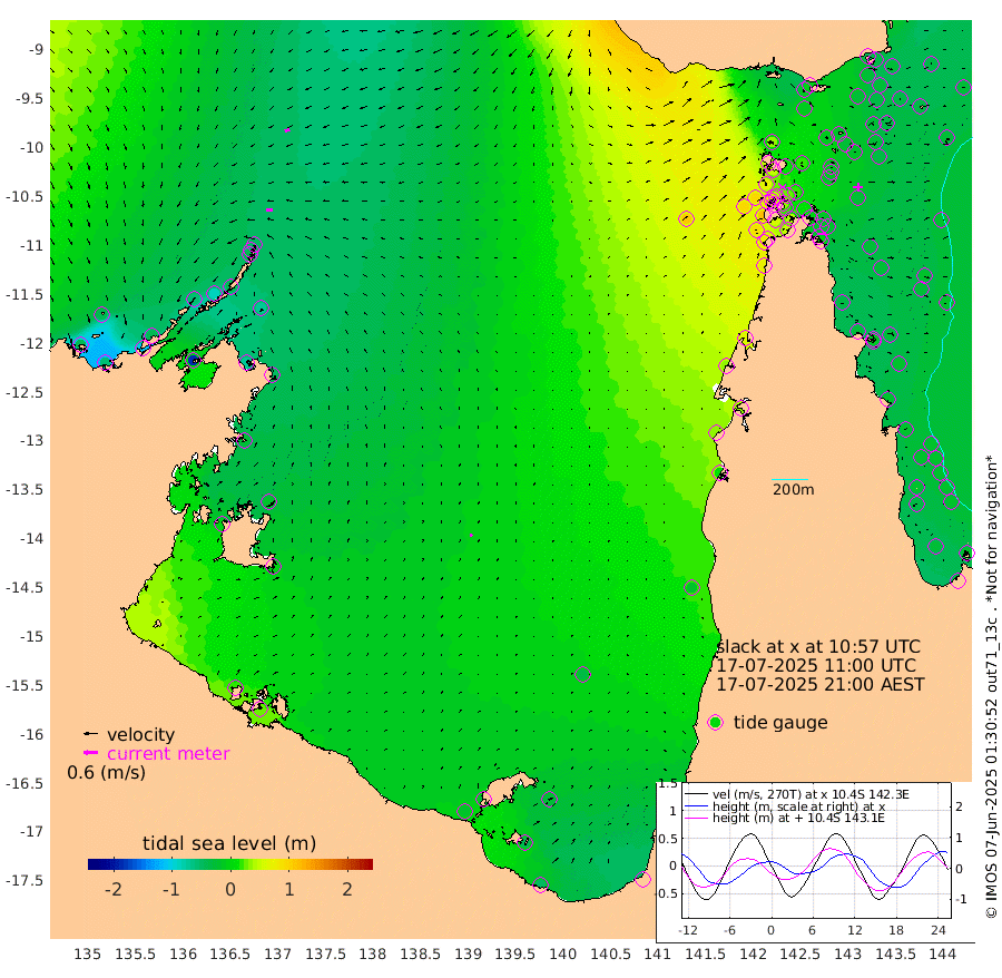 25cm/s -89T +3cm/s rms + 7cm/s -42T. ARA-GOC87 57m 11cm/s 14T +3cm/s rms + 2cm/s -2T. ARA-GOC87 60m 23cm/s -108T +2cm/s rms + 3cm/s 61T. ARA-GOC87 47m -38cm Daru -37cm Bobo Island -29cm Meer Island Barge -33cm Bramble Cay -28cm Unnamed Cay -36cm Pearce Cay -36cm Stephens Island -28cm Merrie England Shoals -24cm Mutacomal Reef -36cm Darnley Island Barge -29cm East Cay -34cm Yorke Island Barge -27cm Rennel Island -30cm Aureed Island -23cm Dungeness Reef -16cm Zagai Island -11cm Yam Island -13cm Dauan Island -2cm Saibai Island -12cm Phipi Reef -26cm Warrior Reef - West 31cm Mabuiag Island Barge -30cm Half Way Island -17cm Coconut Island -24cm Dugong Islet -11cm Poll Island -15cm Kirkcaldie Reef 20cm Suarji Island -9cm Sue Islet 74cm Hawkesbury Island 27cm Alert Patches 16cm Twin Island 59cm Badu Island 14cm St Pauls (Moa Island) 47cm Kubin (Moa Island) 32cm Ince Point 44cm Thursday Island 41cm Nardana Patches 51cm Turtle Head 70cm Round Island 74cm Goods Island 95cm Booby Island 96cm White Rocks Area 106cm Carpentaria 16cm Papou Point 120cm Bampfield Head 69cm Crab Island 86cm Red Wallis Island 56cm Packe Island -18cm Harrington Reef 80cm Herald Camp 2cm Sharp Point 45cm Red Island Point 44cm Possession Island 14cm Alpha Rock -1cm Frederick Point -19cm Wyborn Reef Light -16cm Tetley Island -18cm Triangle Reef -22cm Turtle Head Island -20cm Maclennan Cay -20cm Raine Island -29cm Mcsweeny Reef -27cm Collette Reef -23cm Shadwell Reef -31cm Hannibal Island -30cm Round Point 69cm Vrilya Point -21cm Cape Grenville -28cm Hicks Island -23cm Sir Charles Hardy Island -9cm Harvey Island -17cm Kay Reef -20cm Rocky Island -15cm Chapman Island -16cm Ham Reef -22cm Jubilee Reef -22cm Night Island -15cm Unnamed Reef No. 3 -22cm Morris Island -16cm 1st 3 Mile Opening -20cm Creech Reef -36cm Fife Island -28cm Eden Reef -21cm Stanley Island -27cm Normanby River -41cm Yabooma Island -57cm Hutchison River -42cm Elcho Island -41cm North West Crocodile Island -46cm Cape Wessel -57cm Stevens Island -83cm Guluwuru Island -43cm Hopeful Bay -42cm Auster Point -59cm Two Island Bay -110cm Cadell Strait -186cm Mallison Island -69cm Melville Bay (Gove Harbour) -69cm Truant Island -52cm Cape Arnhem -29cm Cape Grey -22cm Hawk Island -2cm Milner Bay (Groote Eylandt) -4cm Cape Beatrice 18cm West Island 26cm Centre Island -27cm Mornington Island -20cm West Wellesley Islands -25cm Bountiful Island -49cm Albert River Mouth -40cm Sweers Island -48cm Karumba -35cm Nassau River Offshore -21cm Christmas Creek 15cm Archer River 31cm Boyd Point 32cm Weipa (Humbug Point) 35cm Pennefather River 61cm Cullen Point