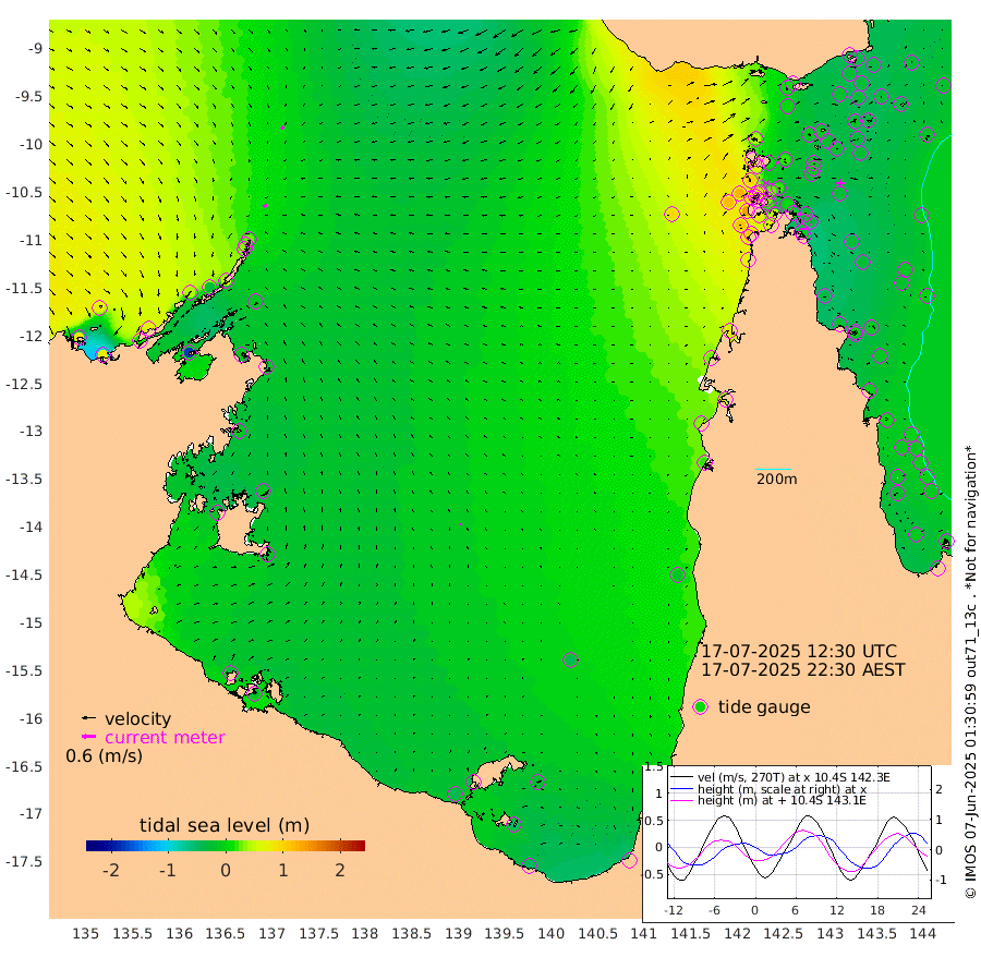16cm/s -107T +3cm/s rms + 7cm/s -42T. ARA-GOC87 57m 8cm/s -15T +3cm/s rms + 2cm/s -2T. ARA-GOC87 60m 13cm/s -133T +2cm/s rms + 3cm/s 61T. ARA-GOC87 47m -38cm Daru -34cm Bobo Island -18cm Meer Island Barge -24cm Bramble Cay -28cm Unnamed Cay -24cm Pearce Cay -30cm Stephens Island -33cm Merrie England Shoals -30cm Mutacomal Reef -32cm Darnley Island Barge -15cm East Cay -32cm Yorke Island Barge -22cm Rennel Island -26cm Aureed Island -18cm Dungeness Reef -14cm Zagai Island -8cm Yam Island 11cm Dauan Island 9cm Saibai Island 5cm Phipi Reef -17cm Warrior Reef - West 40cm Mabuiag Island Barge -29cm Half Way Island -20cm Coconut Island -23cm Dugong Islet -10cm Poll Island -18cm Kirkcaldie Reef 21cm Suarji Island -15cm Sue Islet 105cm Hawkesbury Island 23cm Alert Patches 15cm Twin Island 87cm Badu Island 14cm St Pauls (Moa Island) 71cm Kubin (Moa Island) 37cm Ince Point 51cm Thursday Island 48cm Nardana Patches 70cm Turtle Head 89cm Round Island 103cm Goods Island 118cm Booby Island 123cm White Rocks Area 96cm Carpentaria 18cm Papou Point 139cm Bampfield Head 85cm Crab Island 108cm Red Wallis Island 79cm Packe Island -23cm Harrington Reef 106cm Herald Camp -6cm Sharp Point 61cm Red Island Point 47cm Possession Island 5cm Alpha Rock -3cm Frederick Point -23cm Wyborn Reef Light -20cm Tetley Island -8cm Triangle Reef -21cm Turtle Head Island -8cm Maclennan Cay -4cm Raine Island -27cm Mcsweeny Reef -26cm Collette Reef -16cm Shadwell Reef -31cm Hannibal Island -20cm Round Point 69cm Vrilya Point -18cm Cape Grenville -15cm Hicks Island -8cm Sir Charles Hardy Island -7cm Harvey Island -12cm Kay Reef -6cm Rocky Island 2cm Chapman Island -2cm Ham Reef -9cm Jubilee Reef -12cm Night Island -3cm Unnamed Reef No. 3 -8cm Morris Island -2cm 1st 3 Mile Opening -8cm Creech Reef -19cm Fife Island -9cm Eden Reef -11cm Stanley Island -11cm Normanby River 81cm Yabooma Island 79cm Hutchison River 70cm Elcho Island 69cm North West Crocodile Island 24cm Cape Wessel 40cm Stevens Island -23cm Guluwuru Island 45cm Hopeful Bay 37cm Auster Point 24cm Two Island Bay 9cm Cadell Strait -177cm Mallison Island -10cm Melville Bay (Gove Harbour) -8cm Truant Island -16cm Cape Arnhem -12cm Cape Grey -14cm Hawk Island -15cm Milner Bay (Groote Eylandt) -18cm Cape Beatrice -24cm West Island -21cm Centre Island -49cm Mornington Island -41cm West Wellesley Islands -28cm Bountiful Island -48cm Albert River Mouth -50cm Sweers Island -49cm Karumba -39cm Nassau River Offshore -18cm Christmas Creek 22cm Archer River 37cm Boyd Point 49cm Weipa (Humbug Point) 29cm Pennefather River 68cm Cullen Point