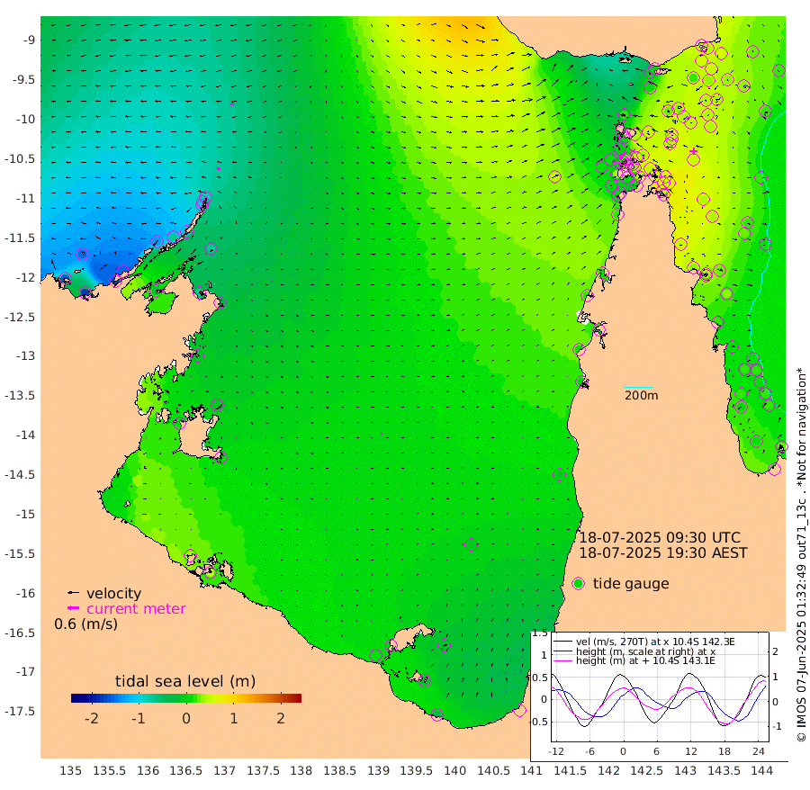 16cm/s -71T +3cm/s rms + 7cm/s -42T. ARA-GOC87 57m 8cm/s 81T +3cm/s rms + 2cm/s -2T. ARA-GOC87 60m 18cm/s -87T +2cm/s rms + 3cm/s 61T. ARA-GOC87 47m 43cm Daru 38cm Bobo Island 20cm Meer Island Barge 30cm Bramble Cay 49cm Unnamed Cay 30cm Pearce Cay 37cm Stephens Island 53cm Merrie England Shoals 54cm Mutacomal Reef 37cm Darnley Island Barge 19cm East Cay 42cm Yorke Island Barge 42cm Rennel Island 40cm Aureed Island 39cm Dungeness Reef 32cm Zagai Island 29cm Yam Island -9cm Dauan Island 6cm Saibai Island 5cm Phipi Reef 19cm Warrior Reef - West 17cm Mabuiag Island Barge 43cm Half Way Island 49cm Coconut Island 46cm Dugong Islet 40cm Poll Island 45cm Kirkcaldie Reef 49cm Suarji Island 47cm Sue Islet -3cm Hawkesbury Island 52cm Alert Patches 44cm Twin Island -4cm Badu Island 39cm St Pauls (Moa Island) 5cm Kubin (Moa Island) 33cm Ince Point 29cm Thursday Island 29cm Nardana Patches 16cm Turtle Head 19cm Round Island 3cm Goods Island 9cm Booby Island 8cm White Rocks Area 49cm Carpentaria 31cm Papou Point 38cm Bampfield Head 3cm Crab Island 5cm Red Wallis Island 6cm Packe Island 57cm Harrington Reef 9cm Herald Camp 17cm Sharp Point 8cm Red Island Point 41cm Possession Island 51cm Alpha Rock 48cm Frederick Point 54cm Wyborn Reef Light 53cm Tetley Island 20cm Triangle Reef 53cm Turtle Head Island 21cm Maclennan Cay 9cm Raine Island 43cm Mcsweeny Reef 42cm Collette Reef 26cm Shadwell Reef 46cm Hannibal Island 30cm Round Point 18cm Vrilya Point 38cm Cape Grenville 22cm Hicks Island 23cm Sir Charles Hardy Island 10cm Harvey Island 32cm Kay Reef 16cm Rocky Island 10cm Chapman Island 13cm Ham Reef 15cm Jubilee Reef 17cm Night Island 15cm Unnamed Reef No. 3 18cm Morris Island 19cm 1st 3 Mile Opening 18cm Creech Reef 7cm Fife Island 14cm Eden Reef 23cm Stanley Island 16cm Normanby River -161cm Yabooma Island -173cm Hutchison River -150cm Elcho Island -153cm North West Crocodile Island -89cm Cape Wessel -132cm Stevens Island -71cm Guluwuru Island -118cm Hopeful Bay -99cm Auster Point -113cm Two Island Bay -167cm Cadell Strait -28cm Mallison Island -71cm Melville Bay (Gove Harbour) -72cm Truant Island -41cm Cape Arnhem -19cm Cape Grey -11cm Hawk Island 8cm Milner Bay (Groote Eylandt) 8cm Cape Beatrice 40cm West Island 47cm Centre Island 7cm Mornington Island 10cm West Wellesley Islands -16cm Bountiful Island -44cm Albert River Mouth -26cm Sweers Island -41cm Karumba -15cm Nassau River Offshore -8cm Christmas Creek 0cm Archer River 9cm Boyd Point -4cm Weipa (Humbug Point) 18cm Pennefather River 11cm Cullen Point