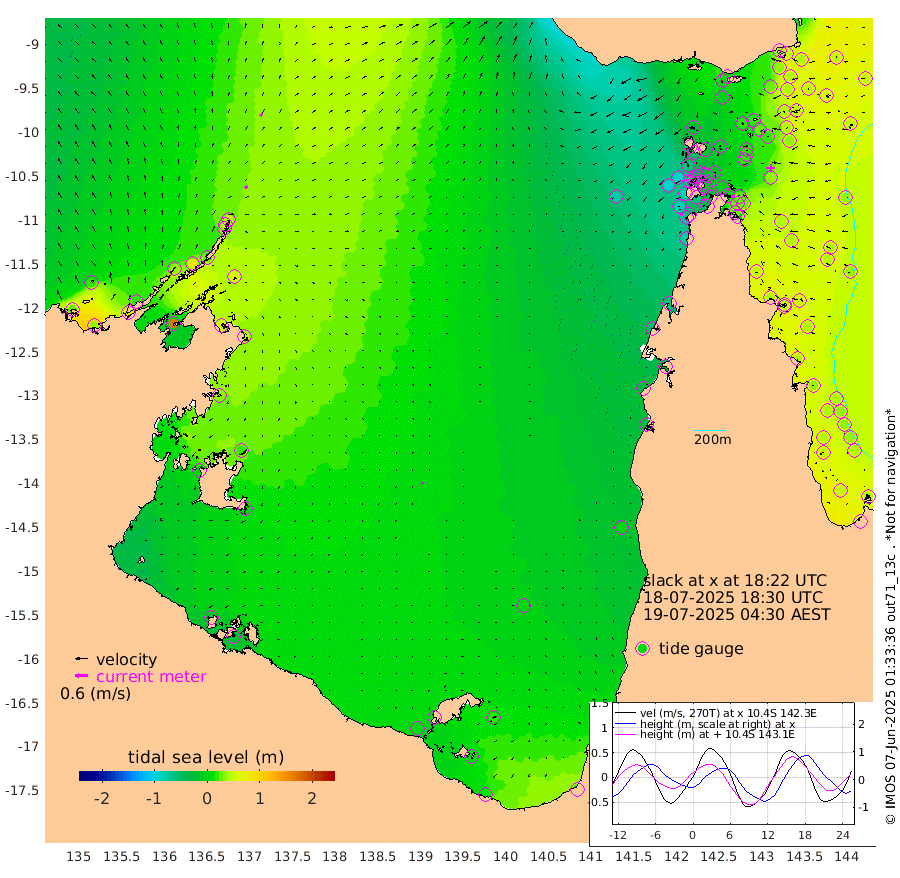 14cm/s 48T +3cm/s rms + 7cm/s -42T. ARA-GOC87 57m 8cm/s -172T +3cm/s rms + 2cm/s -2T. ARA-GOC87 60m 16cm/s 34T +2cm/s rms + 3cm/s 61T. ARA-GOC87 47m 43cm Daru 47cm Bobo Island 47cm Meer Island Barge 48cm Bramble Cay 45cm Unnamed Cay 40cm Pearce Cay 50cm Stephens Island 41cm Merrie England Shoals 35cm Mutacomal Reef 53cm Darnley Island Barge 51cm East Cay 48cm Yorke Island Barge 38cm Rennel Island 39cm Aureed Island 26cm Dungeness Reef 18cm Zagai Island 19cm Yam Island 1cm Dauan Island 9cm Saibai Island -4cm Phipi Reef 23cm Warrior Reef - West -28cm Mabuiag Island Barge 37cm Half Way Island 22cm Coconut Island 35cm Dugong Islet 12cm Poll Island 21cm Kirkcaldie Reef -15cm Suarji Island 21cm Sue Islet -64cm Hawkesbury Island -27cm Alert Patches -15cm Twin Island -67cm Badu Island -17cm St Pauls (Moa Island) -46cm Kubin (Moa Island) -33cm Ince Point -46cm Thursday Island -42cm Nardana Patches -55cm Turtle Head -55cm Round Island -74cm Goods Island -92cm Booby Island -92cm White Rocks Area -82cm Carpentaria -10cm Papou Point -86cm Bampfield Head -77cm Crab Island -87cm Red Wallis Island -63cm Packe Island 27cm Harrington Reef -53cm Herald Camp -3cm Sharp Point -41cm Red Island Point -33cm Possession Island -4cm Alpha Rock 5cm Frederick Point 29cm Wyborn Reef Light 24cm Tetley Island 32cm Triangle Reef 27cm Turtle Head Island 41cm Maclennan Cay 35cm Raine Island 41cm Mcsweeny Reef 41cm Collette Reef 38cm Shadwell Reef 46cm Hannibal Island 44cm Round Point -80cm Vrilya Point 42cm Cape Grenville 48cm Hicks Island 55cm Sir Charles Hardy Island 16cm Harvey Island 43cm Kay Reef 42cm Rocky Island 35cm Chapman Island 40cm Ham Reef 42cm Jubilee Reef 34cm Night Island 36cm Unnamed Reef No. 3 42cm Morris Island 34cm 1st 3 Mile Opening 40cm Creech Reef 46cm Fife Island 50cm Eden Reef 43cm Stanley Island 52cm Normanby River 24cm Yabooma Island 34cm Hutchison River 21cm Elcho Island 21cm North West Crocodile Island 47cm Cape Wessel 31cm Stevens Island 82cm Guluwuru Island 28cm Hopeful Bay 33cm Auster Point 50cm Two Island Bay 74cm Cadell Strait 166cm Mallison Island 60cm Melville Bay (Gove Harbour) 62cm Truant Island 44cm Cape Arnhem 31cm Cape Grey 18cm Hawk Island -2cm Milner Bay (Groote Eylandt) -1cm Cape Beatrice -16cm West Island -24cm Centre Island 9cm Mornington Island 6cm West Wellesley Islands 20cm Bountiful Island 11cm Albert River Mouth 1cm Sweers Island 13cm Karumba 7cm Nassau River Offshore 3cm Christmas Creek -26cm Archer River -30cm Boyd Point -35cm Weipa (Humbug Point) -58cm Pennefather River -60cm Cullen Point