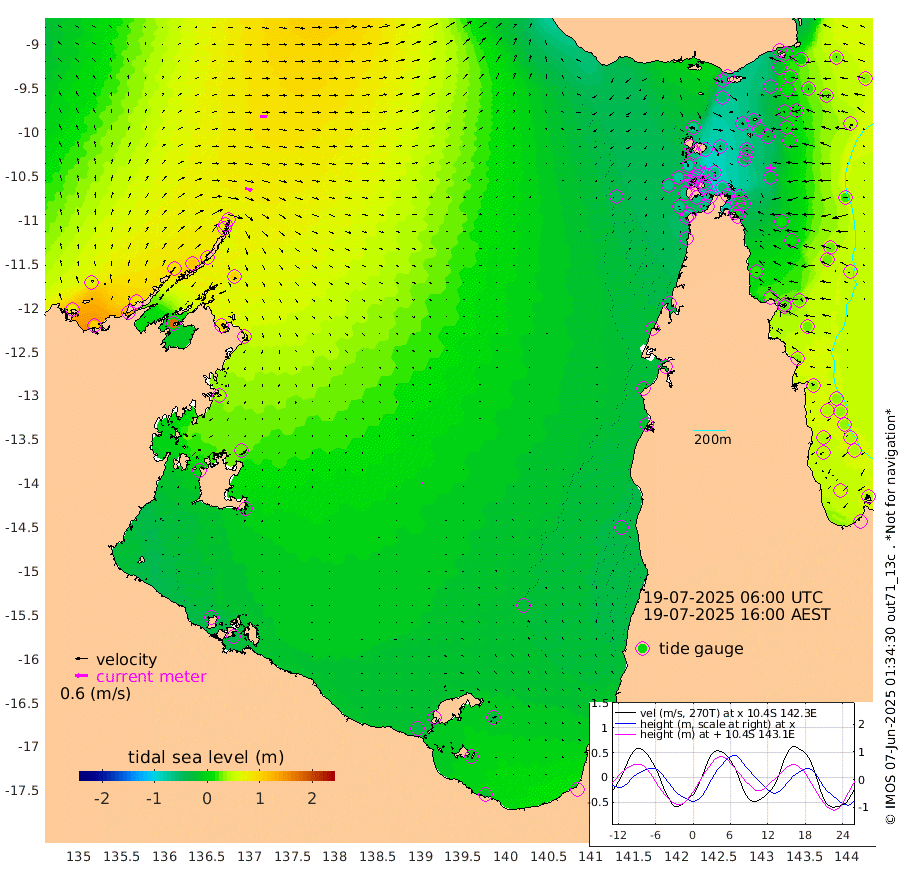 36cm/s 105T +3cm/s rms + 7cm/s -42T. ARA-GOC87 57m 4cm/s 161T +3cm/s rms + 2cm/s -2T. ARA-GOC87 60m 33cm/s 95T +2cm/s rms + 3cm/s 61T. ARA-GOC87 47m -8cm Daru 4cm Bobo Island 39cm Meer Island Barge 26cm Bramble Cay 3cm Unnamed Cay 13cm Pearce Cay 19cm Stephens Island 5cm Merrie England Shoals -22cm Mutacomal Reef 26cm Darnley Island Barge 33cm East Cay 8cm Yorke Island Barge -5cm Rennel Island 4cm Aureed Island -19cm Dungeness Reef -38cm Zagai Island -57cm Yam Island -54cm Dauan Island -60cm Saibai Island -53cm Phipi Reef -43cm Warrior Reef - West -71cm Mabuiag Island Barge -4cm Half Way Island -18cm Coconut Island -18cm Dugong Islet -38cm Poll Island -39cm Kirkcaldie Reef -63cm Suarji Island -39cm Sue Islet -78cm Hawkesbury Island -62cm Alert Patches -60cm Twin Island -62cm Badu Island -65cm St Pauls (Moa Island) -64cm Kubin (Moa Island) -66cm Ince Point -68cm Thursday Island -68cm Nardana Patches -62cm Turtle Head -71cm Round Island -59cm Goods Island -61cm Booby Island -70cm White Rocks Area -52cm Carpentaria -59cm Papou Point -65cm Bampfield Head -47cm Crab Island -67cm Red Wallis Island -66cm Packe Island -22cm Harrington Reef -82cm Herald Camp -26cm Sharp Point -65cm Red Island Point -61cm Possession Island -59cm Alpha Rock -43cm Frederick Point -19cm Wyborn Reef Light -27cm Tetley Island 20cm Triangle Reef -5cm Turtle Head Island 25cm Maclennan Cay 40cm Raine Island 10cm Mcsweeny Reef 14cm Collette Reef 29cm Shadwell Reef 19cm Hannibal Island 25cm Round Point -40cm Vrilya Point 20cm Cape Grenville 29cm Hicks Island 24cm Sir Charles Hardy Island 8cm Harvey Island 28cm Kay Reef 35cm Rocky Island 36cm Chapman Island 35cm Ham Reef 38cm Jubilee Reef 34cm Night Island 35cm Unnamed Reef No. 3 40cm Morris Island 42cm 1st 3 Mile Opening 39cm Creech Reef 47cm Fife Island 54cm Eden Reef 39cm Stanley Island 40cm Normanby River 68cm Yabooma Island 100cm Hutchison River 83cm Elcho Island 67cm North West Crocodile Island 75cm Cape Wessel 85cm Stevens Island 109cm Guluwuru Island 75cm Hopeful Bay 77cm Auster Point 81cm Two Island Bay 125cm Cadell Strait 178cm Mallison Island 93cm Melville Bay (Gove Harbour) 99cm Truant Island 71cm Cape Arnhem 42cm Cape Grey 27cm Hawk Island 1cm Milner Bay (Groote Eylandt) -8cm Cape Beatrice -42cm West Island -44cm Centre Island -25cm Mornington Island -31cm West Wellesley Islands -37cm Bountiful Island -22cm Albert River Mouth -12cm Sweers Island -30cm Karumba -25cm Nassau River Offshore -23cm Christmas Creek -17cm Archer River -20cm Boyd Point -23cm Weipa (Humbug Point) -13cm Pennefather River -43cm Cullen Point