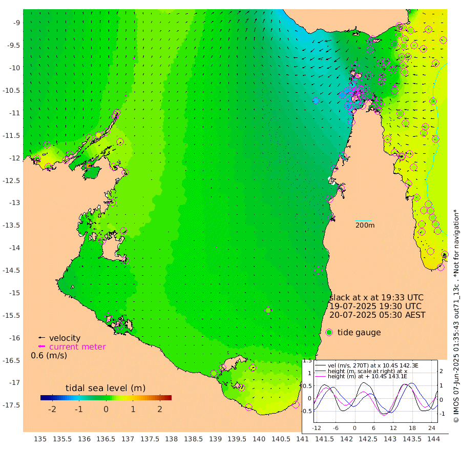 14cm/s 25T +3cm/s rms + 7cm/s -42T. ARA-GOC87 57m 4cm/s -106T +3cm/s rms + 2cm/s -2T. ARA-GOC87 60m 18cm/s 24T +2cm/s rms + 3cm/s 61T. ARA-GOC87 47m 25cm Daru 32cm Bobo Island 44cm Meer Island Barge 44cm Bramble Cay 35cm Unnamed Cay 27cm Pearce Cay 41cm Stephens Island 35cm Merrie England Shoals 21cm Mutacomal Reef 46cm Darnley Island Barge 49cm East Cay 35cm Yorke Island Barge 24cm Rennel Island 25cm Aureed Island 6cm Dungeness Reef -11cm Zagai Island -10cm Yam Island -44cm Dauan Island -31cm Saibai Island -38cm Phipi Reef -10cm Warrior Reef - West -66cm Mabuiag Island Barge 25cm Half Way Island 2cm Coconut Island 18cm Dugong Islet -13cm Poll Island -2cm Kirkcaldie Reef -44cm Suarji Island -5cm Sue Islet -102cm Hawkesbury Island -57cm Alert Patches -46cm Twin Island -108cm Badu Island -52cm St Pauls (Moa Island) -83cm Kubin (Moa Island) -67cm Ince Point -80cm Thursday Island -76cm Nardana Patches -90cm Turtle Head -87cm Round Island -109cm Goods Island -126cm Booby Island -125cm White Rocks Area -109cm Carpentaria -39cm Papou Point -121cm Bampfield Head -105cm Crab Island -120cm Red Wallis Island -96cm Packe Island 9cm Harrington Reef -86cm Herald Camp -11cm Sharp Point -70cm Red Island Point -60cm Possession Island -30cm Alpha Rock -21cm Frederick Point 10cm Wyborn Reef Light 3cm Tetley Island 25cm Triangle Reef 7cm Turtle Head Island 37cm Maclennan Cay 33cm Raine Island 30cm Mcsweeny Reef 33cm Collette Reef 34cm Shadwell Reef 41cm Hannibal Island 40cm Round Point -104cm Vrilya Point 41cm Cape Grenville 45cm Hicks Island 50cm Sir Charles Hardy Island 15cm Harvey Island 44cm Kay Reef 42cm Rocky Island 34cm Chapman Island 39cm Ham Reef 40cm Jubilee Reef 34cm Night Island 36cm Unnamed Reef No. 3 42cm Morris Island 32cm 1st 3 Mile Opening 39cm Creech Reef 43cm Fife Island 53cm Eden Reef 44cm Stanley Island 55cm Normanby River 18cm Yabooma Island 27cm Hutchison River 19cm Elcho Island 20cm North West Crocodile Island 37cm Cape Wessel 26cm Stevens Island 68cm Guluwuru Island 28cm Hopeful Bay 26cm Auster Point 42cm Two Island Bay 59cm Cadell Strait 145cm Mallison Island 49cm Melville Bay (Gove Harbour) 48cm Truant Island 36cm Cape Arnhem 31cm Cape Grey 26cm Hawk Island 17cm Milner Bay (Groote Eylandt) 18cm Cape Beatrice 11cm West Island 7cm Centre Island 40cm Mornington Island 35cm West Wellesley Islands 56cm Bountiful Island 57cm Albert River Mouth 55cm Sweers Island 58cm Karumba 25cm Nassau River Offshore 6cm Christmas Creek -33cm Archer River -46cm Boyd Point -50cm Weipa (Humbug Point) -71cm Pennefather River -82cm Cullen Point